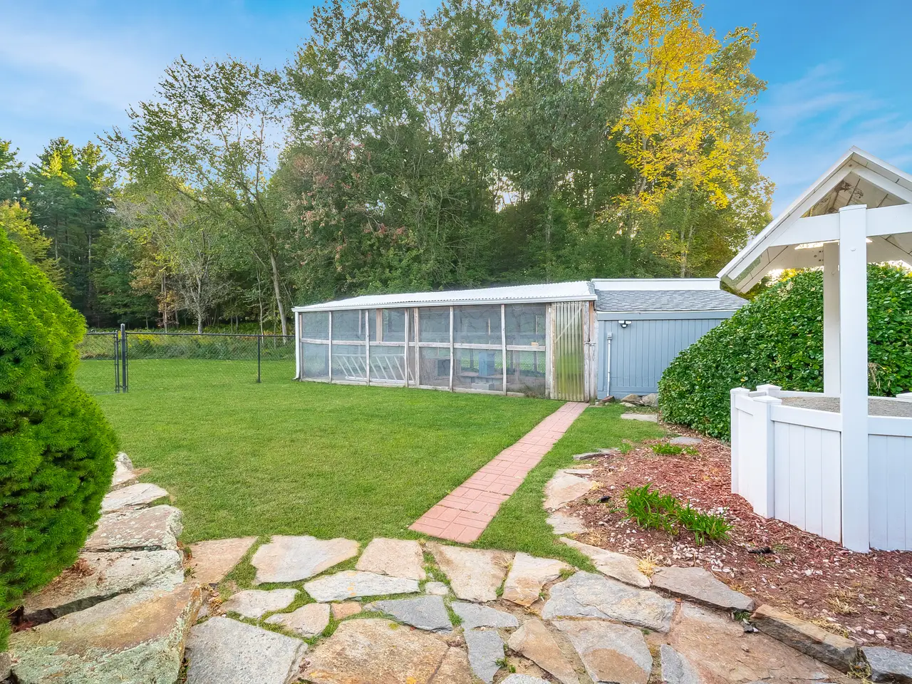 This 29-acre country estate in Willington, captures the perfect balance of tranquility, luxury, and equestrian living. Set beside an established equestrian facility, the property offers both convenience and privacy for horse enthusiasts while presenting an extraordinary opportunity with its subdivide-able acreage. The ranch-style home exudes timeless quality with multiple bedrooms and baths, welcoming family rooms, fireplaces, and laundry areas on 2 levels. Hardwood floors, a new roof, updated 200-amp service, a new 330-gallon oil tank, and a Generac generator reflect the care and investment poured into this home. Outside, the grounds invite a lifestyle of country elegance with stonewalls, a gazebo, and an in-ground pool, all surrounded by pastoral views. A chicken coop condo, four garage spaces, and multiple sheds add functionality, while the three-stall barn with hay and tack areas is designed for horses' comfort and care, with each stall offering two doors that open directly to future individual paddocks. Also has water and electricity! This is more than a property, it is a retreat, offering a rare combination of peace, beauty, and practicality, where country luxury and equestrian living come together in one remarkable setting.