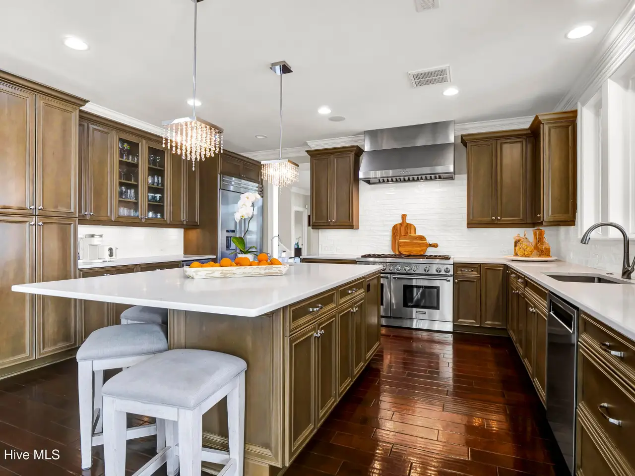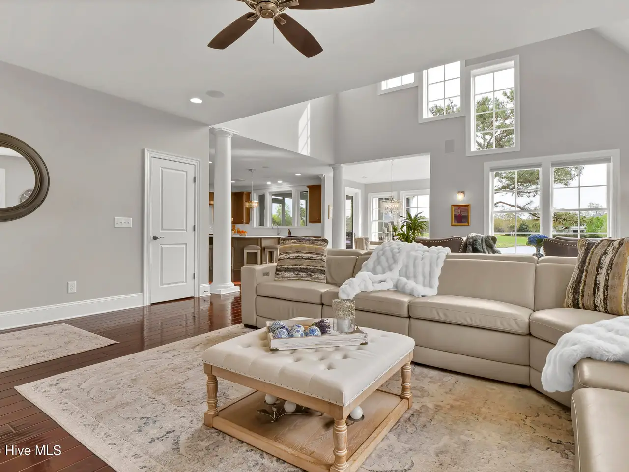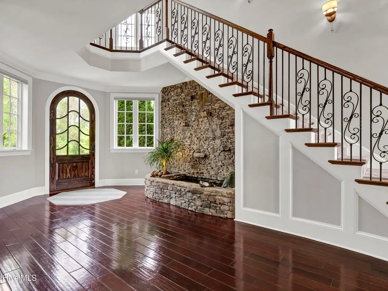 Situated on a quiet, private cul-de-sac in a peaceful peninsula-like setting is where you'll find this lovely lakefront Landfall sanctuary with Marsh #8 golf course views. Let your cares slip away as you gaze at swans gliding across the water, turtles basking in the sun or a variety of birds dancing in the breeze. The interior is equally as serene, as a Koi pond with fountain greets you in the foyer along with wood floors & soft, soothing colors that carry throughout formal and informal areas of this stunning residence. You'll love hosting memorable gatherings with family & friends in your gorgeous gourmet Kitchen complete with beautiful new quartz countertop, a Thermador professional series 6 burner natural gas range & 2 ovens, Thermador refrigerator, new dishwasher new microwave, beverage refrigerator, even reverse osmosis, a prep sink & roll out shelves. The generous Kitchen opens to formal & informal living & dining spaces with a stacked stone natural gas or woodburning fireplace. You'll find 2 offices/bedrooms with adjoining balcony and full bath on the first level; upstairs enjoy 4 bedrooms including the oversized Primary Suite with vaulted ceilings, a reading/exercise/meditation area, spacious walk-in closet, sizable jetted tub AND separate jetted shower. Heaven inside & out. Instantly fall in love with the incredible outdoor space - whether entertaining on your lanai, telling tales around the firepit, or simply sitting under the arbor near the water feeling the sunshine. Other special features of this amazing home include 107 windows including floor to ceiling in the Great Room offering abundant natural light, repainted interior, 2 on-demand hot water systems, whole house water filtration system, irrigation system on a well, efficient geothermal heating & cooling for very low energy bills, Laundry Room with sink & cabinets, wired for sound, oversized 2 car garage and fenced backyard. Wow.