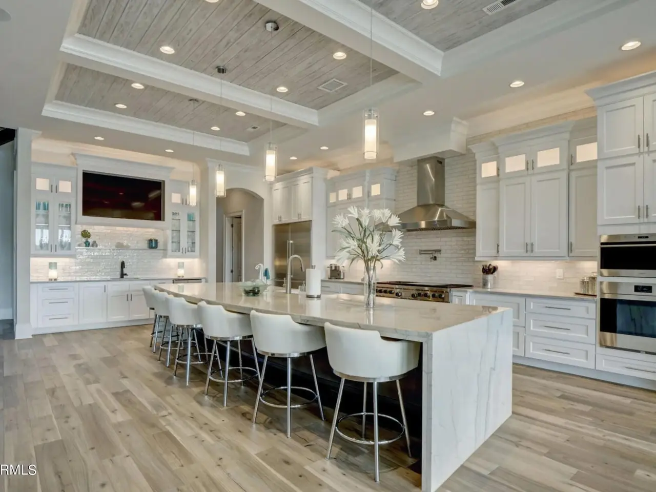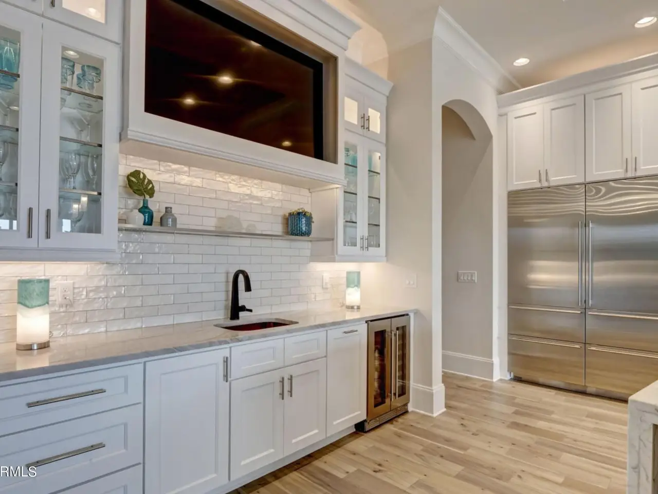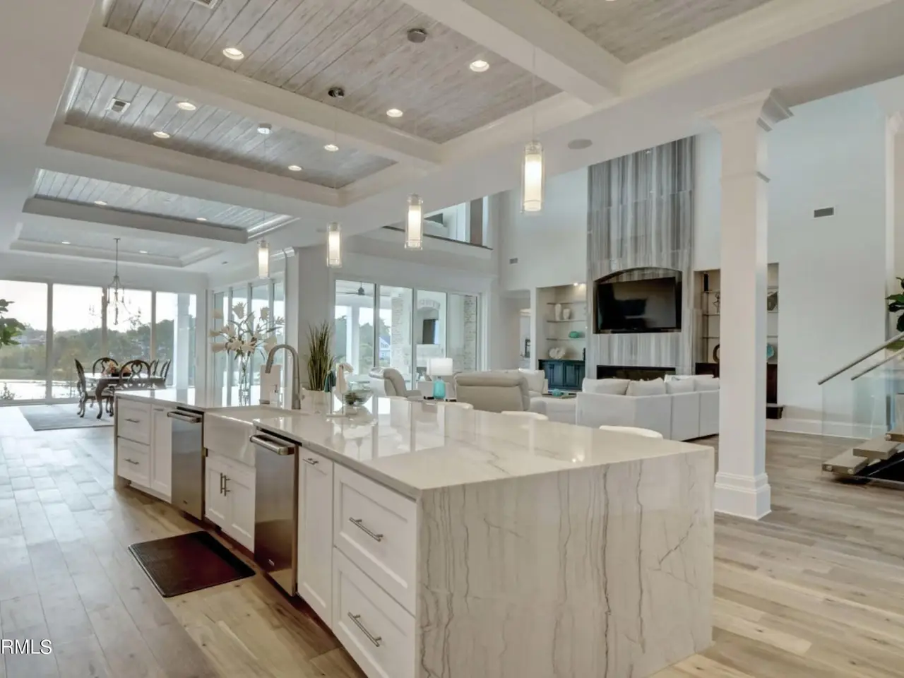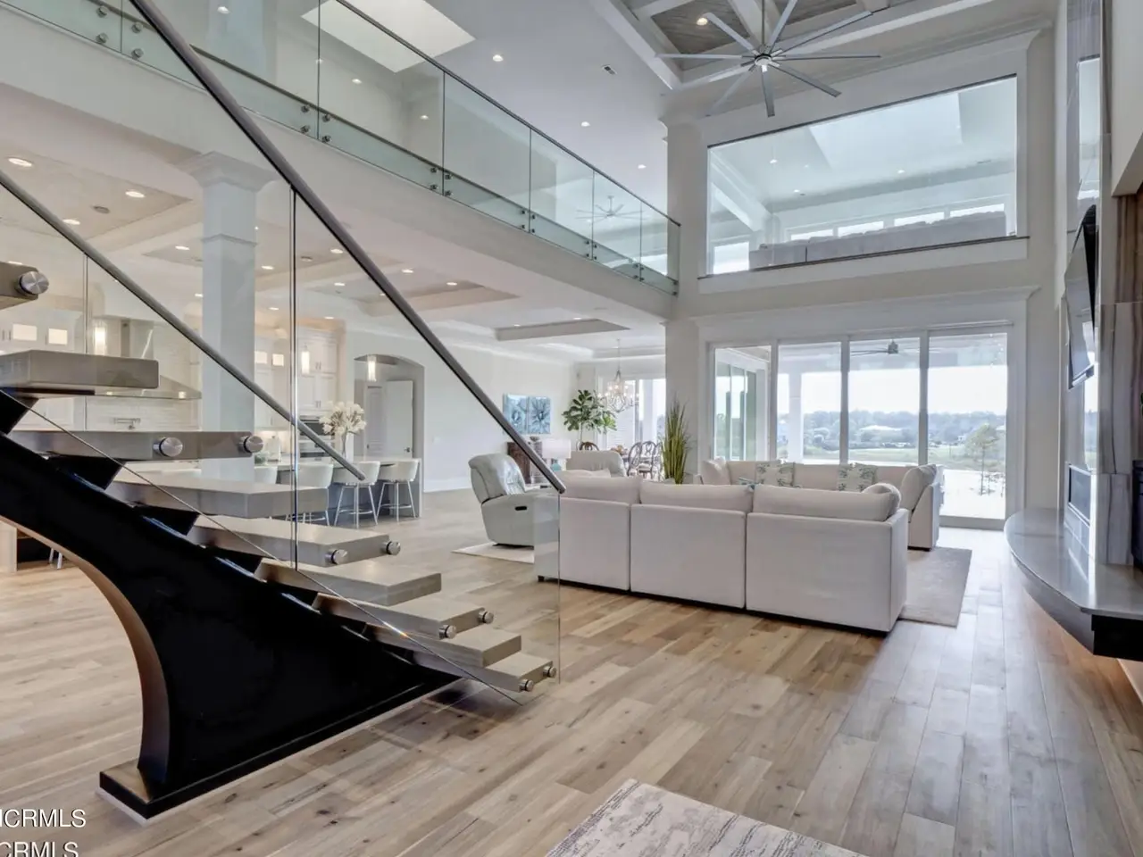 1737 S Moorings is a stunning coastal waterfront modern brick home with superb craftsmanship sitting on an idyllic lake front and golf course lot in the highly sought after gated community of Landfall and adjacent to Wrightsville Beach and endless amenities and restaurants. This beautiful home by Blanton Building features a spacious ''to die for'' chef's kitchen with stacked 2 level cabinetry, a huge island with farm sink, wet bar with wine and beverage refrigerators as well as a 48'' Wolf gas stove with double ovens and a separate Wolf wall oven and microwave, a 60'' Subzero refrigerator and 2 cove dishwashers. The three-car garage and 10 driveway parking areas welcome all visitors to this modern craftsman style. The first level boasts floating stairs with glass rails, 12-foot-plus ceilings with trays, beams and wood details. The first level also encompasses an exquisite master suite with floating vanities, large walk-in shower with multiple shower heads and body sprayers and his and her closets with direct access to the laundry. There are also three additional bedrooms and baths on the first level. On the second level, there are two other bedrooms and baths, a home gym, home theater, additional living area and a separate recreation room. Above the three-car garage is a bonus room suite with an additional bedroom, living area, full bath, laundry, and separate entrance. To add to the breathtaking water views, is a rear yard oasis complete with a pool, hot tub, covered lanai, and best of all- an outdoor kitchen. Another bonus of this property is the natural conservation area across the street providing extra privacy and walking paths. This is truly a show-stopping property that checks all the boxes and much more!