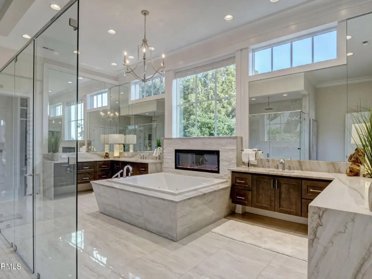 Outdoor oasis with pool, hot tub, and outdoor kitchen