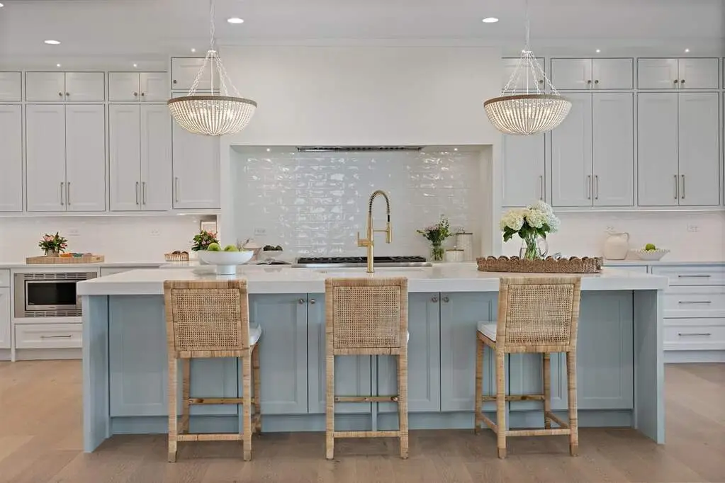 Just completed October 28th, this breezy, bright, and beautifully coastal new construction by one of the North Shore's premier builders captures the essence of modern beachy living. From the moment you arrive the sea salt blue shutters set the tone for what's inside: a sun-kissed sanctuary where craftsmanship meets coastal charm. Soaring ceilings, hand-beveled wide-plank white oak floors, Marvin windows, Ann Sacks tile, and layers of quartz and fine white marbles, all woven together with exquisite millwork and a refined, airy palette. Foyer opens to a coastal-inspired office wrapped in soft pale blue cabinetry and custom glass French doors. Formal dining room connects seamlessly to a fully outfitted butler's pantry, leading into the show-stopping Chef's kitchen-straight out of a Serena & Lily magazine. Thick white & light-veined quartz countertops, Visual Comfort pendants, custom cabinetry with polished brass accents, Thermador appliances and a soft blue island anchoring the room with seating for 5. Open-concept kitchen to family room centered around a black surround gas fireplace flanked by custom built-ins, bathe in sunlight through expansive floor-to-ceiling glass doors that open to the back patio and lush backyard. Mudroom with built in bench, gray and white checkered floors and sky-blue cabinetry and a designer level powder room complete this level. Second level with 4 ensuite bedrooms, each with its own beautifully tailored bath and fully built-out closets. Luxury primary suite a five-star retreat, featuring vaulted ceilings, large walk-in closet and a luxe white spa bath with dual vanities, walk-in shower, and soaking tub. Second level laundry room with double washer and dryer. Sun-drenched third floor offers endless versatility with bedroom, full bath, playroom, and office space. Fully loaded lower-level w/ a glass-enclosed gym with rubber flooring & mirrored walls, sleek wine cellar with custom racking and glass door, bedroom, full bath, and a large recreation room with custom media center and wet bar. This beachy new construction home delivers the ultimate living experience-a one-of-a-kind opportunity set in a prime Winnetka steps to it all!
