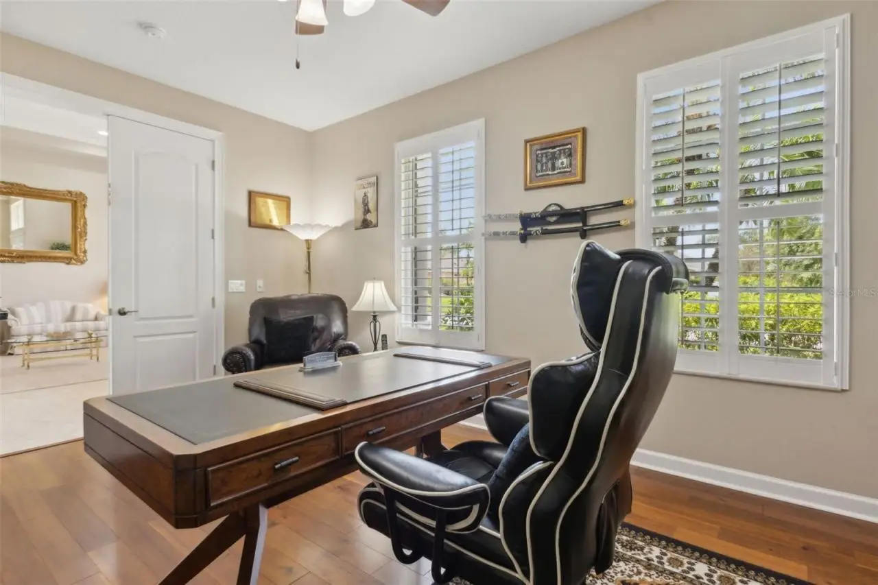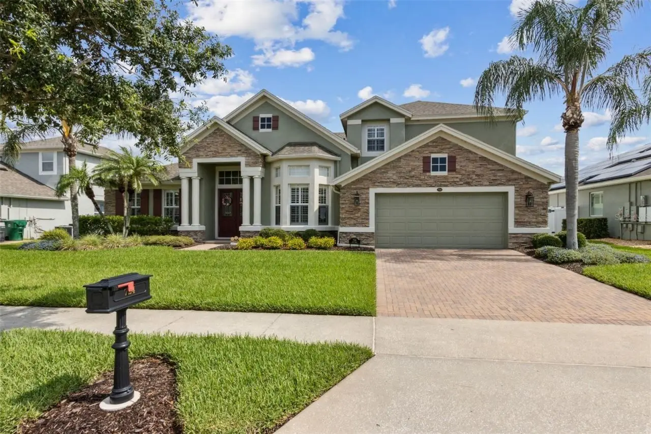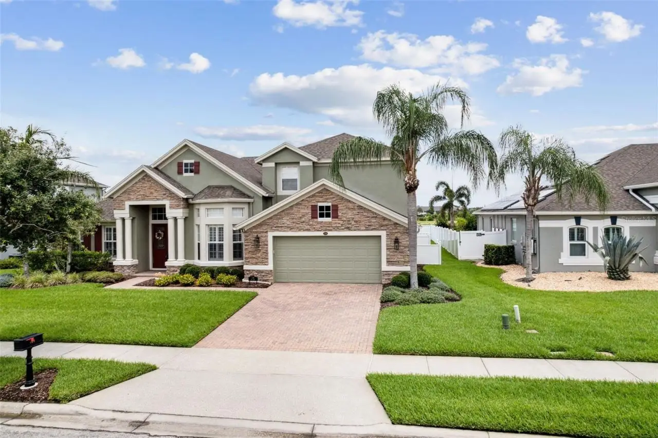 MODEL PERFECT & MOVE IN READY San Remo V floor plan from MI Homes in Winter Garden's desirable gated Glynwood neighborhood! The home features 4 beds, 4 baths, an office with built-in shelving and wood floors, formal living and dining rooms, a bonus room, theatre room, plantation shutters, a newer roof (2019), covered patio, screened in saltwater pool & spa in a fenced in yard! You will love the vaulted, coffered ceilings that welcome you into the home, in addition to the 8' doors, neutral paint and decorative touches throughout. The formal living room will be on your right as you enter the home and the office on your left. Walk further into the formal dining room, which is open to the family room that has crown molding. The gourmet kitchen features 42 cabinets with crown molding and hardware, a tile backsplash, granite counters, an island, double ovens, a new cooktop, breakfast bar, a closet pantry and is open to the breakfast nook and family room that overlooks the backyard oasis! Glass sliders with new rollers lead to the covered patio that overlooks the gorgeous pool. What a great space to enjoy your morning coffee or relax after a long day! The owner's suite is downstairs and features a tray ceiling with crown molding and an en-suite bath with 2 walk-in closets with new sliding doors, 2 separate vanities, a corner soaking tub, a glass enclosed tiled shower and a separate water closet with a new toilet. The laundry room is downstairs and has travertine tile and cabinets for extra storage. Two guest bedrooms are downstairs, each with their own bathrooms. One guest bedroom has an en-suite bath that doubles as the pool bath. Upstairs you will find a large bonus room that is pre-plumbed for a wet bar, a bedroom that has built-in shelving and full bathroom in addition to a media/theatre room with a tiered seating platform and is wired for a projector or tv in the ceiling. There's also a spacious air conditioned storage room upstairs. This home has been beautifully maintained by the original owners! Additional updates include a new front door, new AC unit downstairs - both inside and outside, the carpet has been replaced, new interior and exterior paint, an audio system in the living areas and patio, the pool has been resurfaced with pebble tek and re-tiled, the screen enclosure re-built, a new pool heater, pool pump, salt cell and filter in addition to a new, modern circuit board. The exterior is wired for lights, too. Located in the Stone Crest community, with access to a resort style community pool, clubhouse, playground, tennis courts and walking trails. Centrally located, minutes from great shopping and dining in Winter Garden Village, close to Hamlin, theme parks, major roads and highways. Live the luxurious lifestyle you've always wanted - don't let this home pass you by!