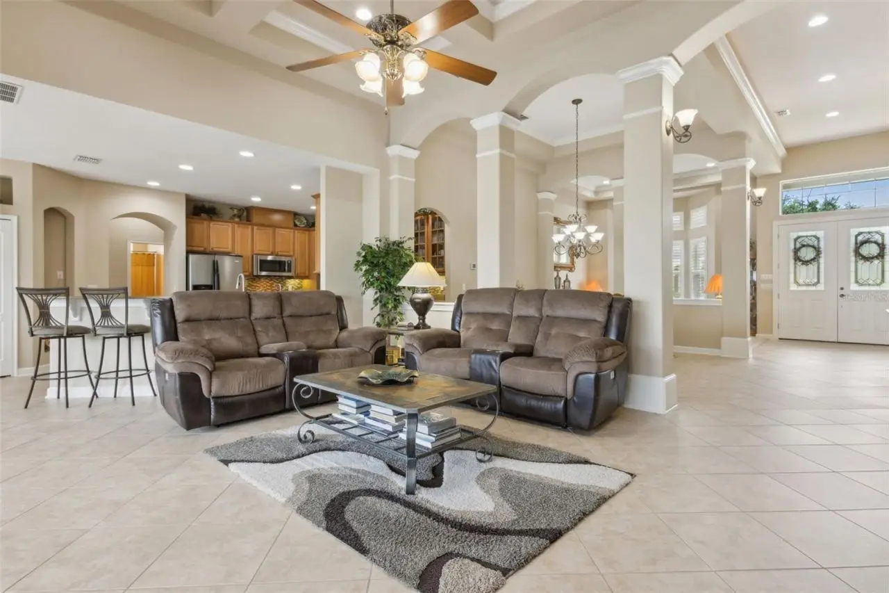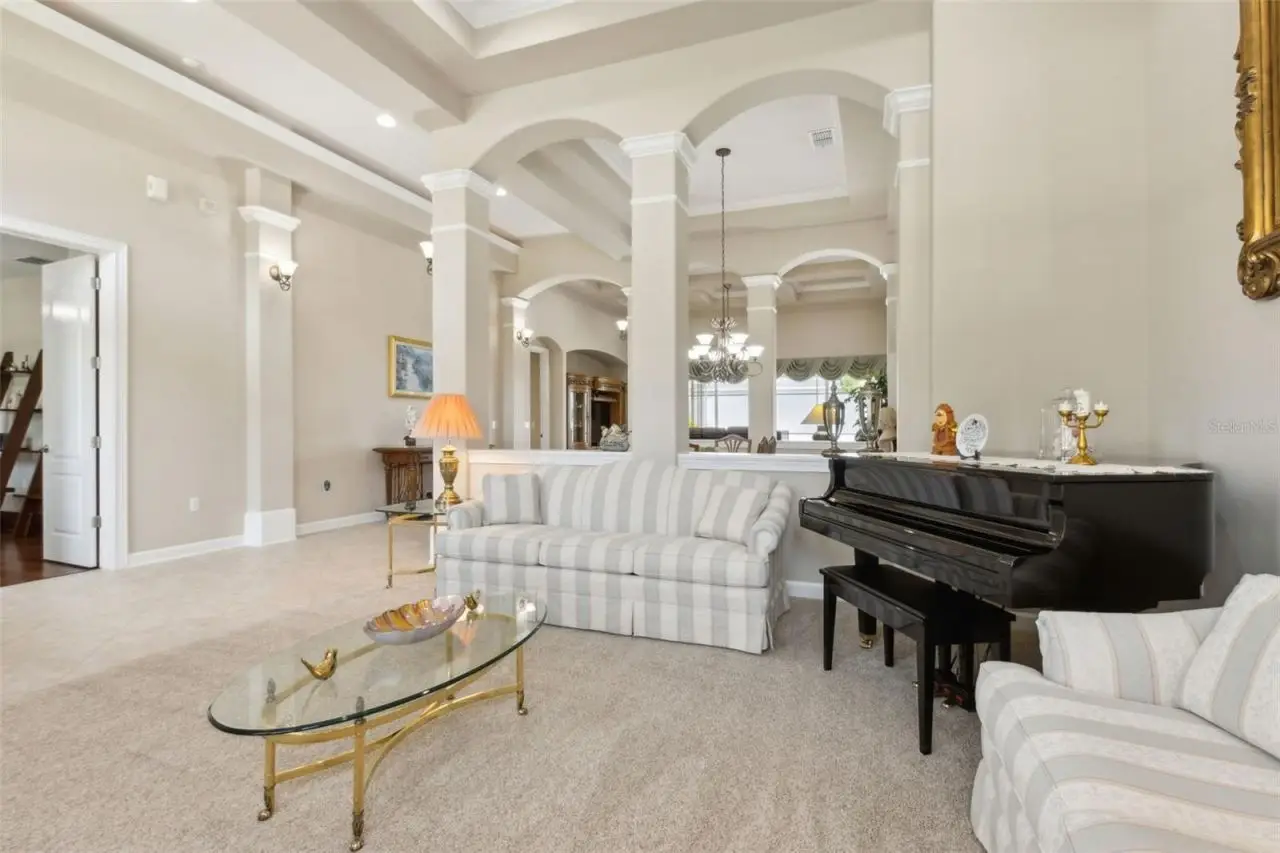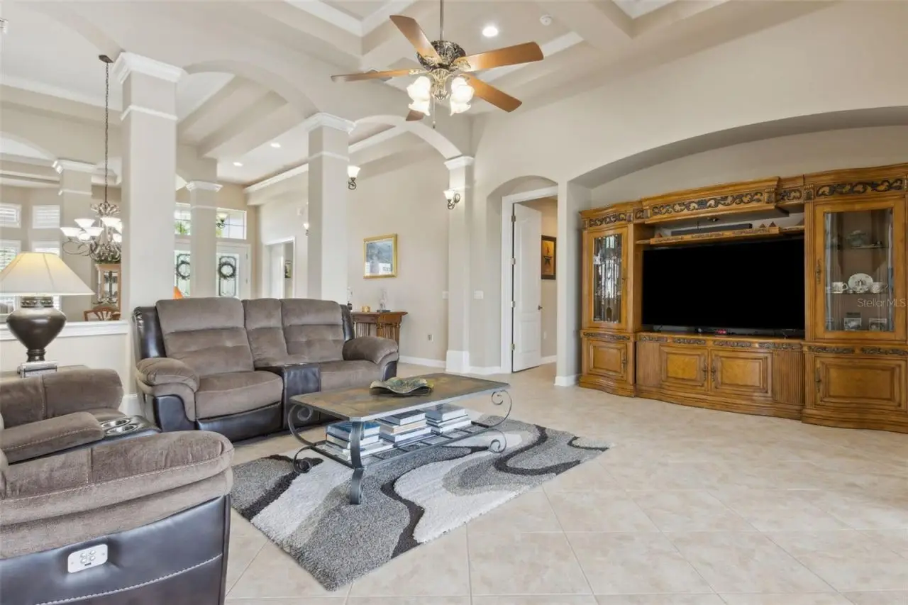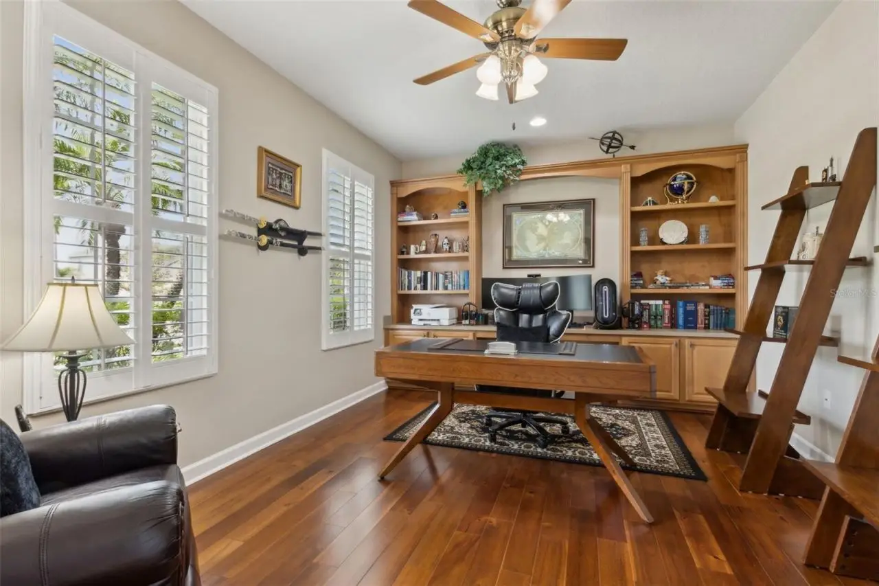 MODEL PERFECT & MOVE IN READY San Remo V floor plan from MI Homes in Winter Garden's desirable gated Glynwood neighborhood! The home features 4 beds, 4 baths, an office with built-in shelving and wood floors, formal living and dining rooms, a bonus room, theatre room, plantation shutters, a newer roof (2019), covered patio, screened in saltwater pool & spa in a fenced in yard! You will love the vaulted, coffered ceilings that welcome you into the home, in addition to the 8' doors, neutral paint and decorative touches throughout. The formal living room will be on your right as you enter the home and the office on your left. Walk further into the formal dining room, which is open to the family room that has crown molding. The gourmet kitchen features 42 cabinets with crown molding and hardware, a tile backsplash, granite counters, an island, double ovens, a new cooktop, breakfast bar, a closet pantry and is open to the breakfast nook and family room that overlooks the backyard oasis! Glass sliders with new rollers lead to the covered patio that overlooks the gorgeous pool. What a great space to enjoy your morning coffee or relax after a long day! The owner's suite is downstairs and features a tray ceiling with crown molding and an en-suite bath with 2 walk-in closets with new sliding doors, 2 separate vanities, a corner soaking tub, a glass enclosed tiled shower and a separate water closet with a new toilet. The laundry room is downstairs and has travertine tile and cabinets for extra storage. Two guest bedrooms are downstairs, each with their own bathrooms. One guest bedroom has an en-suite bath that doubles as the pool bath. Upstairs you will find a large bonus room that is pre-plumbed for a wet bar, a bedroom that has built-in shelving and full bathroom in addition to a media/theatre room with a tiered seating platform and is wired for a projector or tv in the ceiling. There's also a spacious air conditioned storage room upstairs. This home has been beautifully maintained by the original owners! Additional updates include a new front door, new AC unit downstairs - both inside and outside, the carpet has been replaced, new interior and exterior paint, an audio system in the living areas and patio, the pool has been resurfaced with pebble tek and re-tiled, the screen enclosure re-built, a new pool heater, pool pump, salt cell and filter in addition to a new, modern circuit board. The exterior is wired for lights, too. Located in the Stone Crest community, with access to a resort style community pool, clubhouse, playground, tennis courts and walking trails. Centrally located, minutes from great shopping and dining in Winter Garden Village, close to Hamlin, theme parks, major roads and highways. Live the luxurious lifestyle you've always wanted - don't let this home pass you by!