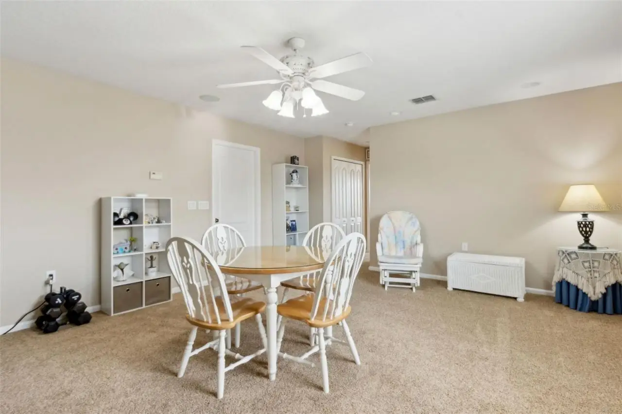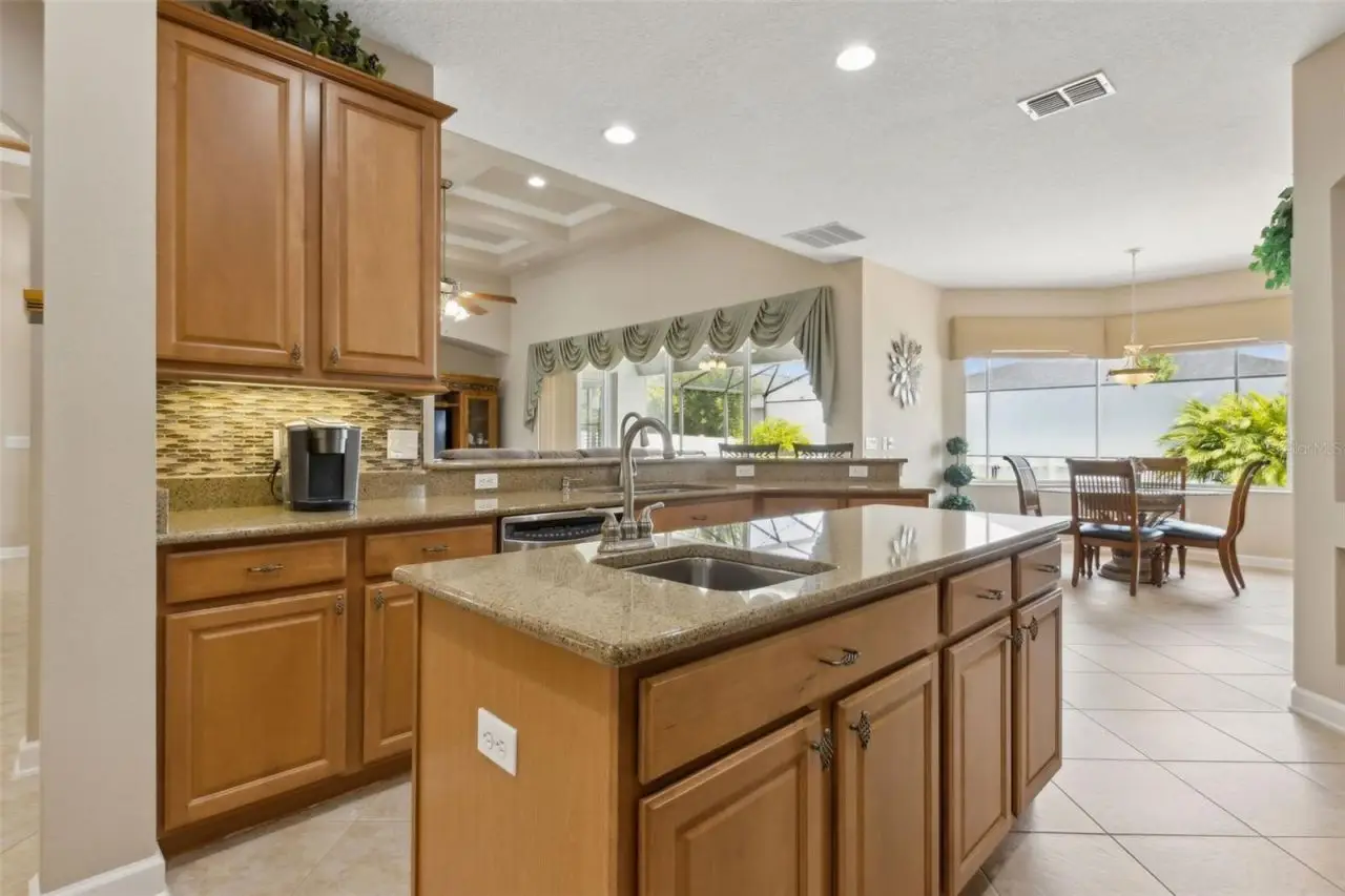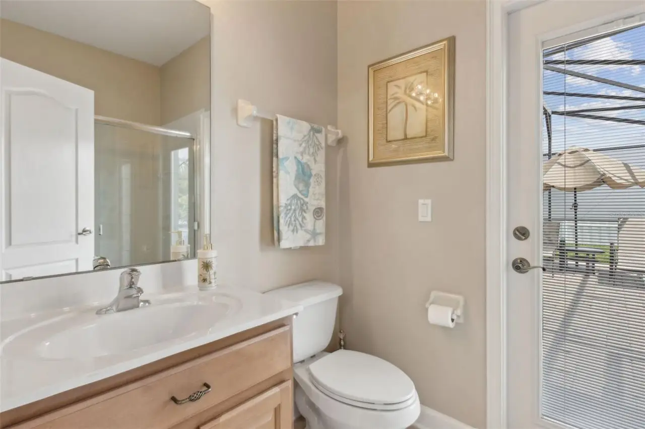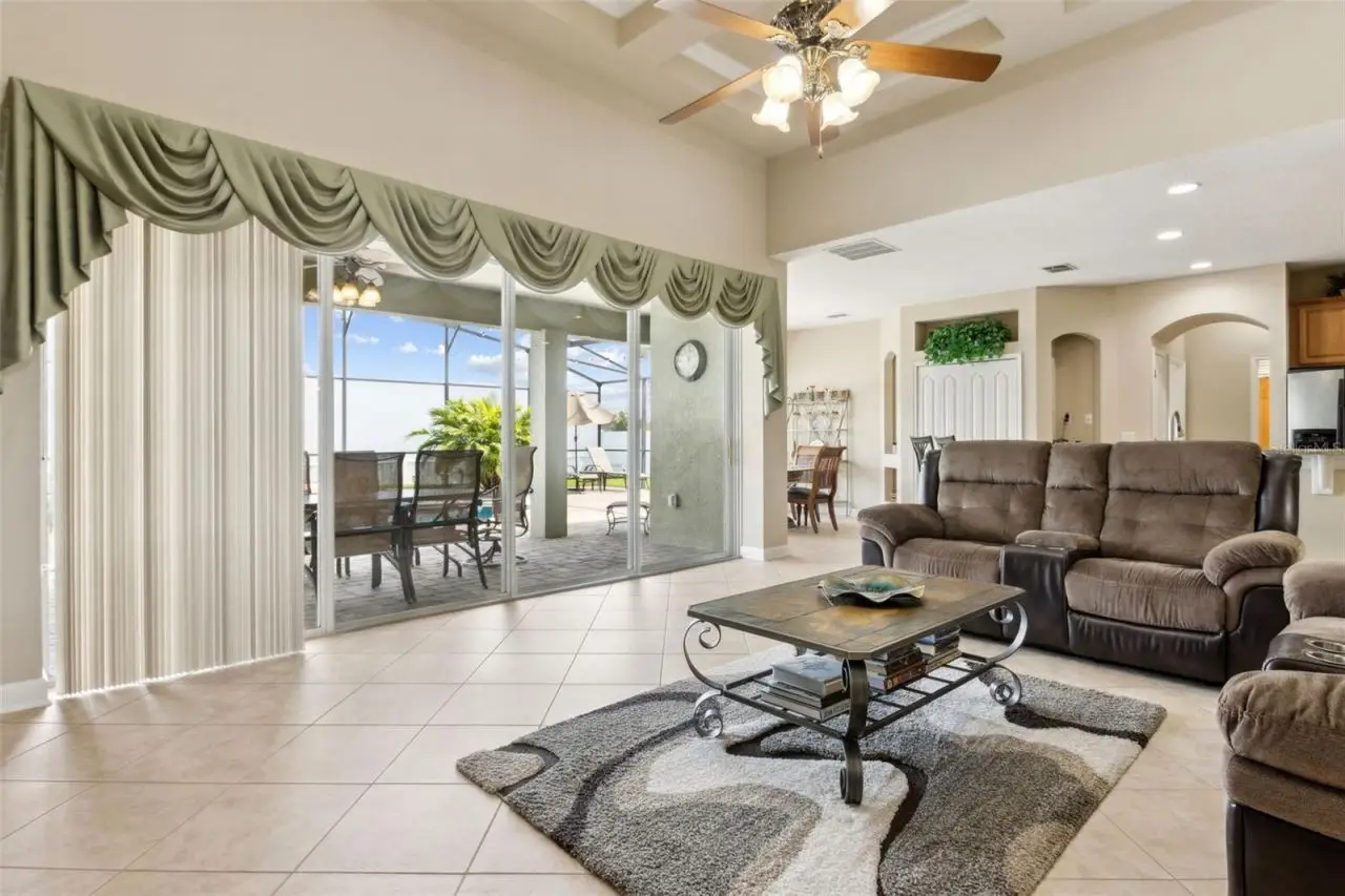 Covered patio overlooking pool oasis