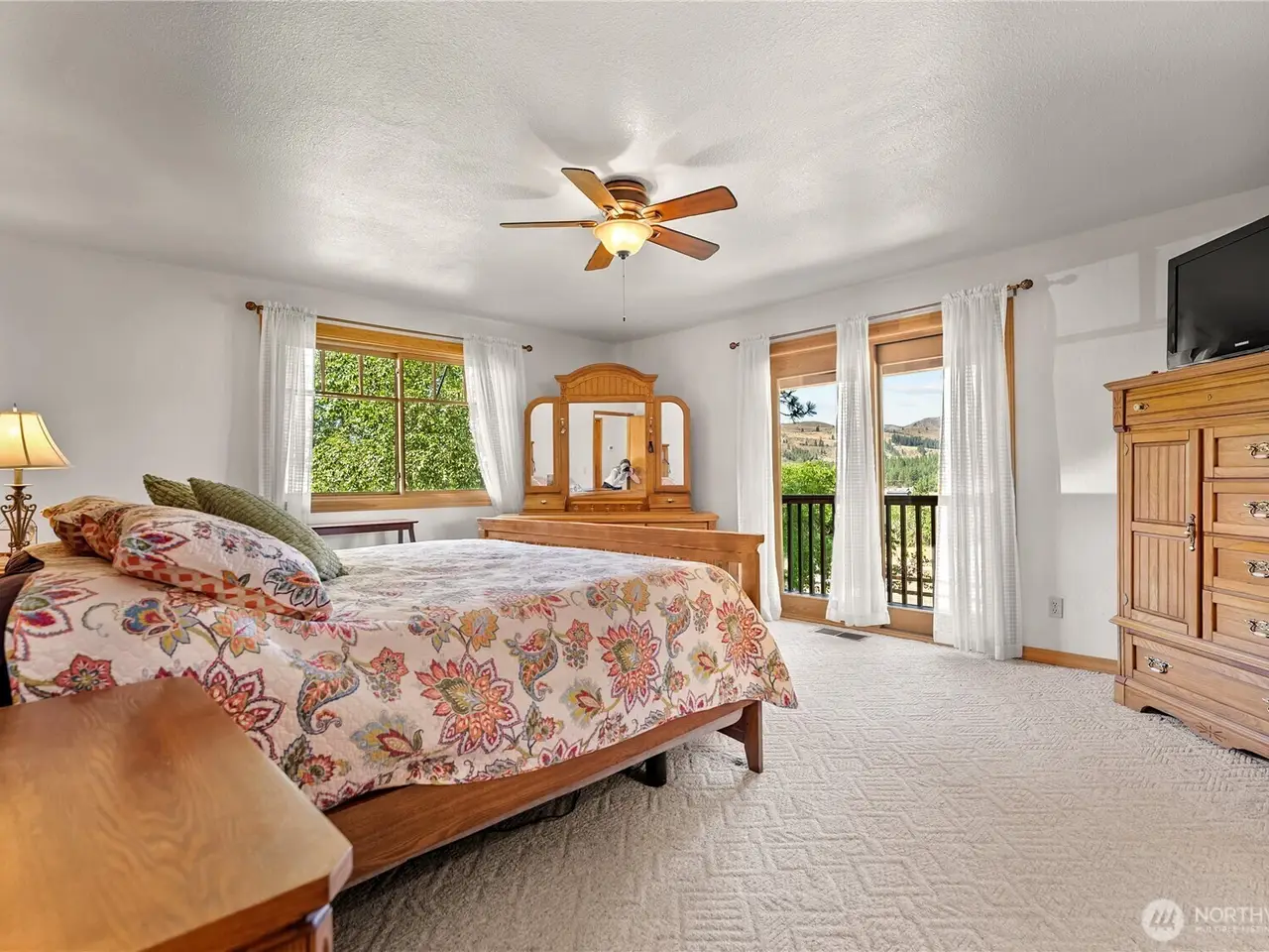 Discover your dream retreat on 25.56 acres! This expansive 3,960 square foot home features three bedrooms and three bathrooms, including a primary suite with a cedar closet. Enjoy the option for a lower-level rental with a full kitchen. Beautiful cedar siding enhances the exterior, while the interior boasts a propane fireplace and a mix of carpet, tile, and laminate flooring. Relax on the covered redwood deck, taking in stunning views of the river and mountains. The property also features a hot tub, expansive lawns, well-established flower gardens, and a tranquil pond with a fountain. Additionally, there's an extra single-wide manufactured home - ideal for guests or generating rental income! With two parcels and ample privacy, this is a rare find!