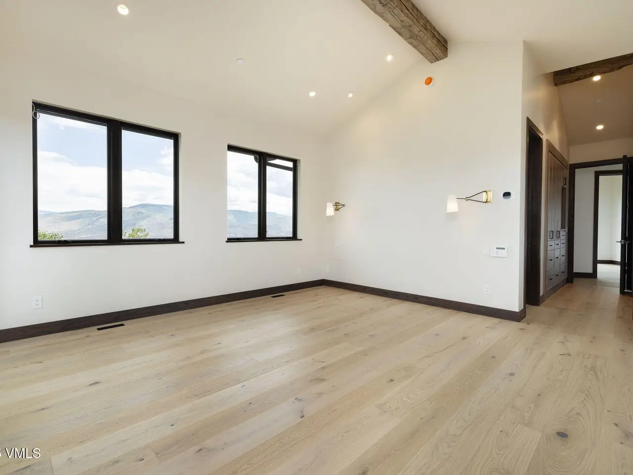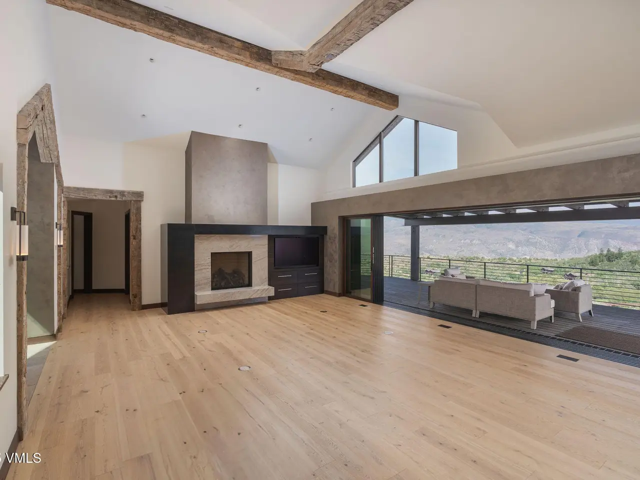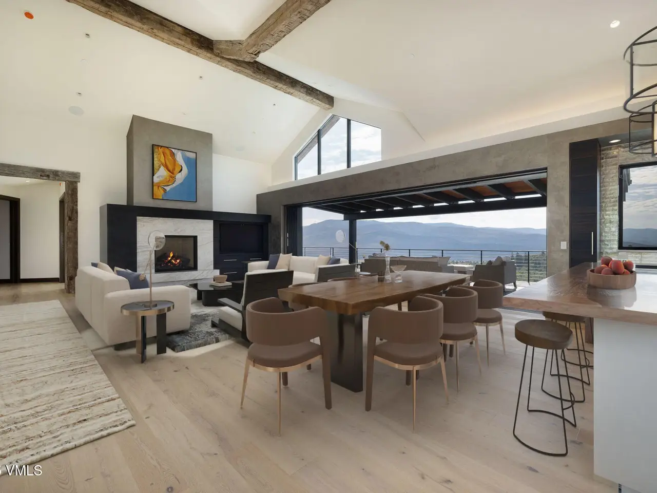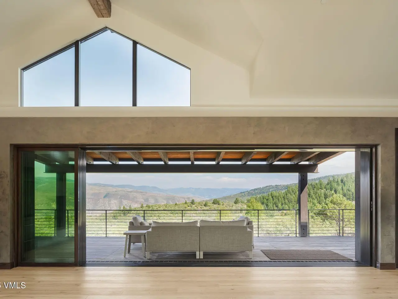 This newly built home in Red Sky Ranch combines mountain contemporary design with high-end finishes. Positioned above the 14th fairway of Red Sky Golf Club, the home takes full advantage of its setting with stunning views across the valley toward Vail. A custom pivot entry door opens to an airy interior featuring wide-plank European white oak flooring, reclaimed antique wood beams, and hand-applied Italian wall finishes. The kitchen is outfitted with Serenity Blue Quartzite surfaces, Italian eucalyptus cabinetry, and a commercial Monogram range, along with a hidden butler's pantry complete with an oven, microwave, beverage center, and ice maker. The open-concept living and dining area connects seamlessly to a covered deck via 24-foot La Cantina pocket sliders. The deck is plumbed for ceiling heat and fire features, making it ideal for year-round use. A patina steel and leathered Taj Mahal quartzite fireplace anchors the great room, complemented by integrated Sonos audio, security cameras, and a heated sandstone entry and driveway. The primary suite includes a private deck, walk-in closet, and a well-appointed bathroom with a steam shower, makeup vanity, bidet, and backlit mirrors. The lower level offers a family room with a full bar, a reclaimed wood accent wall, a sauna-ready room, heated patio wired for a hot tub, and a temperature-controlled wine room with reclaimed brick and custom lighting. Other features include a heated garage with a dog wash, epoxy floors, in-floor radiant heat, EV charging outlets, and a WaterCop leak detection system. Just 10 minutes to Edwards and 20 minutes to Beaver Creek or Vail, this home also offers the option to join Red Sky Golf Club, with access to two championship courses, a private clubhouse, pool, and dining—bringing luxury mountain living full circle.