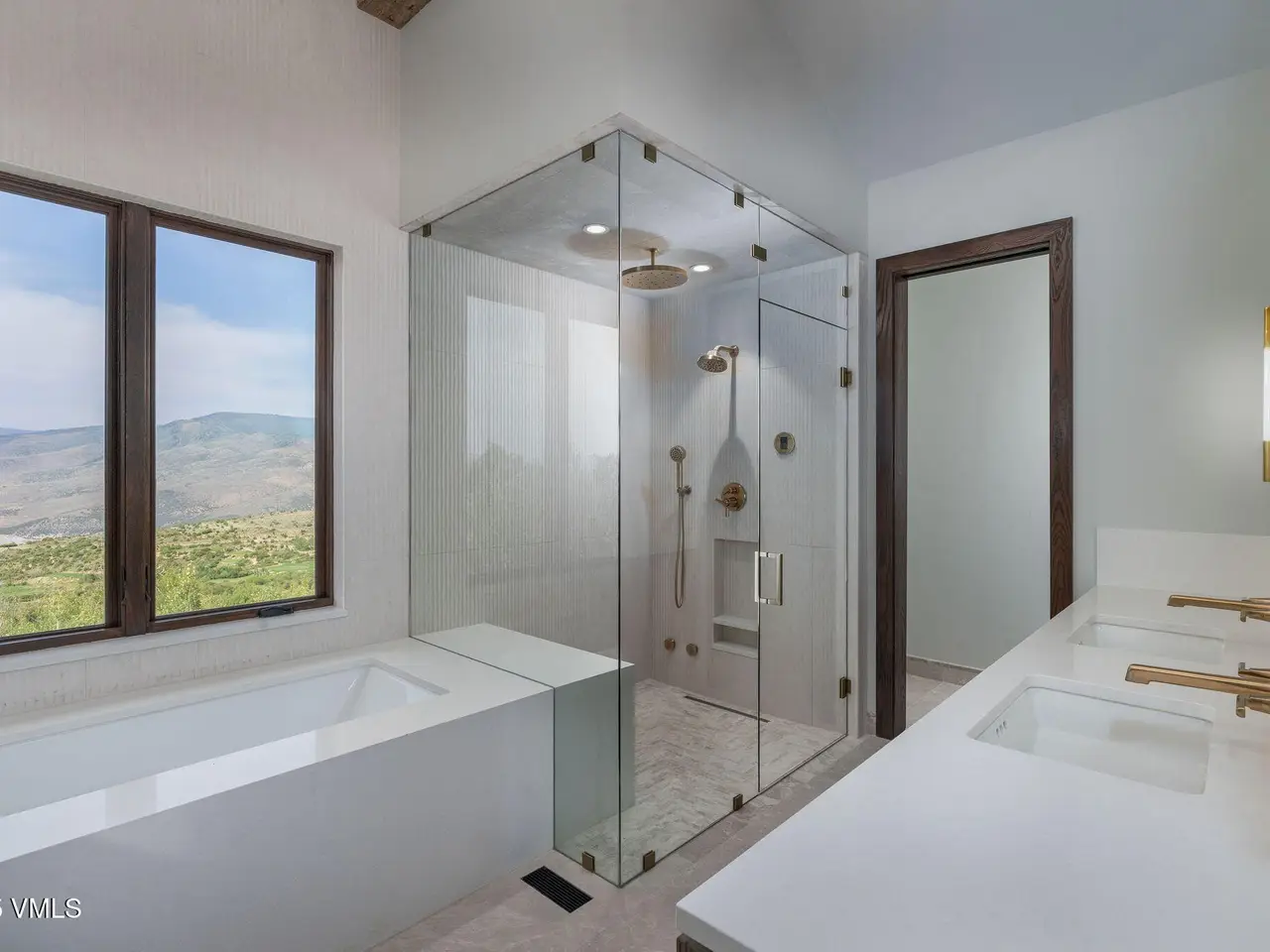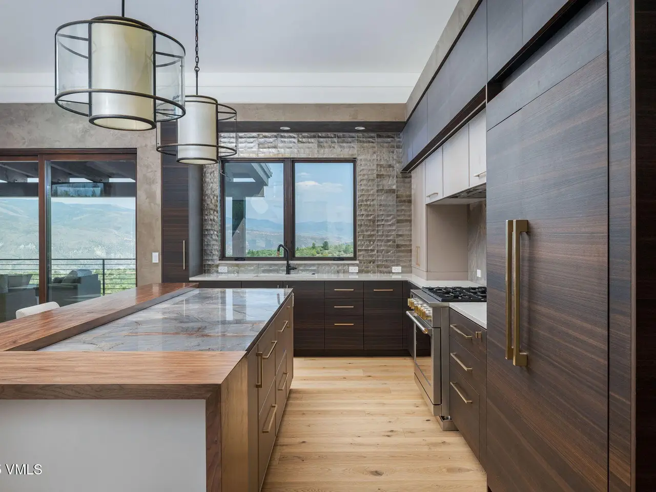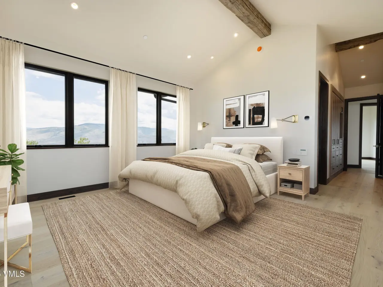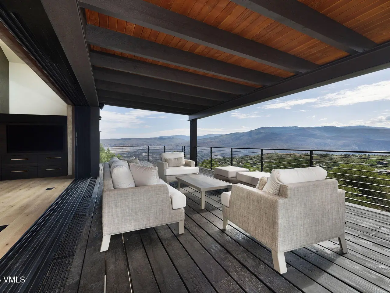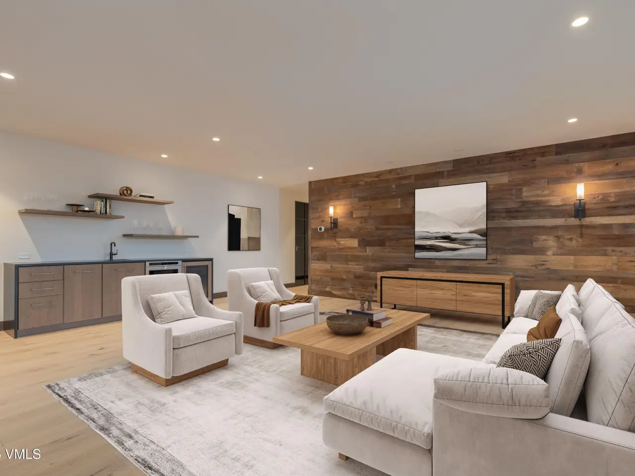 This newly built home in Red Sky Ranch combines mountain contemporary design with high-end finishes. Positioned above the 14th fairway of Red Sky Golf Club, the home takes full advantage of its setting with stunning views across the valley toward Vail. A custom pivot entry door opens to an airy interior featuring wide-plank European white oak flooring, reclaimed antique wood beams, and hand-applied Italian wall finishes. The kitchen is outfitted with Serenity Blue Quartzite surfaces, Italian eucalyptus cabinetry, and a commercial Monogram range, along with a hidden butler's pantry complete with an oven, microwave, beverage center, and ice maker. The open-concept living and dining area connects seamlessly to a covered deck via 24-foot La Cantina pocket sliders. The deck is plumbed for ceiling heat and fire features, making it ideal for year-round use. A patina steel and leathered Taj Mahal quartzite fireplace anchors the great room, complemented by integrated Sonos audio, security cameras, and a heated sandstone entry and driveway. The primary suite includes a private deck, walk-in closet, and a well-appointed bathroom with a steam shower, makeup vanity, bidet, and backlit mirrors. The lower level offers a family room with a full bar, a reclaimed wood accent wall, a sauna-ready room, heated patio wired for a hot tub, and a temperature-controlled wine room with reclaimed brick and custom lighting. Other features include a heated garage with a dog wash, epoxy floors, in-floor radiant heat, EV charging outlets, and a WaterCop leak detection system. Just 10 minutes to Edwards and 20 minutes to Beaver Creek or Vail, this home also offers the option to join Red Sky Golf Club, with access to two championship courses, a private clubhouse, pool, and dining—bringing luxury mountain living full circle.