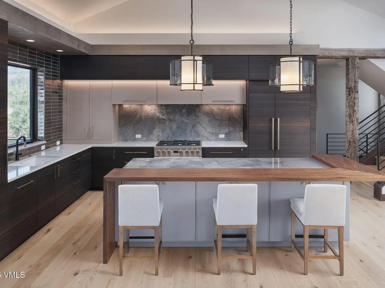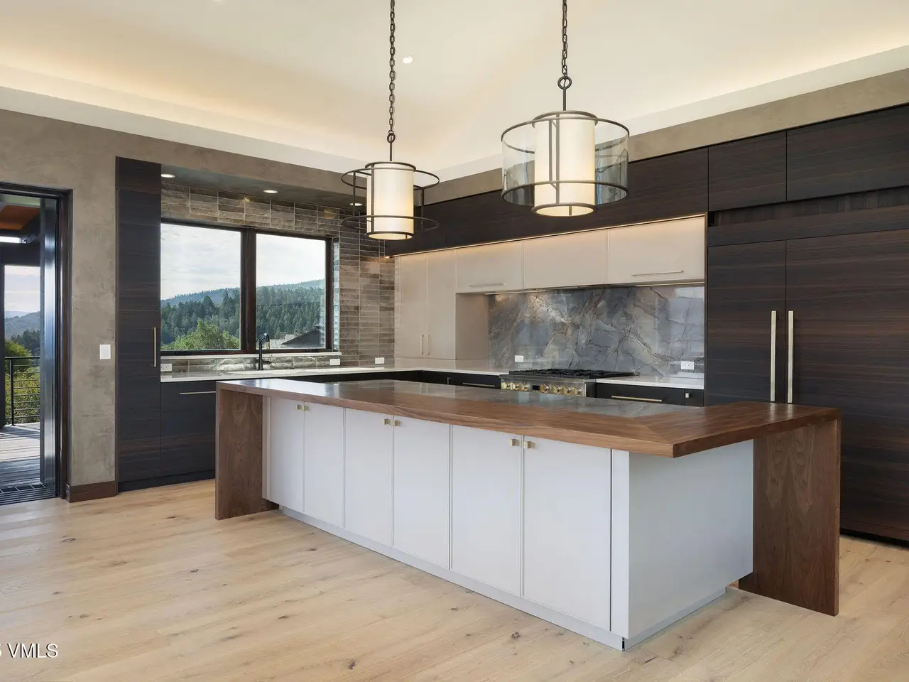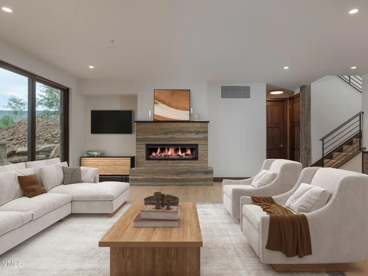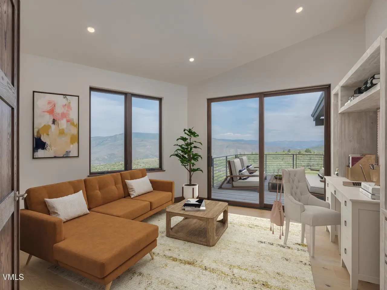 This newly built home in Red Sky Ranch combines mountain contemporary design with high-end finishes. Positioned above the 14th fairway of Red Sky Golf Club, the home takes full advantage of its setting with stunning views across the valley toward Vail. A custom pivot entry door opens to an airy interior featuring wide-plank European white oak flooring, reclaimed antique wood beams, and hand-applied Italian wall finishes. The kitchen is outfitted with Serenity Blue Quartzite surfaces, Italian eucalyptus cabinetry, and a commercial Monogram range, along with a hidden butler's pantry complete with an oven, microwave, beverage center, and ice maker. The open-concept living and dining area connects seamlessly to a covered deck via 24-foot La Cantina pocket sliders. The deck is plumbed for ceiling heat and fire features, making it ideal for year-round use. A patina steel and leathered Taj Mahal quartzite fireplace anchors the great room, complemented by integrated Sonos audio, security cameras, and a heated sandstone entry and driveway. The primary suite includes a private deck, walk-in closet, and a well-appointed bathroom with a steam shower, makeup vanity, bidet, and backlit mirrors. The lower level offers a family room with a full bar, a reclaimed wood accent wall, a sauna-ready room, heated patio wired for a hot tub, and a temperature-controlled wine room with reclaimed brick and custom lighting. Other features include a heated garage with a dog wash, epoxy floors, in-floor radiant heat, EV charging outlets, and a WaterCop leak detection system. Just 10 minutes to Edwards and 20 minutes to Beaver Creek or Vail, this home also offers the option to join Red Sky Golf Club, with access to two championship courses, a private clubhouse, pool, and dining—bringing luxury mountain living full circle.