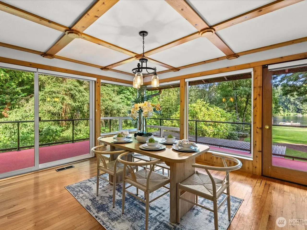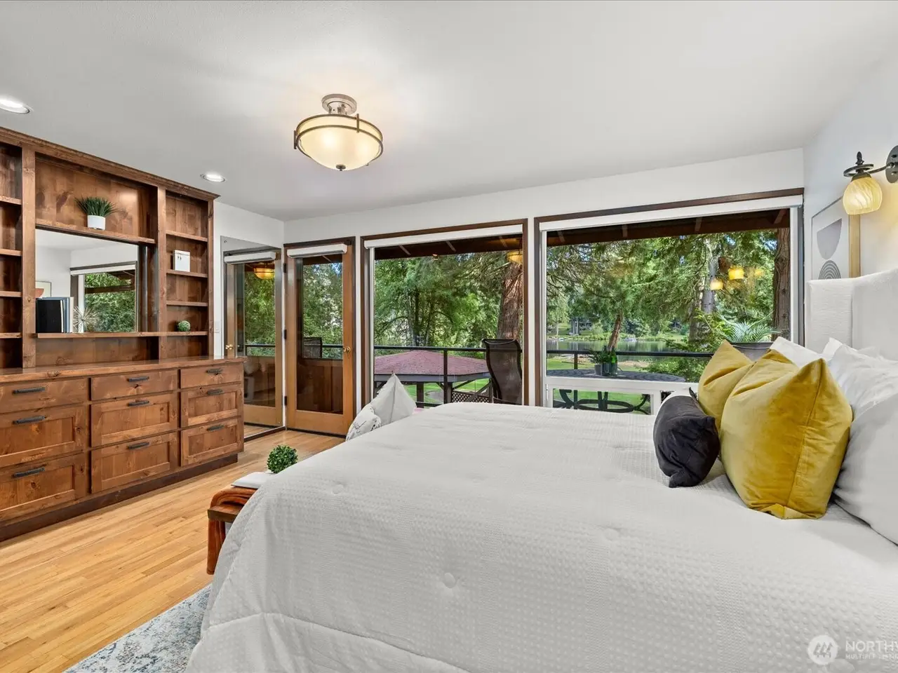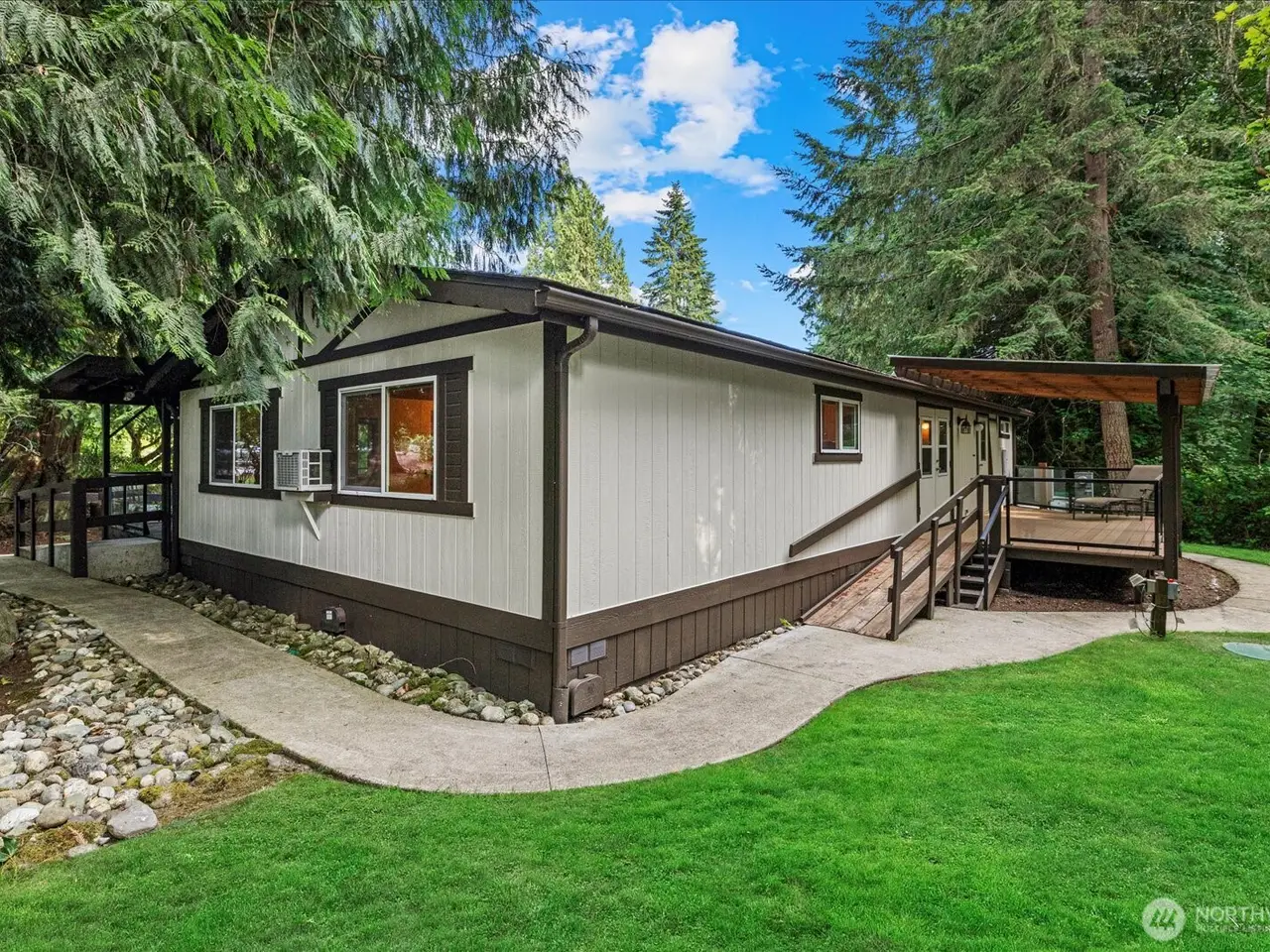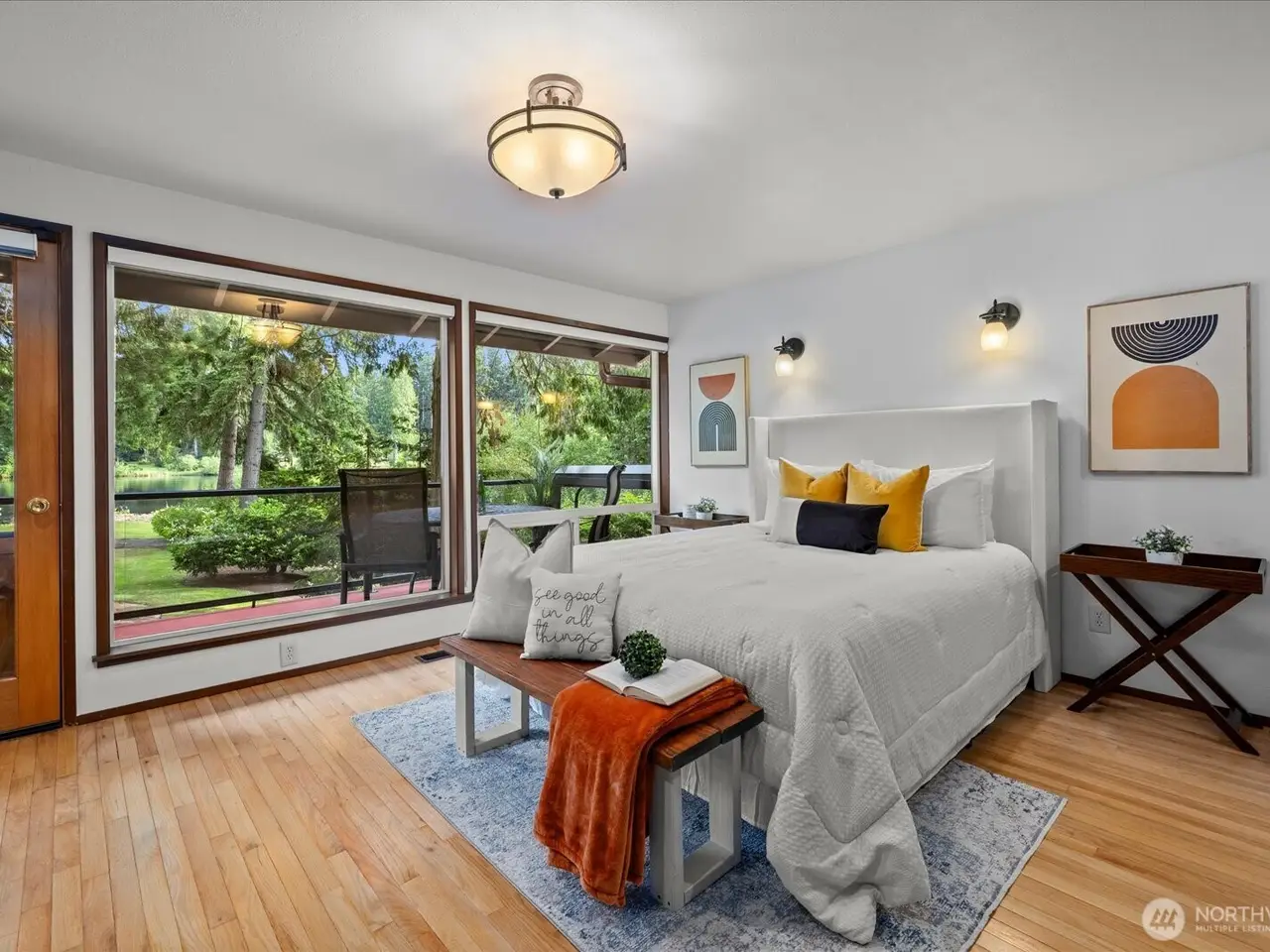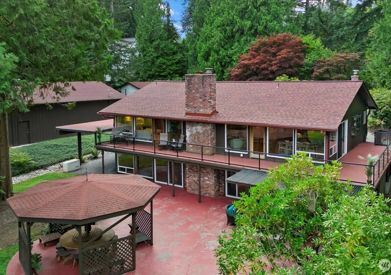 Experience waterfront living on the coveted shores of Lake Leota. Set on 1.97 acres, the 3,500 SF, 3-bed, 2.5-bath daylight rambler features panoramic views, floor-to-ceiling windows, expansive wraparound deck, 2 fireplaces & lower level with bar- offering seamless indoor-outdoor living. Enjoy 136 feet of lakefront w/ a floating dock & gazebo, perfect for paddleboarding or kayaking. 1,150 SF, 2-bed, 2-bath ADU, ideal for rental income/guests. 6-car heated shop with RV parking is a dream for car enthusiasts or hobbyists. Year-round comfort with A/C & whole-home automatic generators. New roof, gutters & fresh paint inside & out. Meticulously maintained landscaping surrounds this Woodinville retreat in the desirable Northshore School District.
