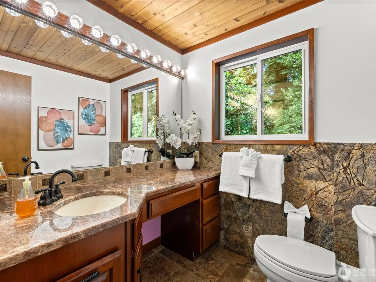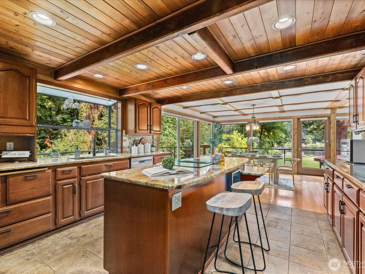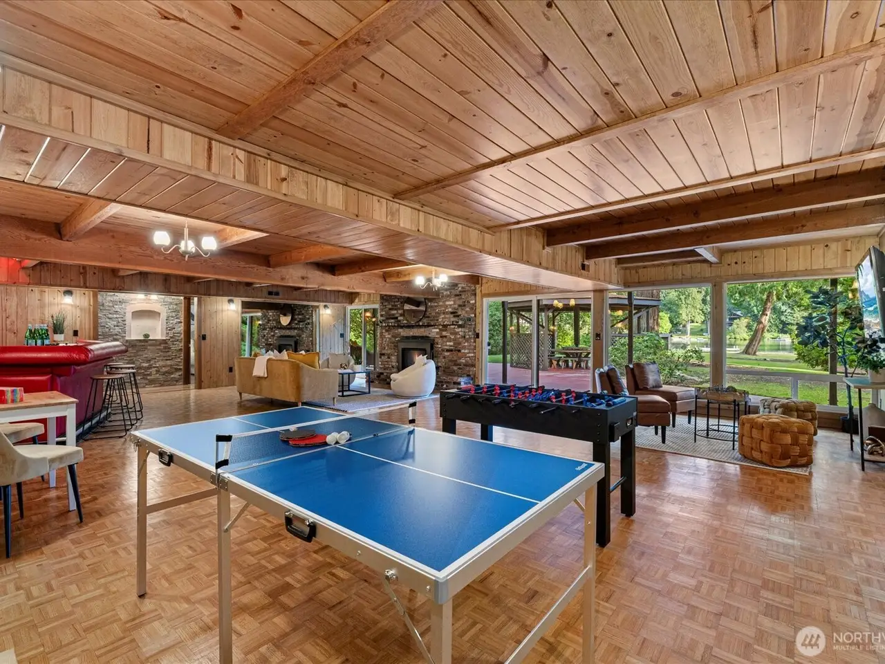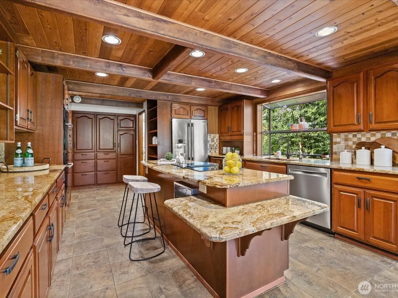 Experience waterfront living on the coveted shores of Lake Leota. Set on 1.97 acres, the 3,500 SF, 3-bed, 2.5-bath daylight rambler features panoramic views, floor-to-ceiling windows, expansive wraparound deck, 2 fireplaces & lower level with bar- offering seamless indoor-outdoor living. Enjoy 136 feet of lakefront w/ a floating dock & gazebo, perfect for paddleboarding or kayaking. 1,150 SF, 2-bed, 2-bath ADU, ideal for rental income/guests. 6-car heated shop with RV parking is a dream for car enthusiasts or hobbyists. Year-round comfort with A/C & whole-home automatic generators. New roof, gutters & fresh paint inside & out. Meticulously maintained landscaping surrounds this Woodinville retreat in the desirable Northshore School District.