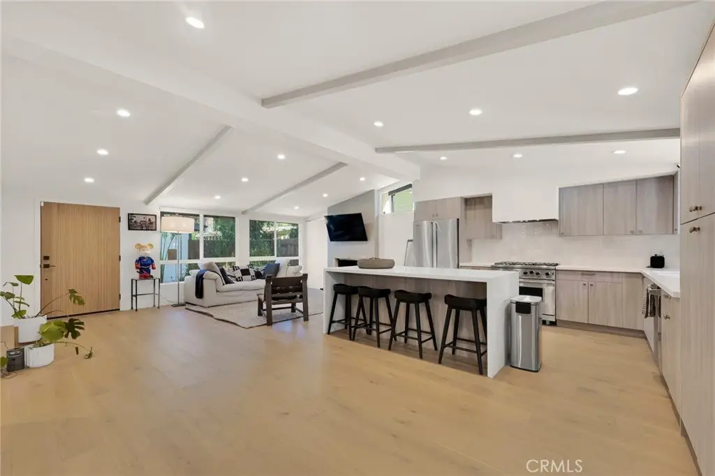 Experience the perfect blend of style and comfort in this beautifully reimagined mid-century modern single-story pool home, ideally situated south of the boulevard in a beautiful sought-after Woodland Hills neighborhood. Originally renovated about three years ago (2023) with high-end finishes and thoughtful design, the home has been lovingly maintained to preserve its like-new feel. Step through a lush, private courtyard into a light-filled living space with soaring beam ceilings and courtyard views. The open-concept great room features European engineered wood floors, an updated fireplace, and a dining area ideal for gatherings. The chef’s kitchen boasts Viking stainless steel appliances, a generous center island with seating, custom flat-panel cabinetry, quartz counters, and a full-height tile backsplash. Designed for seamless indoor/outdoor living, this three-bedroom, two-and-a-half-bath home offers a family room that flows to the pool, firepit, and patio, plus a separate grassy yard. The primary suite includes a custom walk-in closet, spa-like en-suite bath, and direct patio access with serene views. A secondary bedroom also opens to the garden. Extensive upgrades from the renovation done in 2023 include designer fixtures, new windows, roof, HVAC, tankless water heater, updated plumbing/electrical, refreshed pool with new coping, plaster, tile, LED lighting, and more. Close to Ventura Blvd’s dining and shopping, The Village, Westfield Topanga, Calabasas Commons, award-winning schools, beaches, and the 101 Freeway—this home offers a private retreat with unbeatable convenience. Call Sheila Cathers or Julie Saldivar at 818-993-7370