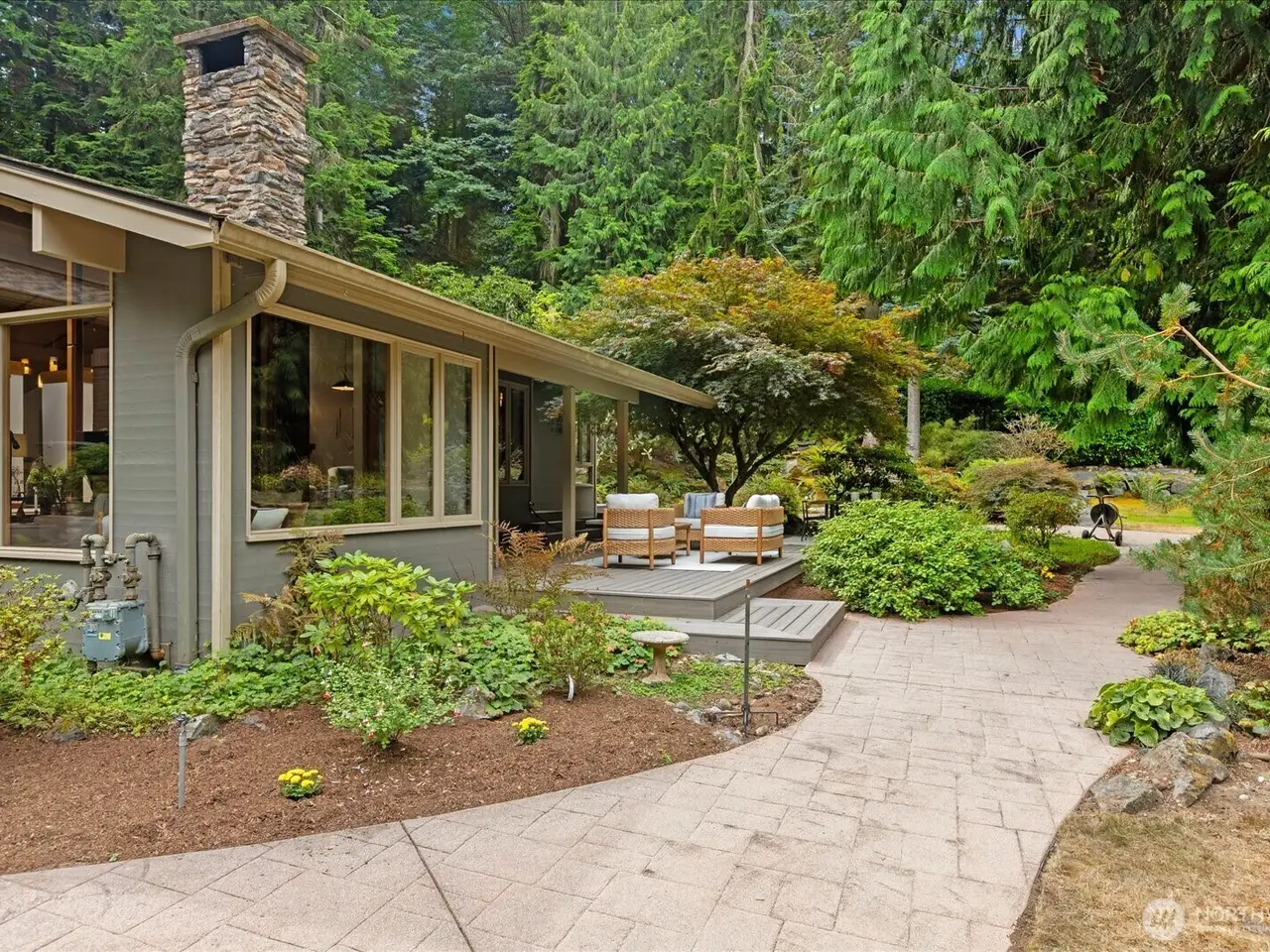 Gated NW contemporary on secluded 2 acres. Soaring cedar ceilings and 24 skylights offer a bright, open living space while oversized picture windows showcase the stunning grounds. All new composite decks include a large entertaining deck connecting living room, den and primary suite. Relaxed yet elegant living spaces include main floor primary suite with 5 piece bath plus first floor guest room and bath. 2006 2nd story addition features amazing game room with wet bar, another 2 beds and 3/4 bath. Huge heated garage with room for workouts, workshop and storage. Deer graze by the pond/waterfall and evening brings owl calls while spring dazzles with unique rhododendrons. Quiet private road connects to Deer Creek Reserve walking trails.