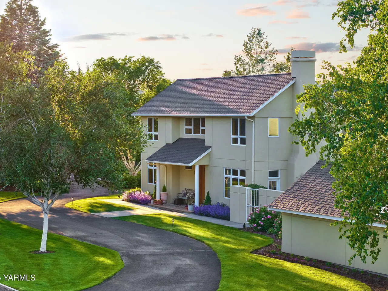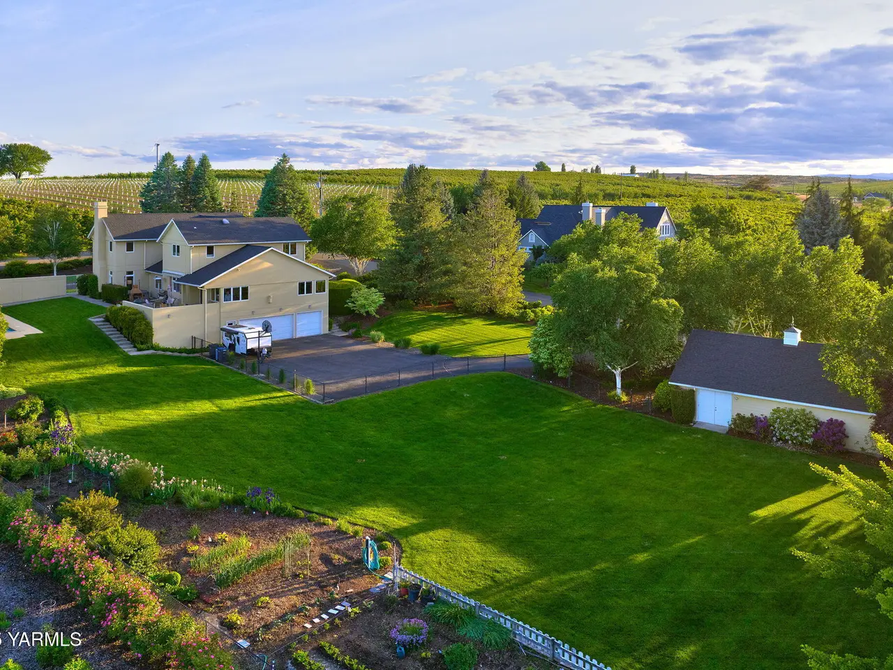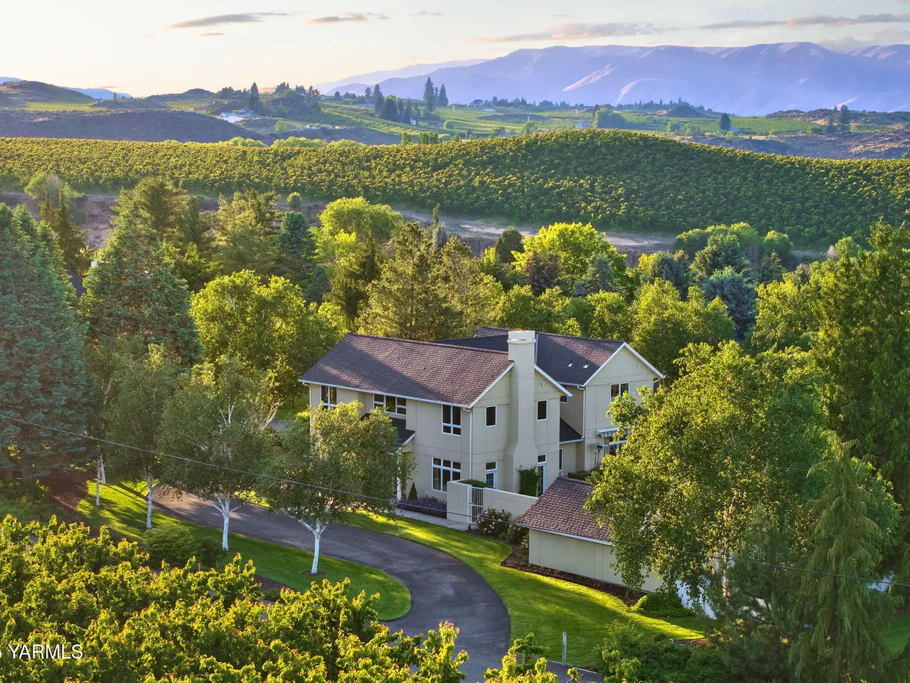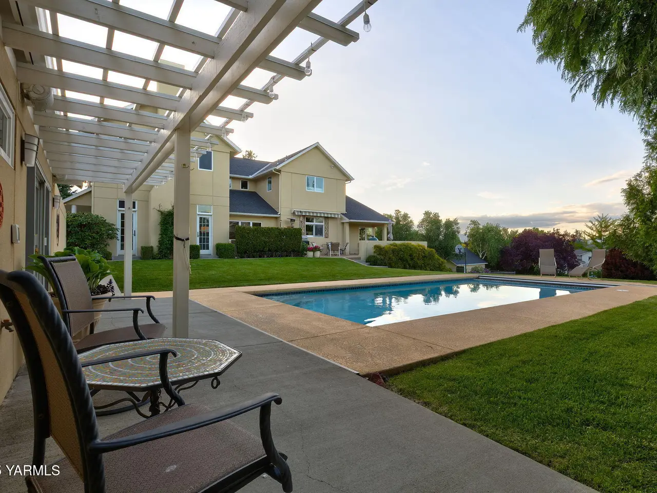 This architecturally designed one owner, custom built home crafted by Jim Sevigny and Artisan Construction, is tucked in on a private lane and set on an acre of rural scenic heaven with close and distant views from Scenic Ridge yet minutes to city life and services. It can best be described as an estate setting! You arrive on a gently curving, tree shaded driveway to the front door. Stepping inside you will be impressed by gleaming hardwood floors, graceful arches and a grand staircase that leads to the primary ensuite, 2 additional bedrooms and a conveniently located laundry room. The living room is defined by high ceilings, light-filled windows and a gas fireplace framed by a pair of window paned doors that allow direct access to entertaining and relaxing on the patio and pool area. Follow the main hallway past what is currently a very spacious two-person office/study that provides an option to repurpose for your own use and enjoyment if desired. Nearby is an ensuite bedroom designed with curb-less shower and wall hung sink which can be used by all family members and guests. The dining area is generous and can accommodate many diners comfortably. The heart of this home is the spacious gathering room with high ceilings warmed by a gas fire stove in the informal eating area and a chef's kitchen with high end counter tops and cabinetry, newer appliances including an induction range, pantry cabinet and direct access to the patio and deck. Meal prep is enhanced by soothing views of orchards and hills beyond. Step outside onto the patio for relaxation and entertaining which is enhanced by the retractable awning, wood burning fireplace, availability of natural gas for barbecues and hot tub overlooking the sparkling inground swimming pool with powered retractable cover and adjoining cabana all overlooking, in cool comfort, the sweeping views of manicured lawn and flower gardens.