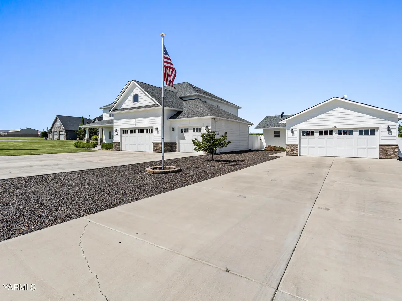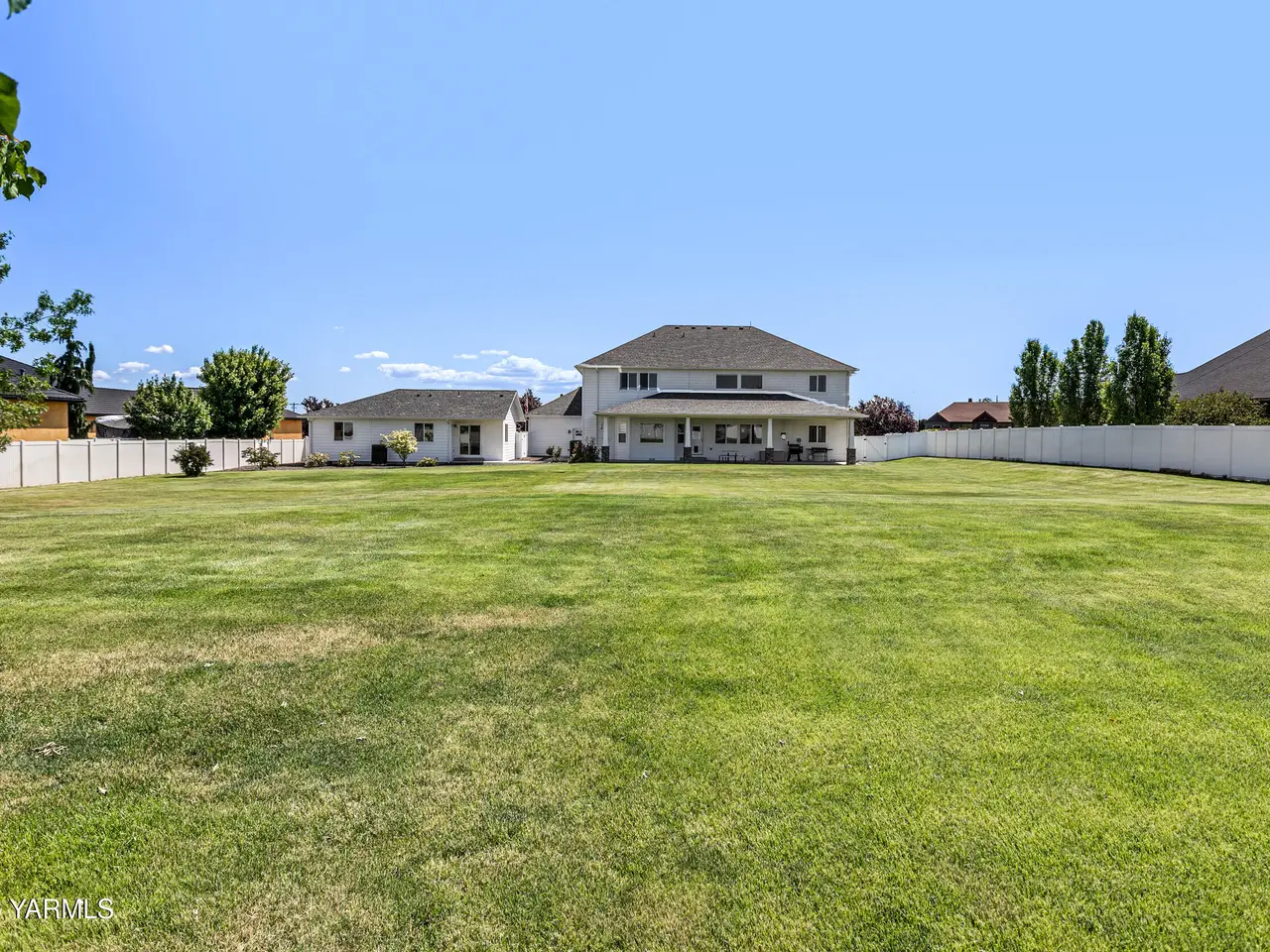 Modern families need flexible, multigenerational living options--and this custom-built home by Smith Construction in West Valley delivers. With 4028 sq. ft., 5 bedrooms, and 3.5 bathrooms, this spacious home is designed for comfort and functionality. A detached 864 sq. ft. ADU offers 1 bedrooms, 1.5 baths, an open kitchen/living area, and its own 2-car garage--perfect for an aging parent, adult child, or guest.The main house features a bright open living area with a gas fireplace and soaring 20-foot vaulted ceilings. Durable LVP flooring runs through common spaces, with carpeted bedrooms and tiled bathrooms. Granite countertops shine throughout. The kitchen boasts a new built-in microwave/oven, cooktop with second oven, center island, desk, and a Butler's Pantry.The oversized primary suite includes space for seating, heated tile floors, a jacuzzi tub, walk-in shower, and skylights. Upstairs, a private en-suite bedroom is ideal for guests. Additional highlights: central vacuum, media system, arched walls, and a 3-car garage with boat space. Enjoy Cascade Mountain views from the covered back porch. The fenced yard includes mature trees, a shed, timed irrigation, and gas BBQ hookup. Community Well and Yakima-Tieton Irrigation.