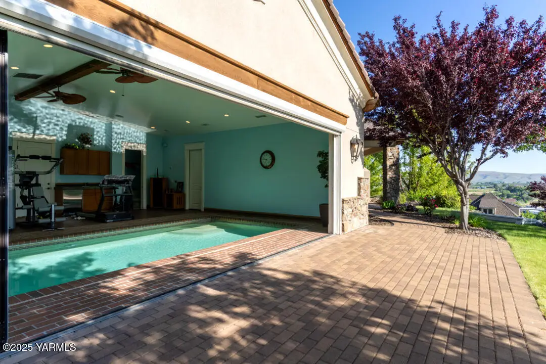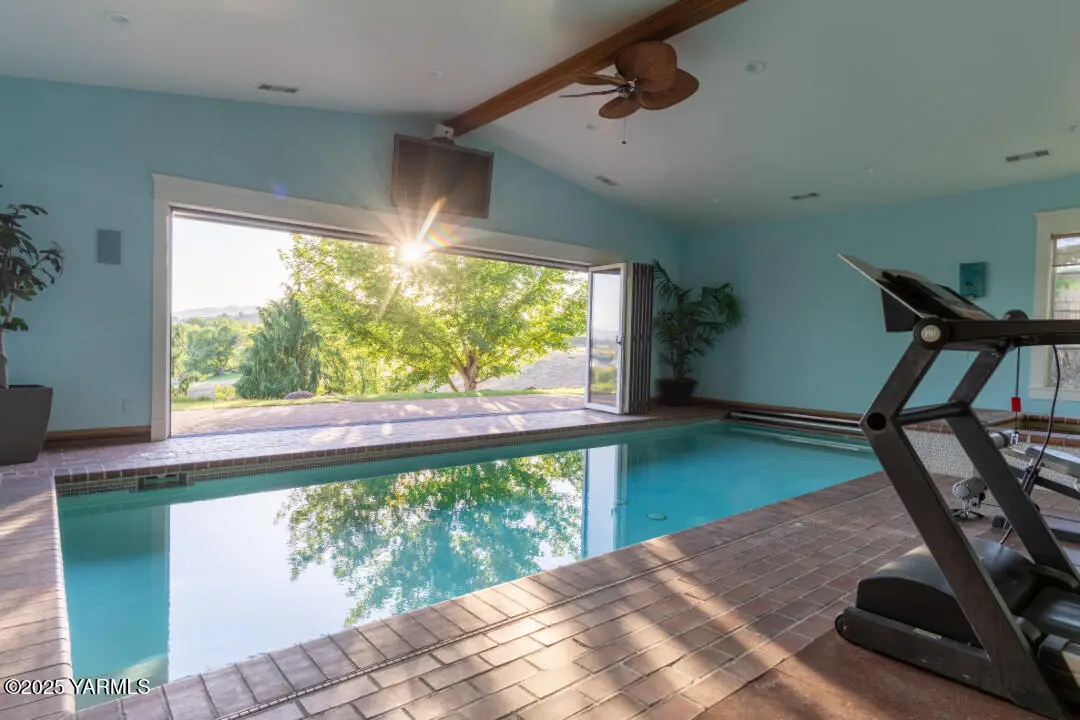 Mediterranean Elegance | Panoramic Views | Year-Round Luxury Perched in one of Yakima's most prestigious neighborhoods, 305 Mountain Shadows is a Mediterranean-inspired retreat that blends timeless design with modern comfort. From the moment you arrive, lush terraced landscaping, a cascading waterfall and stream, and panoramic views of the Cascade Mountains -- including Mount Adams -- create a stunning sense of arrival. One of the home's crown jewels is the year-round indoor pool and spa, set in a private pool room with a private gym and folding glass doors that open to an expansive terrace. Relax to the sound of the waterfall and soak in breathtaking views, or gather around the outdoor fireplace and gas grill for unforgettable evenings under the stars. Step inside the foyer, and be greeted by soaring tongue-and-groove wood ceilings, rich tile floors, and abundant natural light define the elegant interior. The chef's kitchen features a Viking range, Sub-Zero refrigerator, custom cabinetry, and a large island, flowing into a warm family room with built-ins and an adjacent dining area -- ideal for entertaining. The living room offers a tiled gas fireplace and opens to a full-length patio, merging indoor and outdoor living. The luxury primary suite is a true retreat -- offering a serene, spa-like experience with a double-headed steam shower, beautiful tile finishes, and a spacious walk-in closet. A second en-suite bedroom ensures comfort for guests, while the home office with hardwood floors and built-in cabinets creates an ideal workspace. A third bedroom (and 4th bath) adds flexibility -- perfect for a second office or guest room. For added comfort and confidence, the home features a recently upgraded HVAC system ensuring year-round comfort and efficiency. Just minutes from wineries, golf, and recreation, this exceptional property is a sanctuary of refined architecture, resort-style amenities, and natural beauty in the heart of Central Washington.