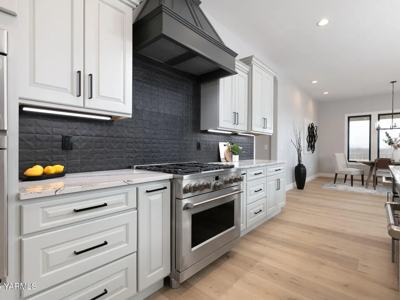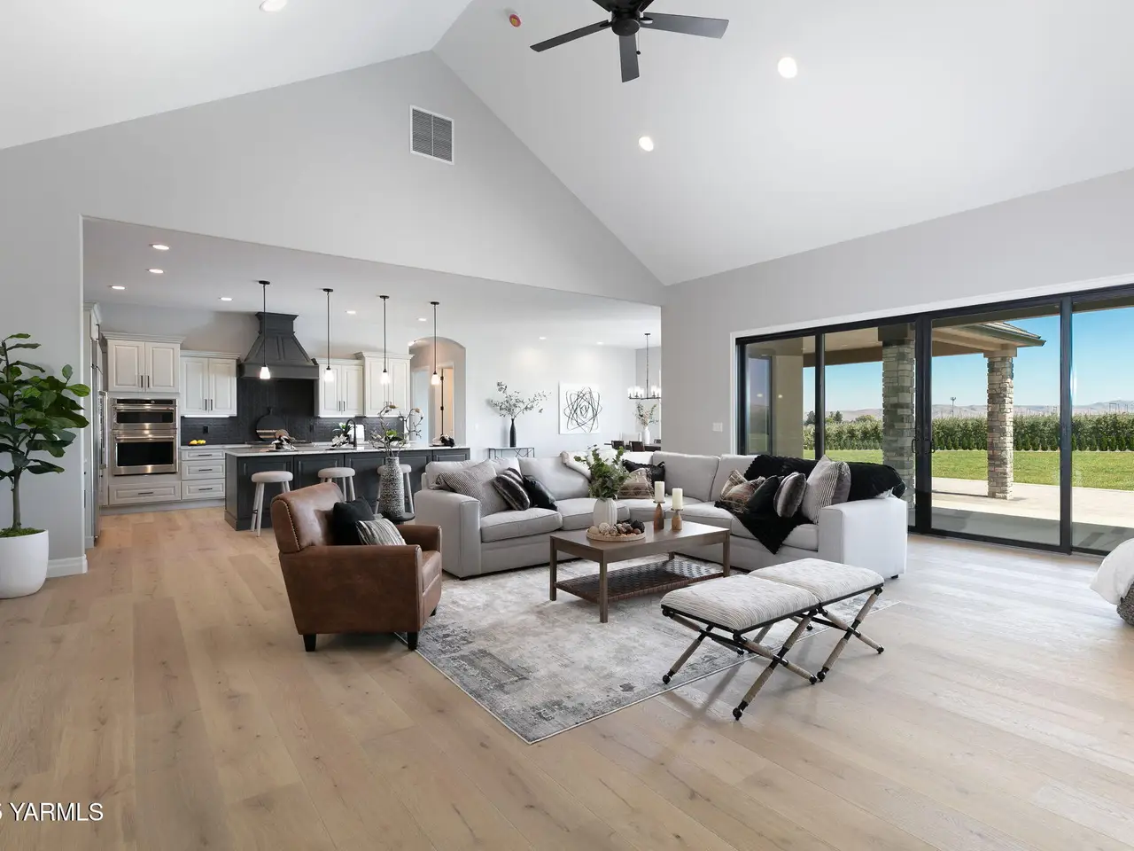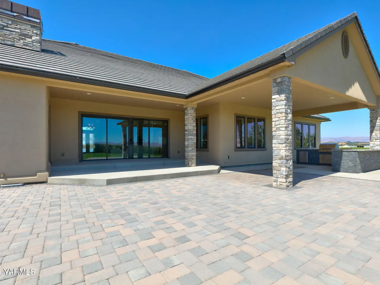 Discover modern luxury and elegance in this meticulously crafted 4,200-plus square foot home, situated on 3.18 acres within an exclusive West Valley gated community. Thoughtfully designed for both entertaining and everyday comfort, this home welcomes you with a vaulted foyer and an expansive open-concept living area anchored by a stunning floor-to-ceiling gas fireplace. The gourmet kitchen is a chef's dream, featuring granite countertops, top-of-the-line stainless appliances, double ovens, and double dishwashers, all complemented by a butler's pantry, perfect for meal prep and storage. A formal dining area and dedicated home office/den offer additional functional and elegant spaces. The luxurious primary suite is a serene retreat with a spa-inspired en-suite bathroom, including a custom tiled walk-in shower, soaking tub, dual vanities, and a generous walk-in closet. A junior suite with a private en-suite bath ensures comfort for guests or multi-generational living. Outside, the possibilities are endless with expansive grounds, a covered back patio, and a fully equipped outdoor kitchen. Energy-efficient solar panels and a three-car garage with an EV charging station add to the modern conveniences. With a tile roof and stucco siding for low-maintenance living, this property is both elegant and practical. Located in a secure gated community, this one-of-a-kind home offers unparalleled luxury, comfort, and the space to bring your lifestyle dreams to life.