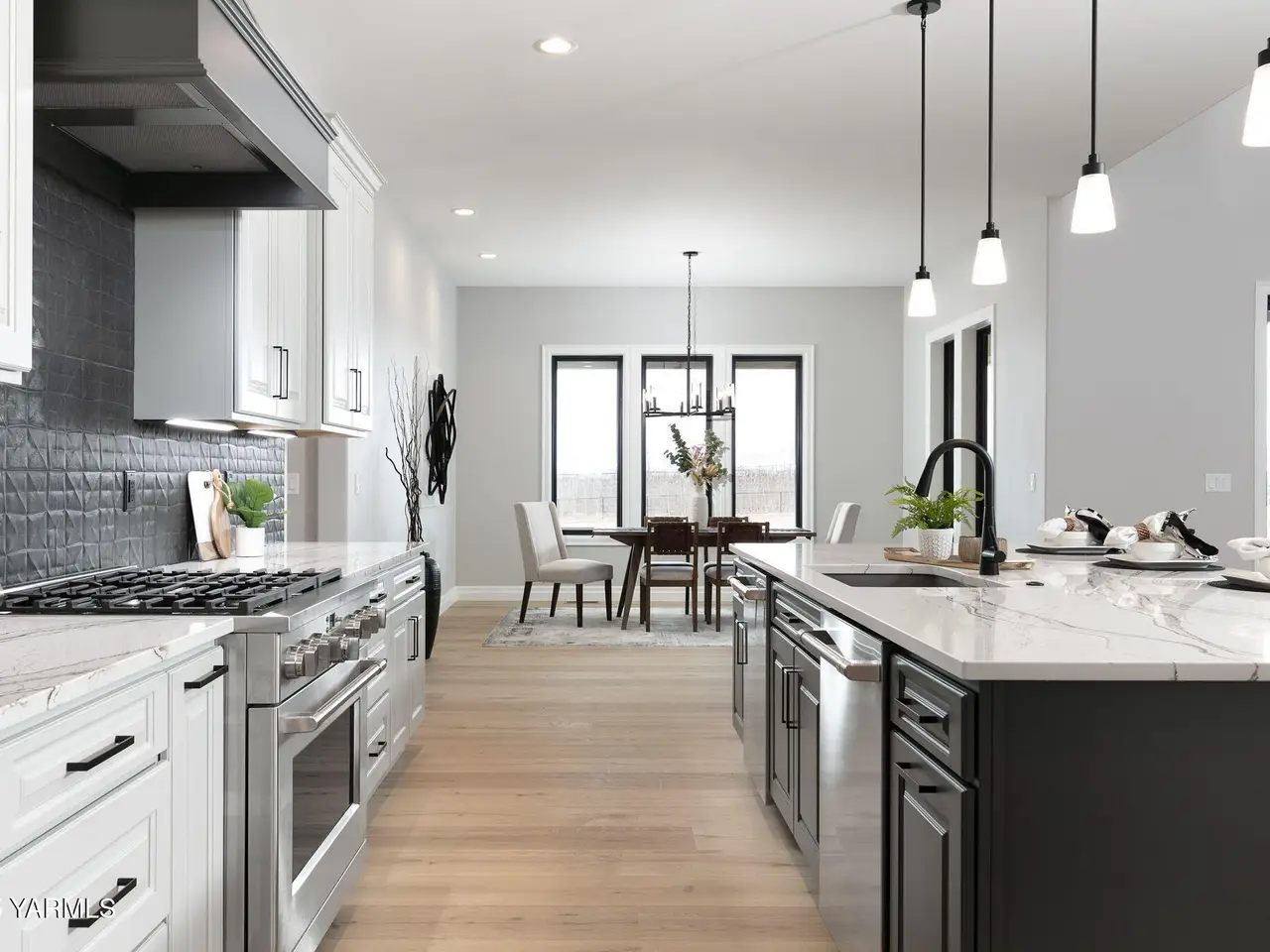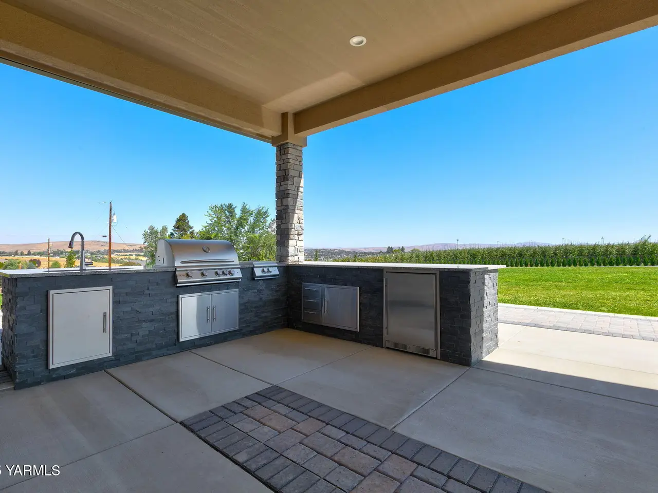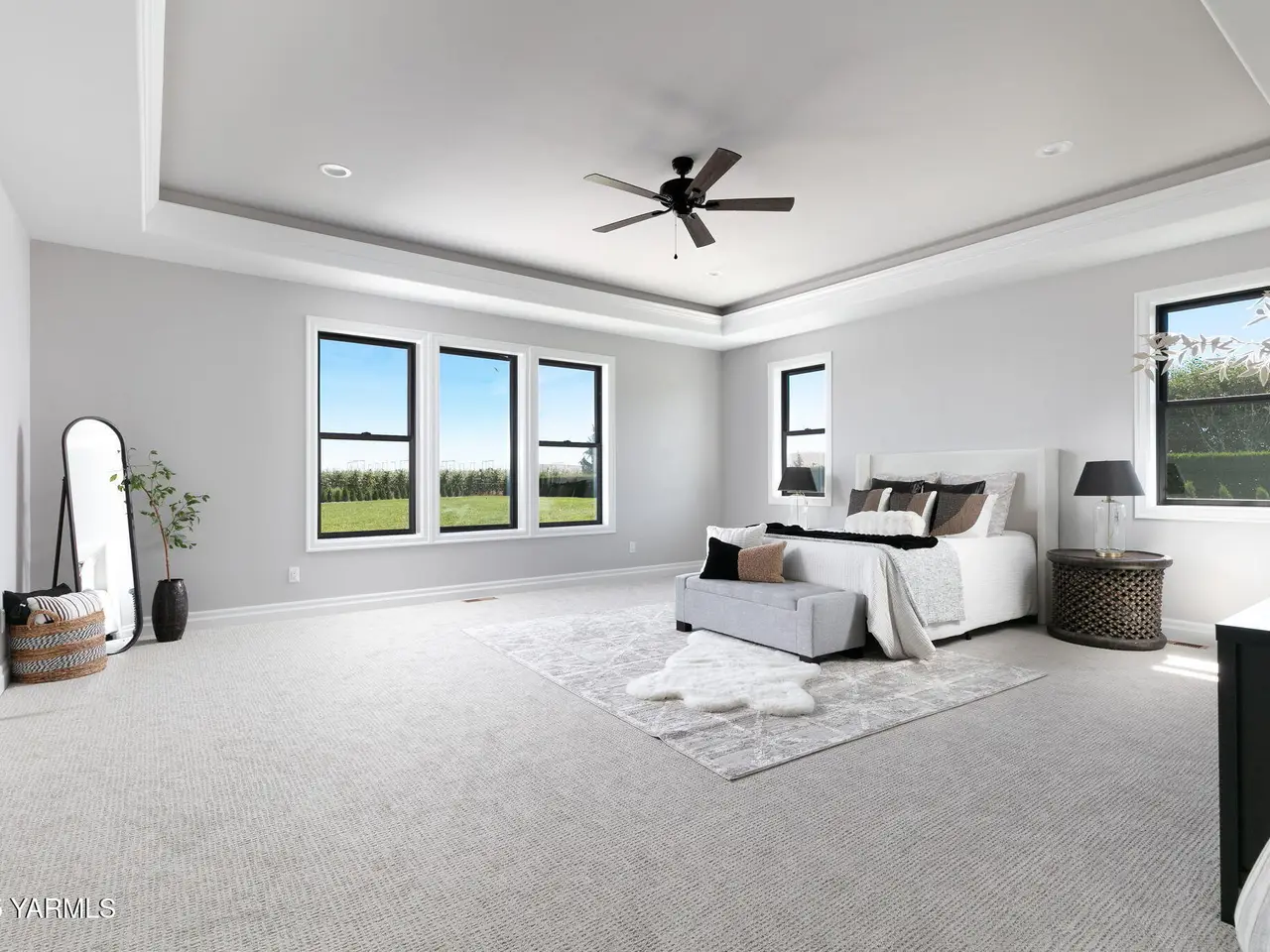 Discover modern luxury and elegance in this meticulously crafted 4,200-plus square foot home, situated on 3.18 acres within an exclusive West Valley gated community. Thoughtfully designed for both entertaining and everyday comfort, this home welcomes you with a vaulted foyer and an expansive open-concept living area anchored by a stunning floor-to-ceiling gas fireplace. The gourmet kitchen is a chef's dream, featuring granite countertops, top-of-the-line stainless appliances, double ovens, and double dishwashers, all complemented by a butler's pantry, perfect for meal prep and storage. A formal dining area and dedicated home office/den offer additional functional and elegant spaces. The luxurious primary suite is a serene retreat with a spa-inspired en-suite bathroom, including a custom tiled walk-in shower, soaking tub, dual vanities, and a generous walk-in closet. A junior suite with a private en-suite bath ensures comfort for guests or multi-generational living. Outside, the possibilities are endless with expansive grounds, a covered back patio, and a fully equipped outdoor kitchen. Energy-efficient solar panels and a three-car garage with an EV charging station add to the modern conveniences. With a tile roof and stucco siding for low-maintenance living, this property is both elegant and practical. Located in a secure gated community, this one-of-a-kind home offers unparalleled luxury, comfort, and the space to bring your lifestyle dreams to life.