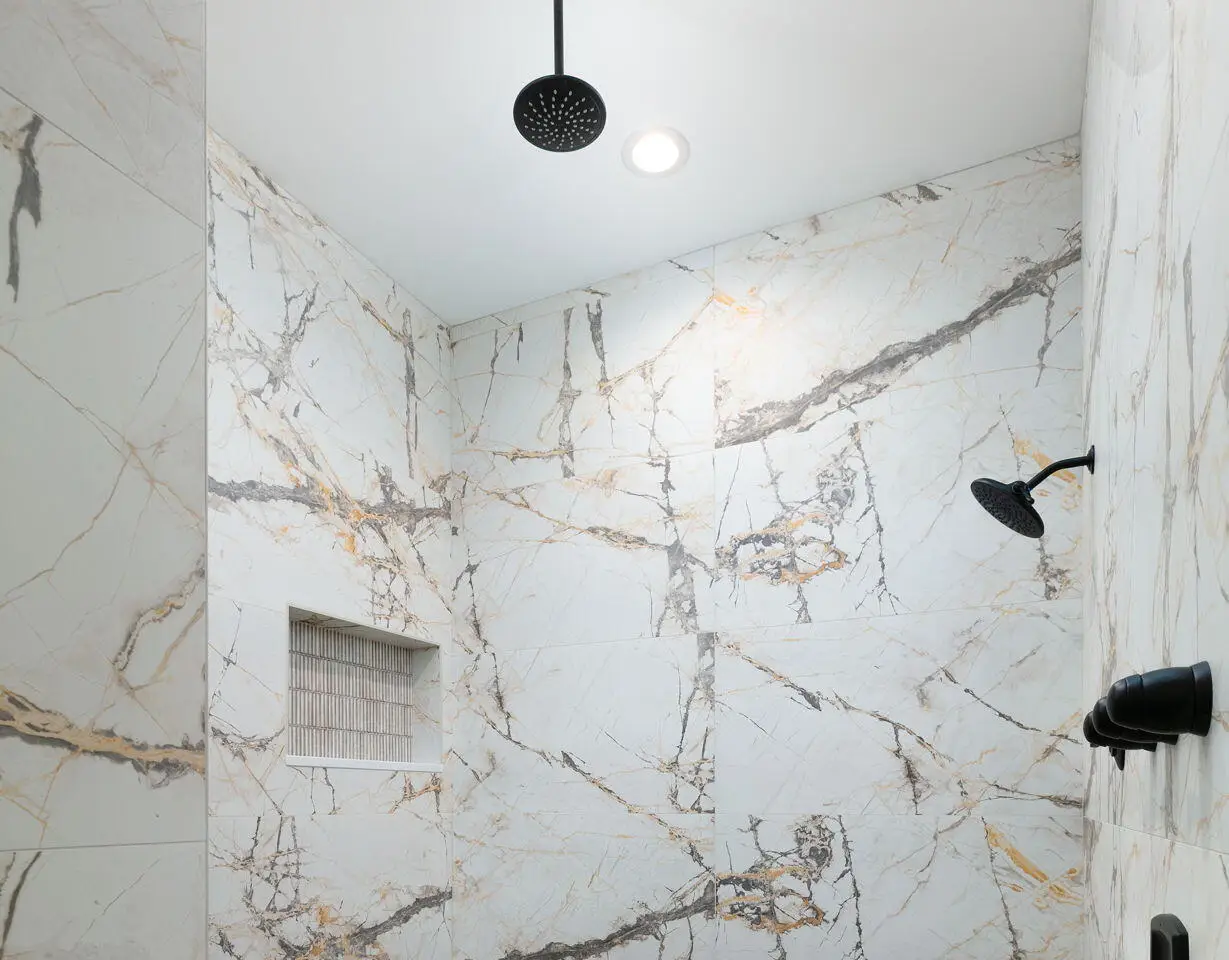 Spa-inspired en-suite bathroom with custom tiled walk-in shower