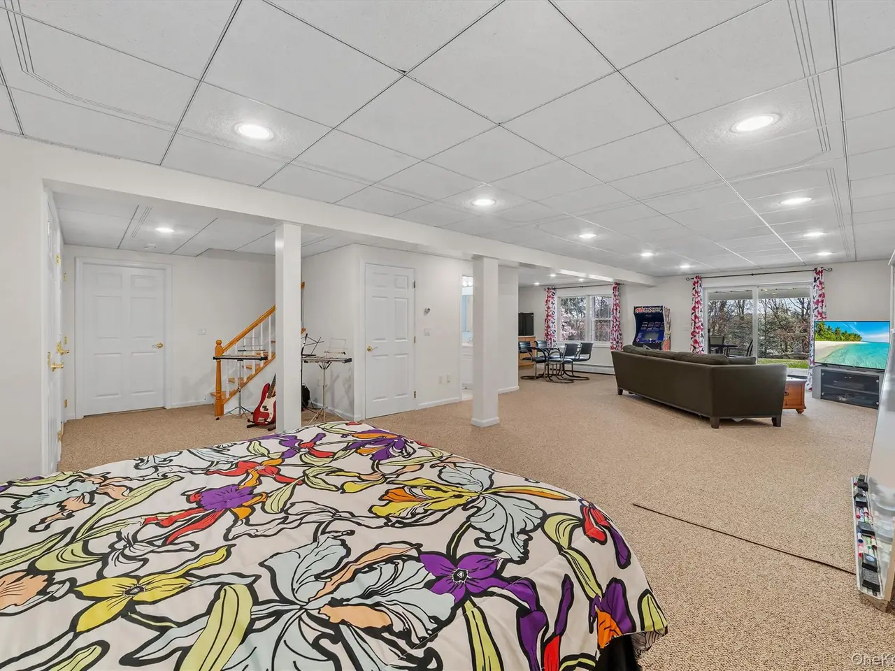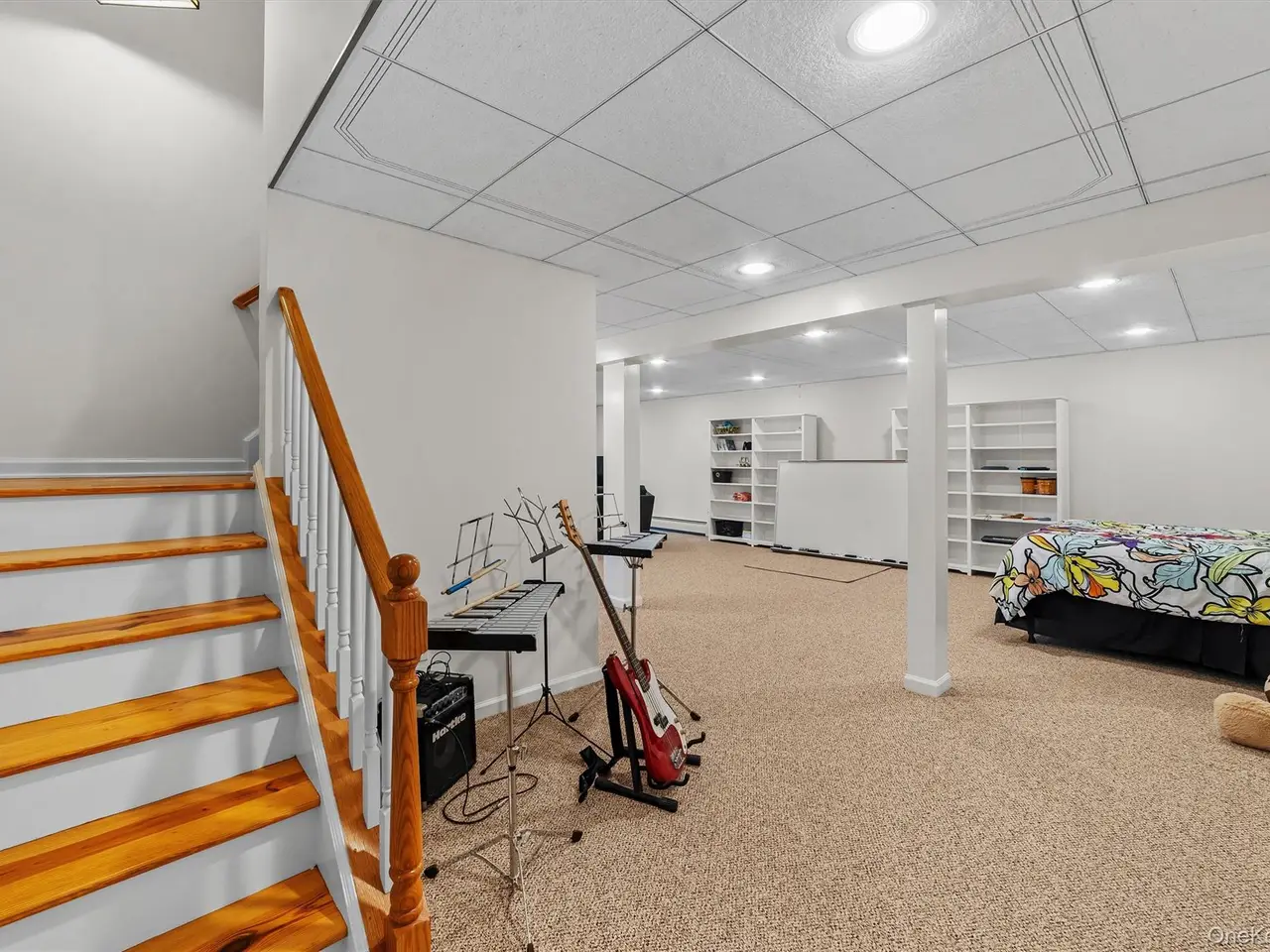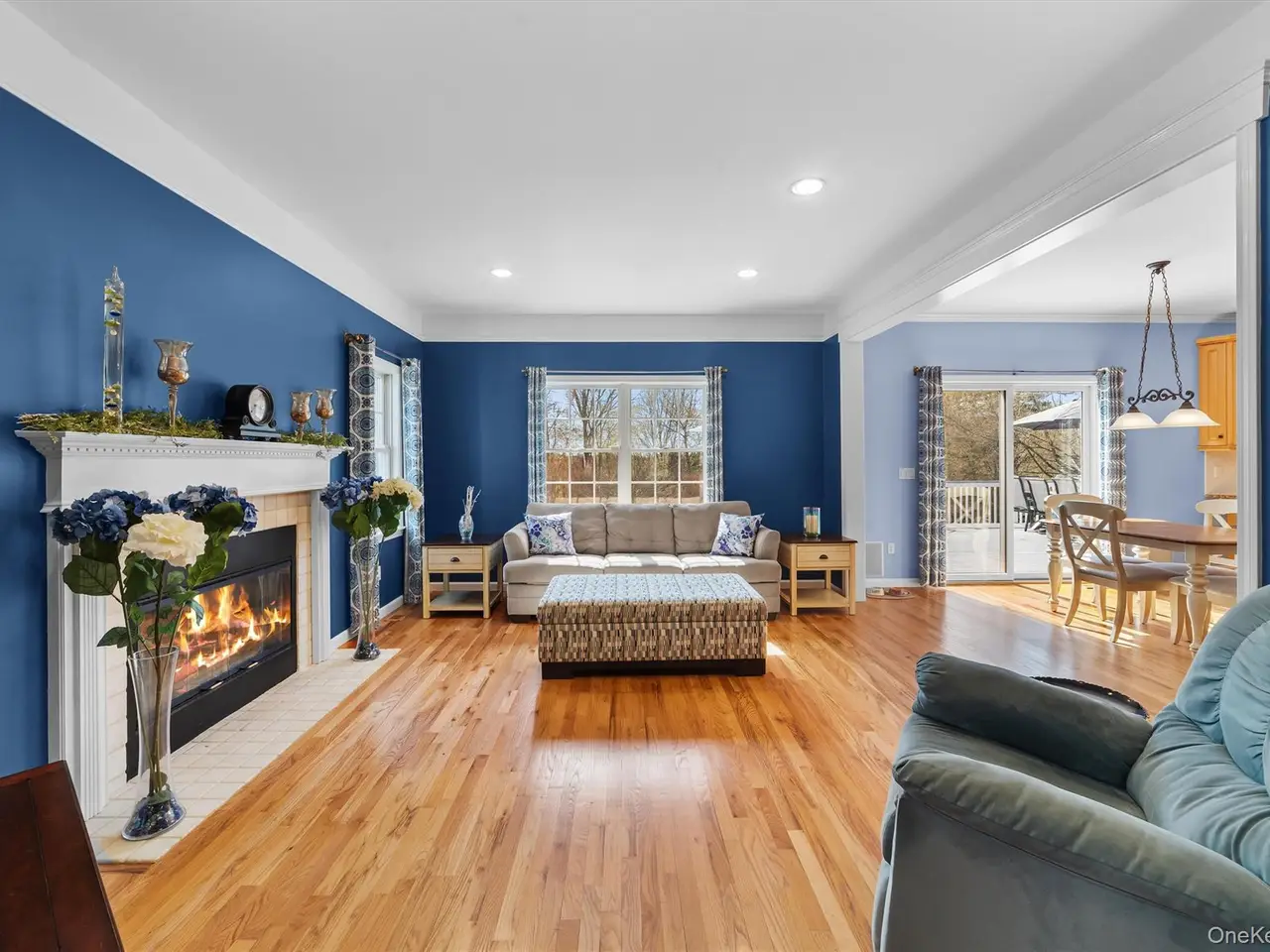 Welcome to Bari Estates. This beautifully maintained home shows pride of ownership in this impressive front porch colonial style. This home shows like a five bedroom and features a light and airy open two story entry, oversized dining room flows to a sundrenched eat in kitchen with butlers' server which opens to the family room with fireplace and sliding glass doors out to an oversized 25' x 20' deck overlooking a private and fenced yard with an imported water fountain from Europe. Enjoy and relax on your oversized deck or your covered blue stone patio and watch the most amazing and breathtaking sunsets as you finish the day. The primary bedroom offers tray ceilings, a walk-in closet and on-suite bathroom with a deep soaking tub and separate glass surround shower, three generous sized bedrooms and a light and airy bonus room at the end of the hall, perfect for a media room, game room, home office or for the extended family. The finished lower level offers more room to enjoy as a rec room, game/media room or guest room with sliders out to an oversized blue stone patio, plenty of storage in the lower level too and enjoy your own wine cellar. All of this and conveniently set and close to town shopping, bike trail, walking trails, major shopping, restaurants, Yorktown schools, parks, parkway and minutes to the metro north train station.