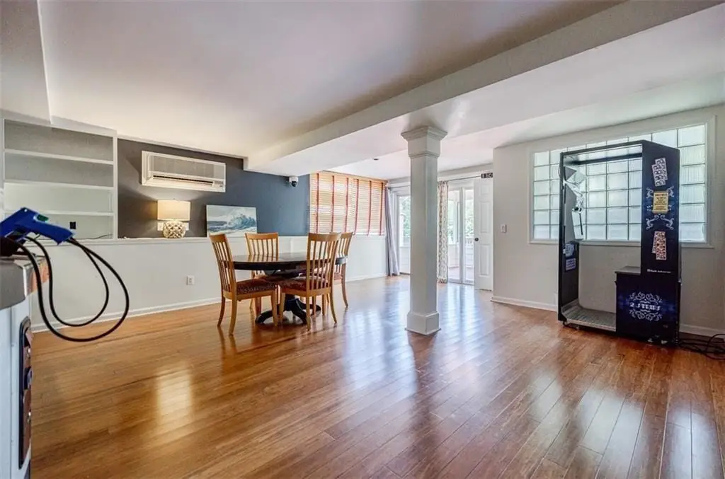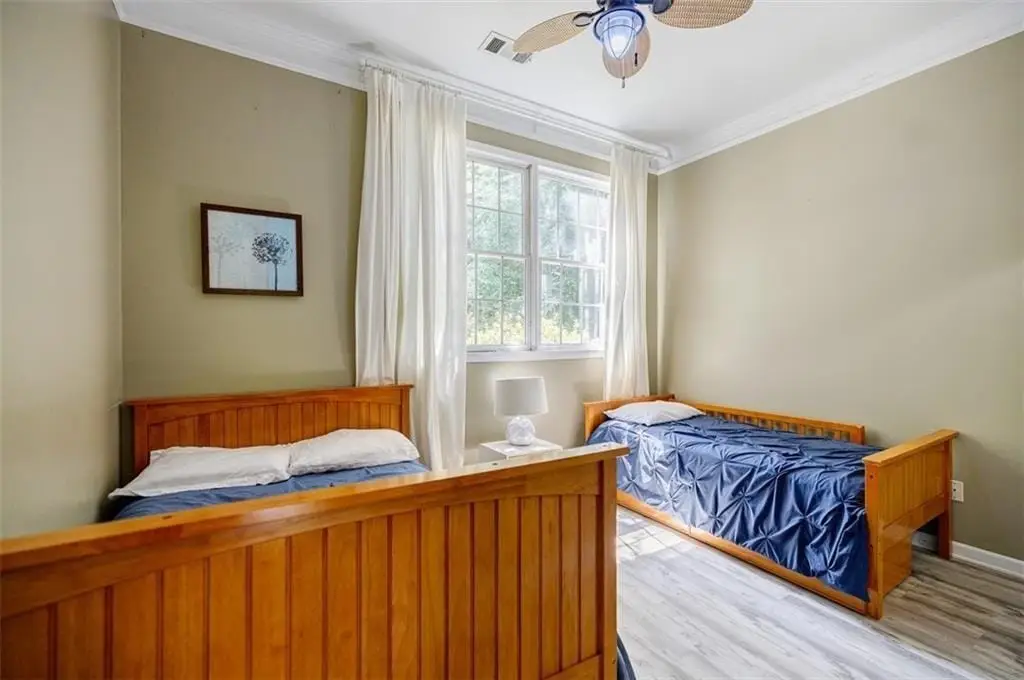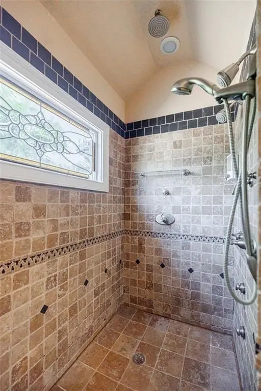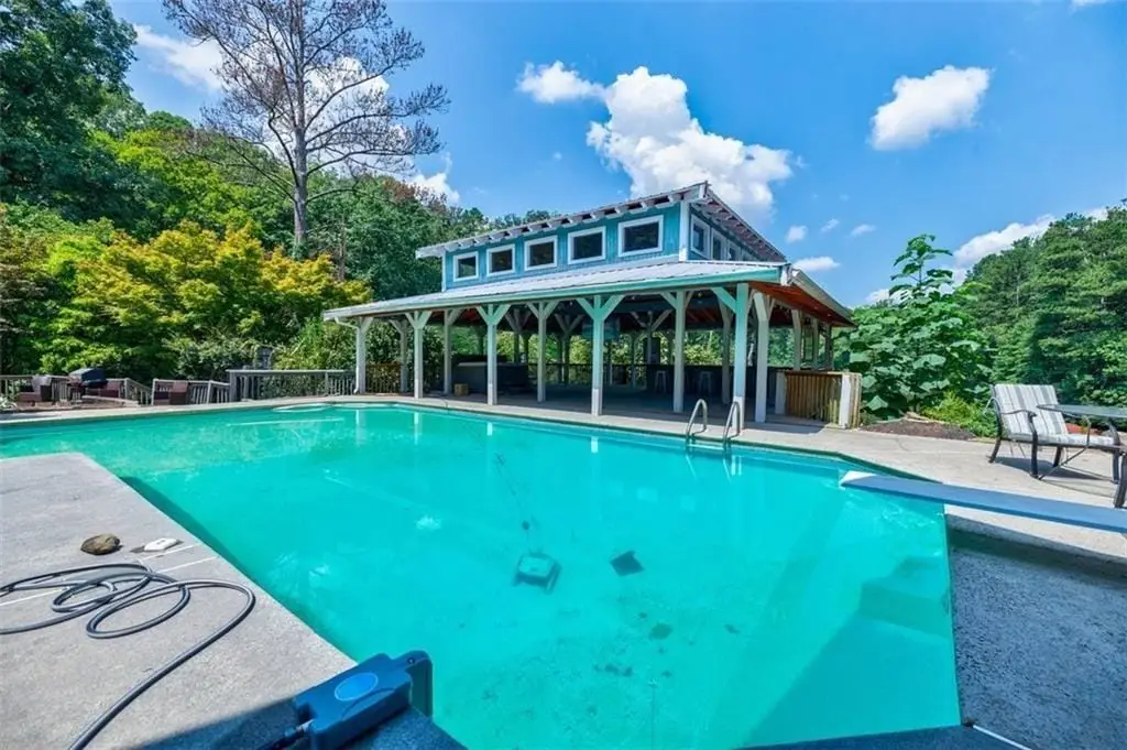This beautiful home on a cul-de-sac with a guest house on 3.5 private wooded acres, has an in-ground swimming pool with waterfall, overlooking a private shared lake with boat dock. You can lounge on the many decks overlooking the lake, relax in the Hot Tub in the covered pavilion, walk through the landscaped grounds or enjoy time around the outdoor fire area. Outdoor kitchen joins half bath and changing room. The main is house has five bedrooms and three full baths and two half baths. Main house has hardwood floors. The updated kitchen opens to a large den and living room with views of the lake. The finished basement includes living room, game room, 1 bedroom, full bath and flex room. Upstairs is the master bedroom with joining office/den plus two bedrooms, one with coffee bar., and full bath.The guest house has 3 bedrooms 2 full baths and separate parking. Great for guest or rental income. Two storage units,. Lots of space for outdoor garden! Conveniently located near Lakepoint Sports Complex for the active athlete.