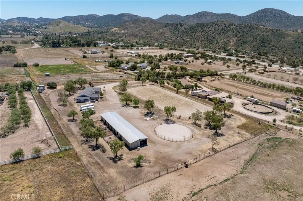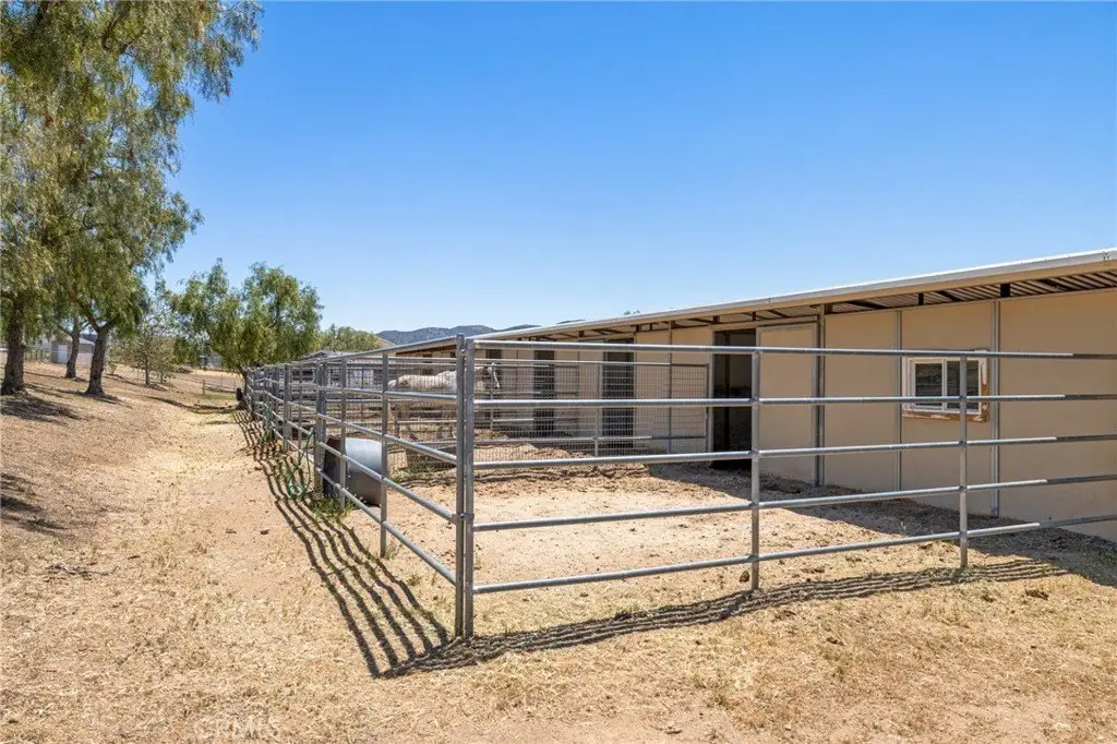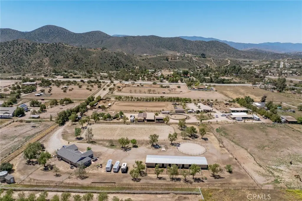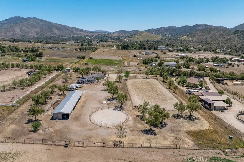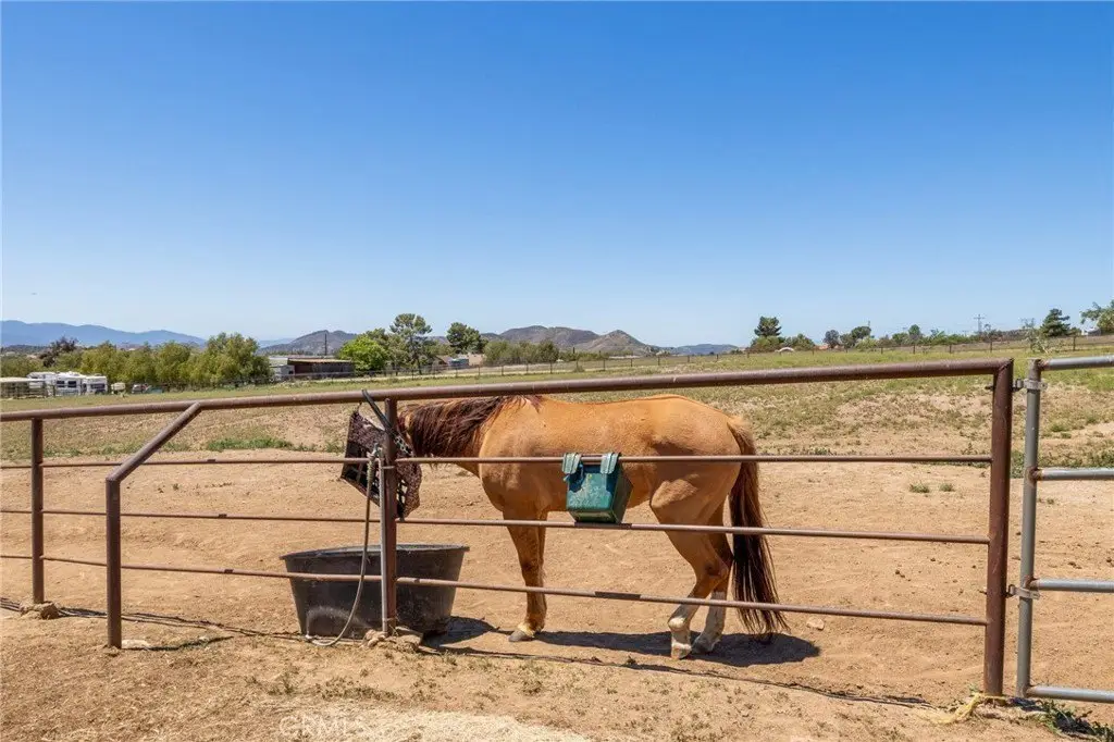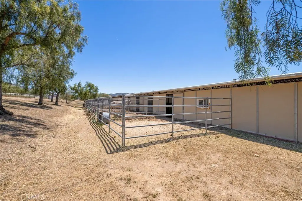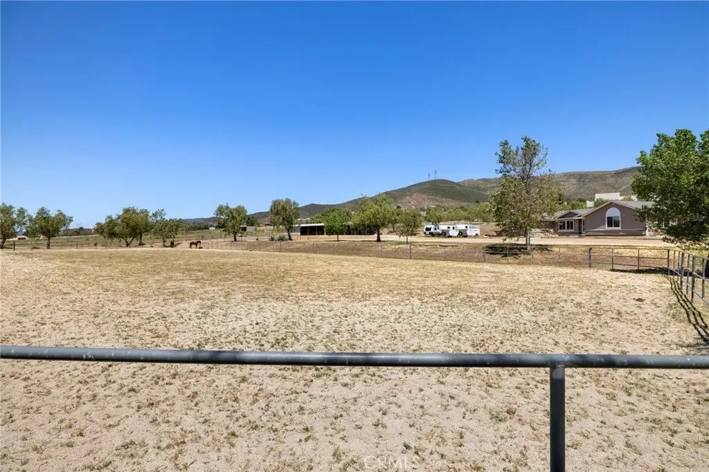 Bring your livestock and look no further, this Agua Dulce ranch has it all. Two primary suites! Incredible home with amazing sunset views. Four bedrooms and four baths. Five-acre horse ranch, perfect for the equestrian lover. Newer roof, air conditioner, exterior and interior painting. Laminate flooring throughout, upgraded appliances and recessed lighting. New water heater and automatic backup Generac propane generator. A two-car attached garage converted to a second primary residence with private full bath, a mini split HVAC, lots of closet space and a separate exterior entrance. The open and bright floor plan features a large living room and dining room open from the kitchen. Ther is a second spacious primary suite with a private full bathroom and a large walk-in closet. The third bedroom has a sliding glass door which leads to a private sitting patio. The fourth bedroom can be used as an office or a gym. The open kitchen leads to an enclosed patio with an exterior access and includes a half bathroom and mini split HVAC. Upgrades include four perimeter Lorax cameras, water purifier system, ring doorbell at the front gate, 220 Volt car charger, wired WIFI boosters, window blinds and door awnings, locked mailbox, solar lights over shed doorway, package drop off box in front of gate, above ring doorbell camera, and over address sign on the street. Multiple sensor lights around outside perimeter of the house. The back of the house is fenced with two gates perfect for a dog yard. There is an extra-large Tuff shed on a concrete slab with shelving and loft. There is also a partially completed outdoor kitchen. Private location has an upgraded electric gated entrance and is fully fenced and cross fenced with steel pipe fencing with no climb wire and forty mature trees. Horse facilities include a FCP six stall shed row barn (could be eight) with hay shed, tack room and wired lined corrals. There is a large (100 x 300) sand arena with footing and paneling and a sixty-foot round pen with sand and DG base. There is also a 2.5-acre cross fenced pasture with large shader. With panoramic sunset views, you just found your slice of heaven. Come for a visit. Stay for a lifetime. Welcome home!