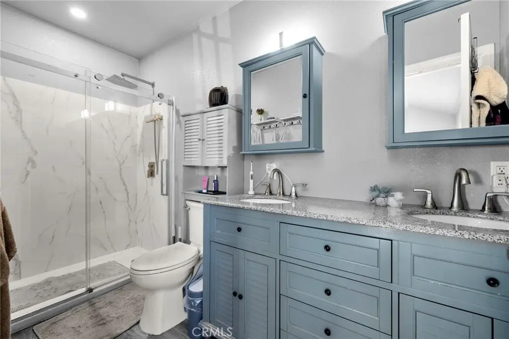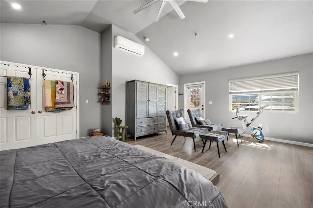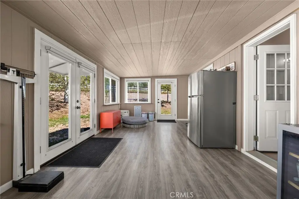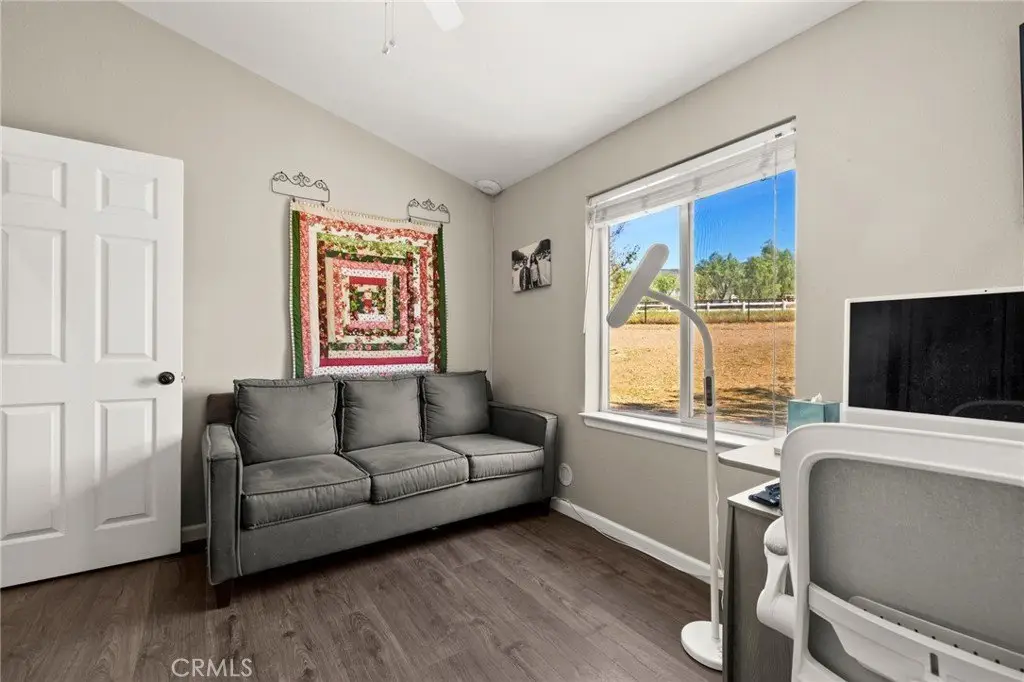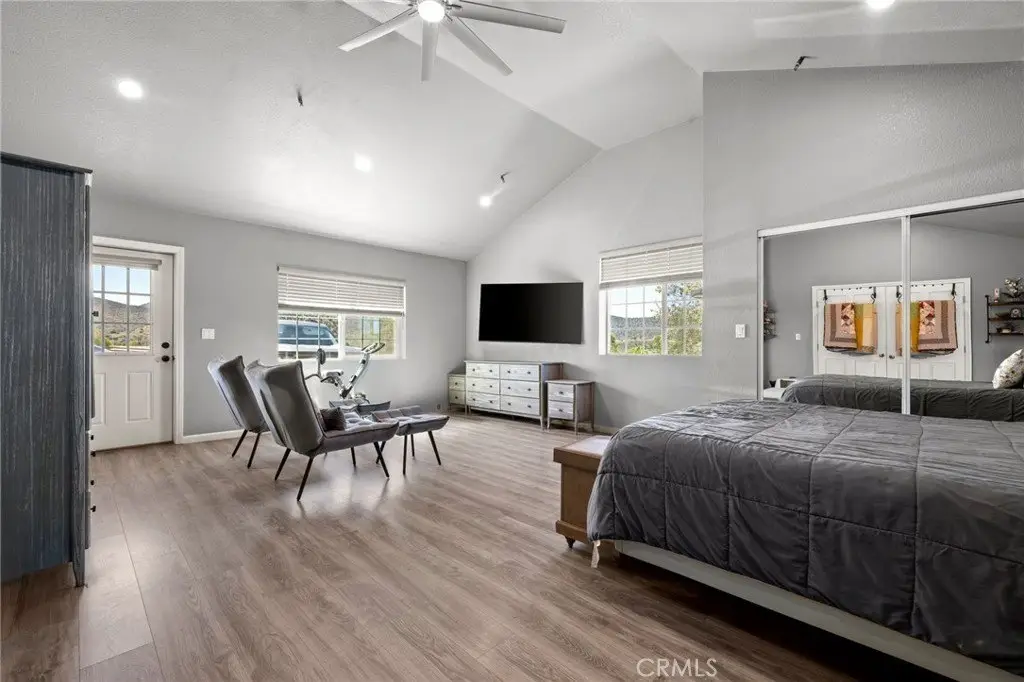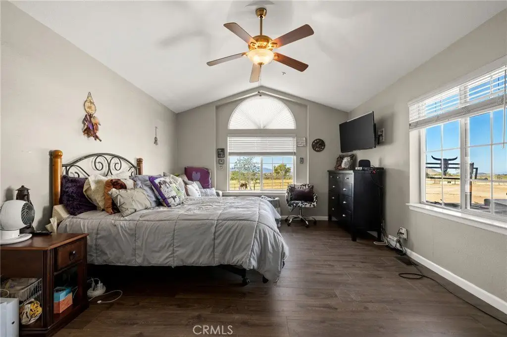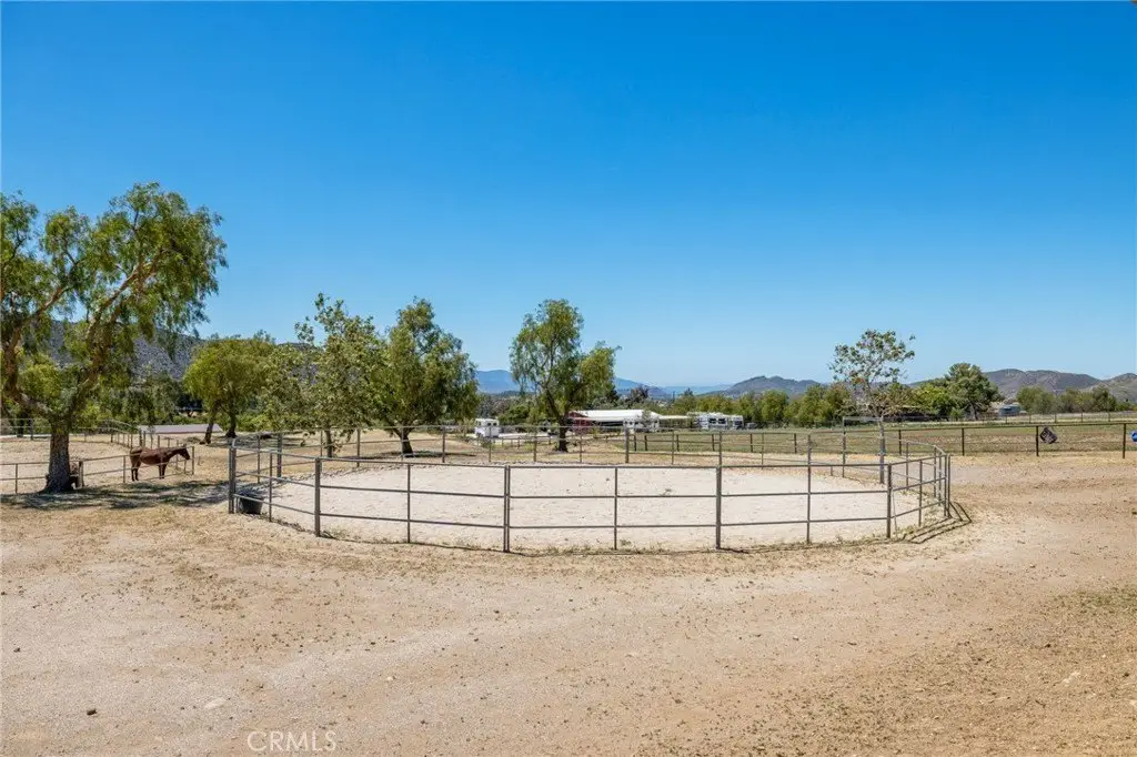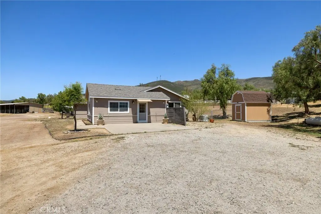 Bring your livestock and look no further, this Agua Dulce ranch has it all. Two primary suites! Incredible home with amazing sunset views. Four bedrooms and four baths. Five-acre horse ranch, perfect for the equestrian lover. Newer roof, air conditioner, exterior and interior painting. Laminate flooring throughout, upgraded appliances and recessed lighting. New water heater and automatic backup Generac propane generator. A two-car attached garage converted to a second primary residence with private full bath, a mini split HVAC, lots of closet space and a separate exterior entrance. The open and bright floor plan features a large living room and dining room open from the kitchen. Ther is a second spacious primary suite with a private full bathroom and a large walk-in closet. The third bedroom has a sliding glass door which leads to a private sitting patio. The fourth bedroom can be used as an office or a gym. The open kitchen leads to an enclosed patio with an exterior access and includes a half bathroom and mini split HVAC. Upgrades include four perimeter Lorax cameras, water purifier system, ring doorbell at the front gate, 220 Volt car charger, wired WIFI boosters, window blinds and door awnings, locked mailbox, solar lights over shed doorway, package drop off box in front of gate, above ring doorbell camera, and over address sign on the street. Multiple sensor lights around outside perimeter of the house. The back of the house is fenced with two gates perfect for a dog yard. There is an extra-large Tuff shed on a concrete slab with shelving and loft. There is also a partially completed outdoor kitchen. Private location has an upgraded electric gated entrance and is fully fenced and cross fenced with steel pipe fencing with no climb wire and forty mature trees. Horse facilities include a FCP six stall shed row barn (could be eight) with hay shed, tack room and wired lined corrals. There is a large (100 x 300) sand arena with footing and paneling and a sixty-foot round pen with sand and DG base. There is also a 2.5-acre cross fenced pasture with large shader. With panoramic sunset views, you just found your slice of heaven. Come for a visit. Stay for a lifetime. Welcome home!