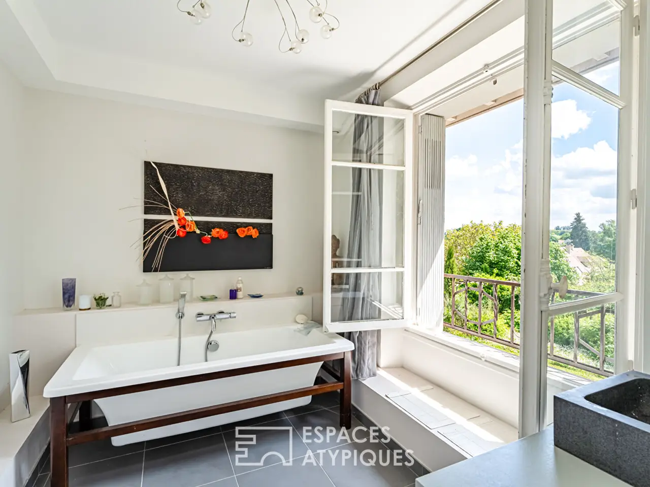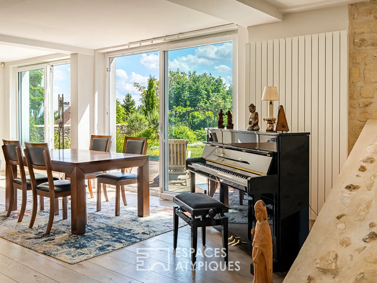 Spacious, flexible and intimate family property in the heart of a privileged environment - Aigremont Just 2 km from Chambourcy and 7 km from Saint-Germain-en-Laye, a short walk from the forest in the popular and multicultural village of Aigremont, this former farmhouse renovated by an architect offers 304 sqm of living space and its landscaped garden, not overlooked, enclosed by millstone walls. Behind the automatic gate, an elegant paved courtyard introduces this property to its flowery and carefully planted exteriors, already offering an enchanting living environment imbued with conviviality and serenity.From the entrance, the generous volumes and fluid circulation seduce. To the left, a large single-storey bedroom with private shower room, toilet and independent access to the garden for absolute comfort.To the right, the welcoming kitchen, equipped with a French window, naturally extends the right wing of the house into a majestic living room where the dining room and living room flow harmoniously. Large bay windows let in beautiful light, offering a clear view of the garden; the open fireplace is a promise of sweet moments to share.A discreet door leads to a second room of generous dimensions, ready to accommodate as needed: reception room, home cinema, or games room.Upstairs, the master suite has its own bathroom and a charming boudoir. Three other bedrooms, one of which is particularly spacious, complete this level.At the far end, a spectacular room, magnified by its high ceilings, invites you to imagine a games area, a lounge for teenagers, or a characterful office.A top floor leads to a large attic bedroom, full of charm with its exposed beams, its bathroom and its private toilet.Designed for quality of life and modularity, this house also benefits from an outbuilding, a double stone cellar, and a lean-to allowing parking for three vehicles.Offering a perfect balance between the art of living in the countryside and immediate proximity to the amenities of Chambourcy, Saint-Germain-en-Laye and the main roads to Paris, this property is a rare invitation to live differently.Transport:Active vehicles: the town is served by the A13 and A14 motorways leading quickly to La Defense and Paris. Bus: in Aigremont the TaD 78 serves Chambourcy in particular to join the lines R4, 8 and 70 for Saint-Germain-en-Laye. Trains & RER: The Saint-Germain-en-Laye station (RER A) is 6 KM away, that of Poissy (RER A, and SNCF to Paris Saint-Lazare and future RER E) 3 km away. Plaisir train station is 13 km away, serving Paris Montparnasse train station. For the more athletic, cycle paths lead to Chambourcy and Saint Germain en Laye.Schooling:École de la Foret in Aigremont College Andre DERAIN in Chambourcy Aigremont depends on the high schools of Saint-Germain-en-Laye: Lycee International, Lycee Jeanne d'Albret, Lycee Jean Batiste Poquelin, Lycee Leonard de Vinci, Lycee Agricole et HorticoleENERGY CLASS: D / CLIMATE CLASS: DEstimated average amount of annual energy expenditure for standard use established from average energy prices indexed on January 1, 2021 (subscription included): between EUR3,440 and EUR4,700Information on the risks to which this property is exposed is available on the Georisques website: https://www.georisques.gouv.fr Contact:REF. 10888Additional information* 10 rooms* 6 bedrooms* 1 bathroom* 4 shower rooms* 2 floors in the building* Outdoor space : 794 SQM* Parking : 3 parking spaces* Property tax : 4 398 €Energy Performance CertificatePrimary energy consumptiond : 187 kWh/m2.yearHigh performance housing*A*B*C*187kWh/m2.year40*kg CO2/m2.yearD*E*F*