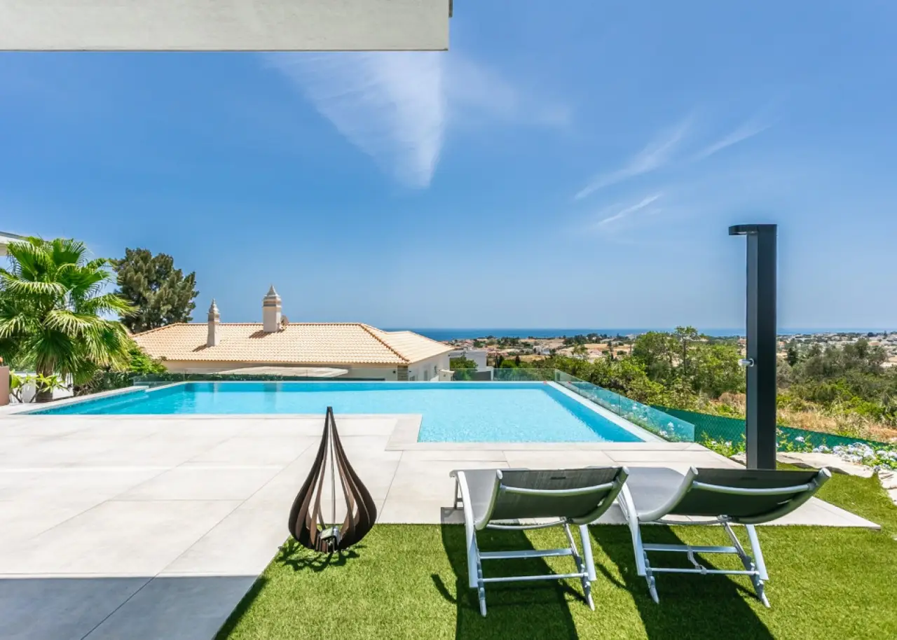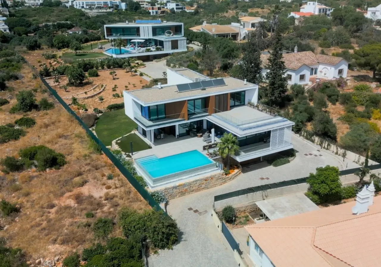 We present this elegant contemporary villa, with stunning sea views, located in the prestigious Cerro da Águia - one of Albufeira's most prized residential areas, in the heart of the Algarve. Recently built and spread over three floors, this property stands out for the functionality of its spaces, the quality of its finishes and a modern decor designed to offer comfort, privacy and sophistication. On the ground floor is the social area, with direct access to the terrace and pool. The large open-plan living room integrates living and dining areas, in perfect harmony with the fully equipped kitchen . There is also a versatile bedroom on this floor. The second floor is dedicated to the private area, with three suites, including the Master Suite with an exclusive balcony and panoramic views of the sea and Albufeira Marina. In the basement, there is a closed garage with capacity for three cars, a generous storage room, a technical area and an additional bedroom with a private bathroom. The outdoor space offers a well-kept garden with areas designed for leisure and socializing, including an outdoor dining area with barbecue, as well as a magnificent swimming pool with full sea views. There is also outdoor parking. This property is a unique opportunity for those looking for a house of excellence, with a modern design, in a privileged location and just a few minutes from the beaches, services and Albufeira Marina. CHARACTERISTICS: Plot Area: 1 193 m2 | 12 842 sq ft Useful area: 600 m2 | 6 462 sq ft Bedrooms: 5 Bathrooms: 6 Energy efficiency: A FEATURES: Contemporary villa 5 bedrooms Sea views Albufeira Marina 3 floors Garden Swimming pool Basement