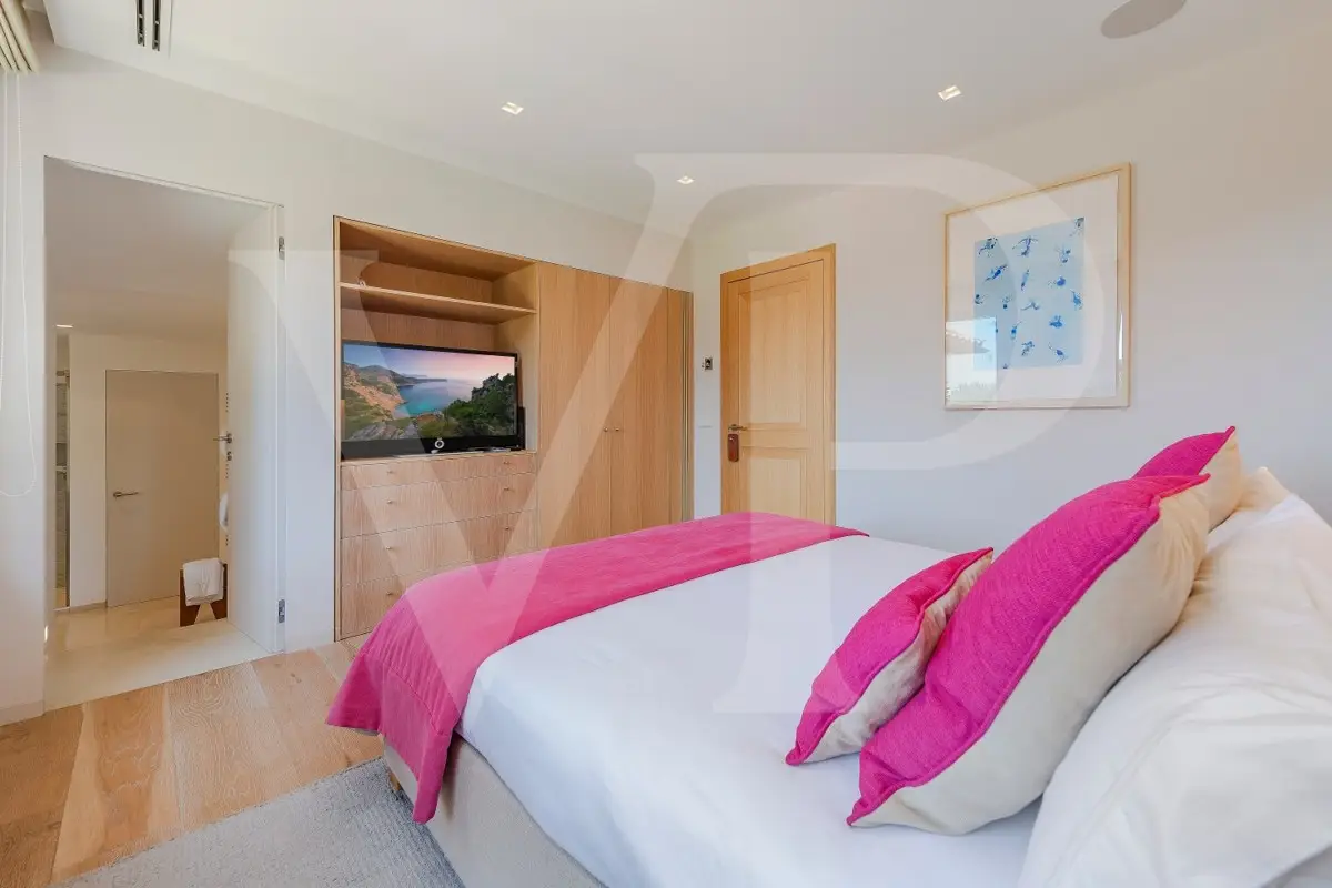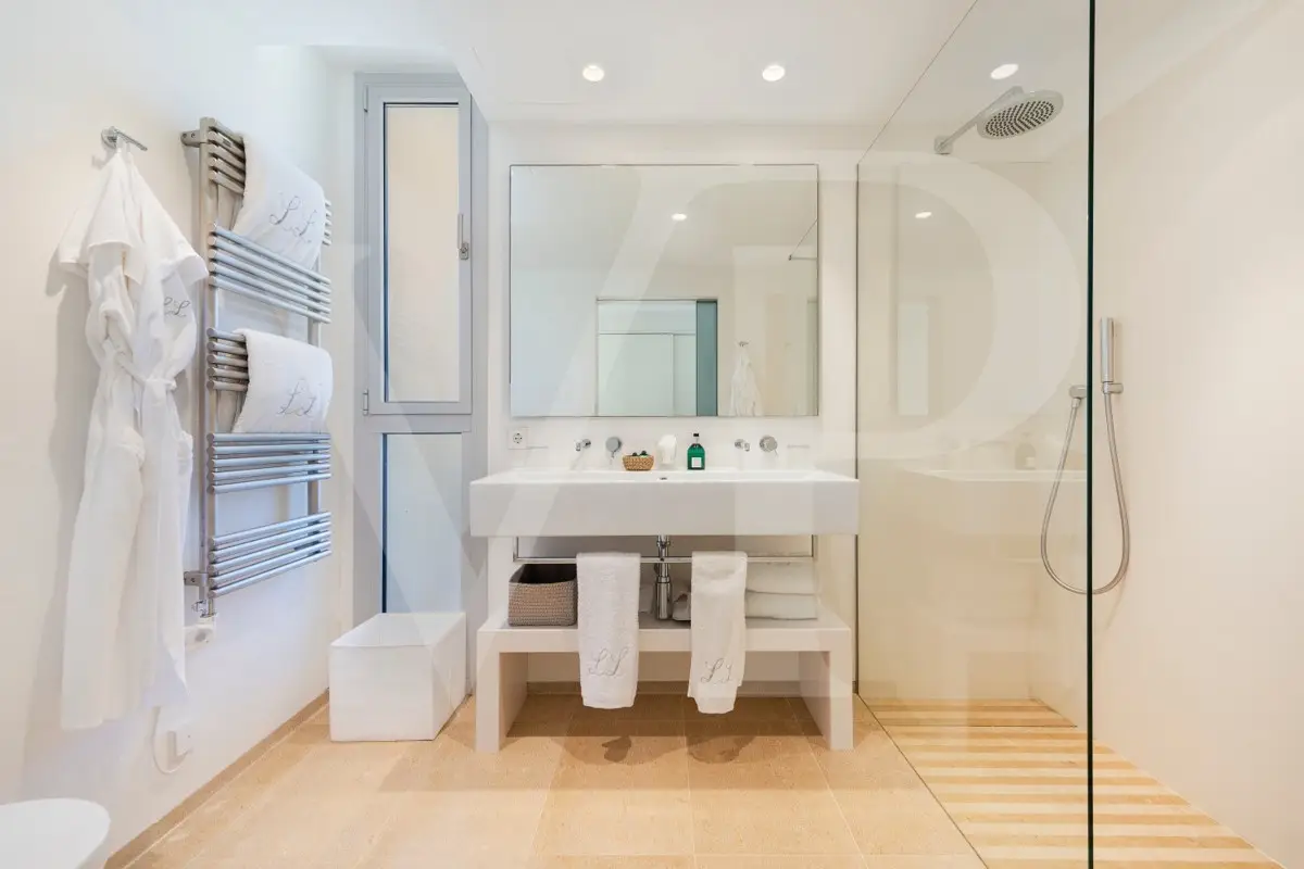 Exceptional historic luxury property from 1920 in the north of the island of Mallorca on the Bay of Pollensa. The villa is located in a quiet residential area between the bays of Alcudia and Pollensa, just a few meters from two beautiful beaches with white sand and crystal clear waters and offers beautiful views over the Bay of Pollensa. The property consists of the elegantly furnished main house with a luxurious modern American kitchen, dining room and large living room. The villa is equipped with all amenities as are the various outbuildings which include the guest house, pool house and staff house. The staff house has a professional kitchen and three bedrooms and two bathrooms and a huge boat garage. The villa also has a holiday rental license with 18 places. The extensive private property with its well-kept gardens and large lawns offers an ideal environment for a wonderful holiday with friends and/or family. The house has several great terraces in different orientations, an outdoor dining area next to the main house and another dining and grilling area with full kitchen equipment next to the 20 x 8 saltwater pool and hot tub, although it is covered. The areas are equipped with comfortable furniture as well as parasols and awnings. The modern interior of the main house has been carefully chosen to create an ambience that exudes maximum comfort and tranquility. High quality materials have been used in the furnishing of the rooms, with stone floors in the day area and warm, large format oak parquet in the night area, combined with light colors and custom-made furniture for each room. The furnishings of the bedrooms harmonize with that of the rest of the house and all have a large, modern bathroom en suite. The upstairs attic is ideal as a playroom for the youngest family members. Of particular note is the master bedroom, which has a dressing room and a bathroom with a bathtub and shower, as well as a private terrace on the first floor that offers wonderful views of the sea and the Formentor peninsula with the spectacular Tramuntana mountains in the background. This property is undoubtedly one of the most spectacular and luxurious properties to be found on the island. The fact that it is a listed building gives it the unique and special charm that makes owning it and becoming part of its history a priceless experience. A unique opportunity for those looking for a priceless gem to make their home.