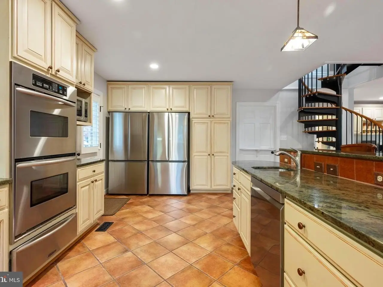 - Spiral staircase with modern iron railing