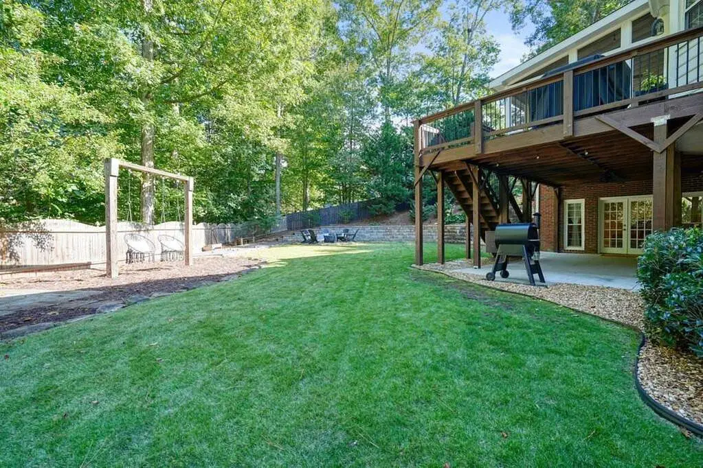 Welcome Home to 3965 Brookline Drive, situated in the prestigious enclave of Park Brooke, one of Alpharetta's most coveted communities. Ascend the elegantly curved brick stairs and be greeted by a soaring two-story foyer, where sunlight cascades through oversized, energy-efficient windows. Gleaming hardwood floors stretch seamlessly throughout the main level, guiding you past a home office, formal living and dining suite perfect for intimate soir es or lavish gatherings. The heart of the home unfolds in the chef-inspired gourmet kitchen, blending elegance and practicality - showcasing bright white cabinets, smooth granite countertops, a gas range and expansive views of the back yard. Adjoining the kitchen, a comfortable breakfast nook flows effortlessly into the vaulted family room, where a striking painted brick fireplace serves as the focal point, framed by built-in shelving and direct access to the expansive screened-in porch. Ascend either staircase to discover three generously proportioned secondary bedrooms, each with walk-in closets and two full bathrooms. The primary suite, a private aerie on the upper level, exudes serenity with its soaking tub, separate shower, dual vanities, and a cavernous walk-in closet outfitted with custom shelving organizers. Beyond the interiors, this residence harmonizes with its surroundings through thoughtful expansions, including a finished terrace level that houses a fifth bedroom, full bath, living space with additional fireplace, recreation area, workshop and ample storage, all opening to a covered patio that overlooks the lush, fenced backyard complete with a roaring fire pit & bocce court. Recent enhancements, from accent walls & fresh interior paint to state-of-the-art HVAC upstairs ensure effortless comfort year-round. Park Brooke's resort-inspired lifestyle enhance everyday moments: lounge poolside at the community oasis, hone your skills on the lighted tennis, pickleball and basketball courts, or stroll the private gree