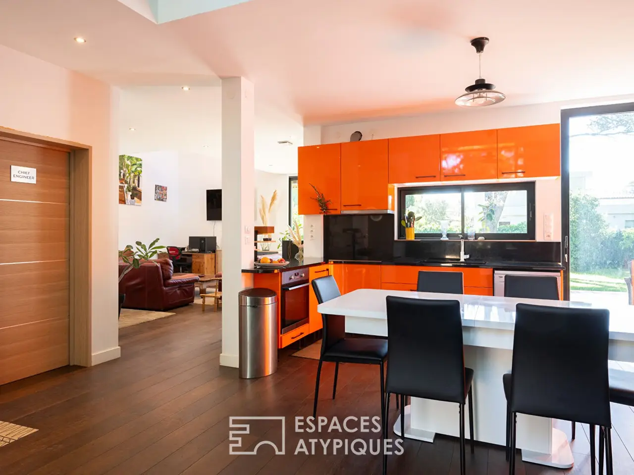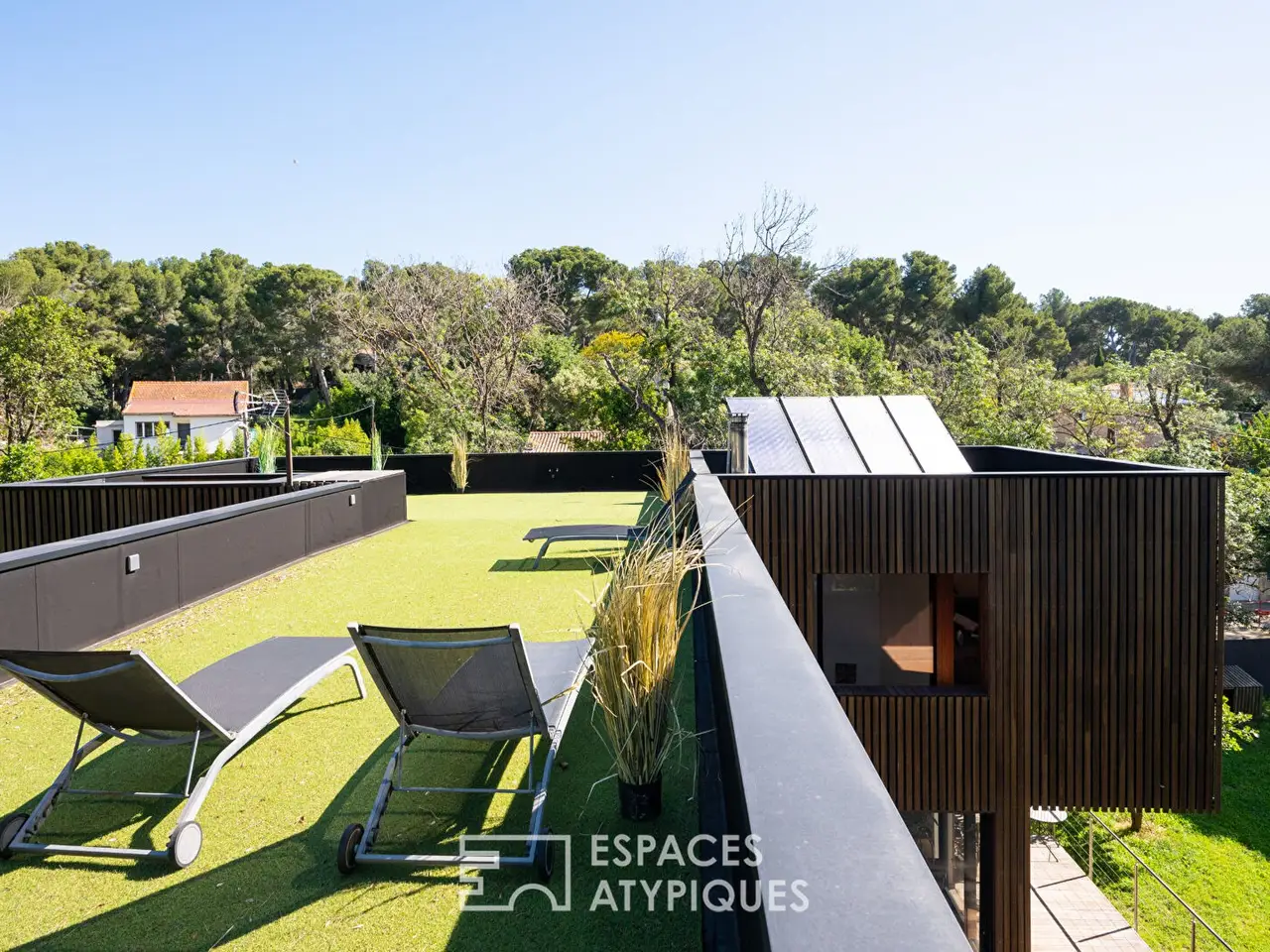 Maison d'architecte proche merThis beautiful contemporary with a flat roof and clean lines is located in the immediate vicinity of the Verne beach in La Seyne sur mer.Located on a plot of 1,500 square meters with trees, it offers a living environment conducive to vacationing. Its high-quality wooden frame construction gives it optimum living comfort while considerably limiting the costs linked to energy expenditure.The large bay windows invite you to discover a large living room with an impressive ceiling height of 6 meters creating a spacious and bright atmosphere.The kitchen open to the living room benefits from this brightness.On this level, two bedrooms, a bathroom and a workshop.From the living space, a wooden staircase leads upstairs where there are 3 bedrooms each with a private terrace, a bathroom, storage space and a staircase allowing access to the roof terrace which offers a beautiful space relaxation as well as a lovely view of the Mediterranean.Outside, a large flat garden, perfectly enclosed and planted with trees, offers a perfect setting for this responsible construction in this natural setting. A wood stove heats the entire house, several solar panels provide hot water with a 400 liter tank and a well for the garden.'ENERGY CLASS: B 72 CLIMATE CLASS: A 2 Estimated average amount of annual energy expenditure for standard use, established based on energy prices for the year 2024: between EUR 600 and EUR 850Information on risks to which this property is exposed are available on the Georisks website: www.georisks.gouv.frREF. 6240-2Additional information* 6 rooms* 5 bedrooms* 2 bathrooms* 1 floor in the building* Outdoor space : 1500 SQM* Parking : 5 parking spaces* Property tax : 3 682 €Energy Performance CertificatePrimary energy consumptionb : 72 kWh/m2.yearHigh performance housing*A*72kWh/m2.year2*kg CO2/m2.yearB*C*D*E*F*GExtremely poor housing performance* Of which greenhouse gas emissionsa : 2 kg CO2/m2.yearLow CO2 emissions*2kg CO2/m2.yearA*B*C*D*E*F*GVery high CO2 emissionsEstimated average annual energy costs for standard use, indexed to specific years 2021, 2022, 2023 : between 600 € and 800 € Subscription IncludedAgency feesThe fees include VAT and are payable by the vendorMediatorMediation Franchise-Consommateurswww.mediation-franchise.com29 Boulevard de Courcelles 75008 ParisInformation on the risks to which this property is exposed is available on the Geohazards website : www.georisques.gouv.fr