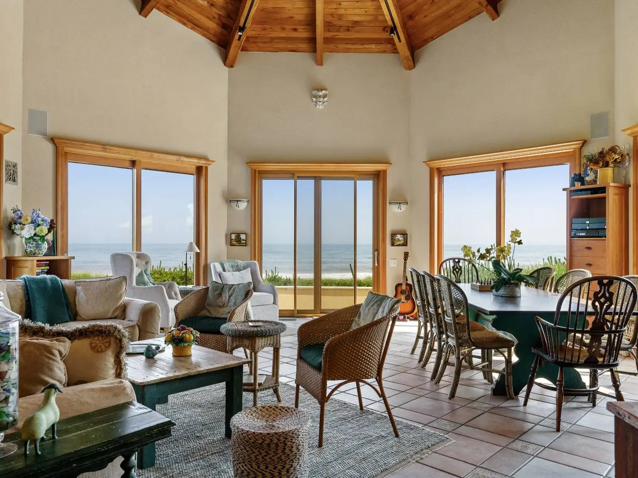 Rental Registration #24-873. Available two weeks in June 2026. A rare oceanfront home, with large heated pool and Jacuzzi, sits just steps to a beautiful Amagansett beach. With 5 bedrooms (all with TV's) and 5 1/2 baths, this Mediterranean style palacio is ideally suited for indoor/outdoor summertime living at its best. The oceanfront terrace provides endless clear views stretching up and down the coast and over the ocean beyond. The gorgeous pool area with built in spa offers an expansive entertaining space with a Pool House w/ TV, Kitchenette, Powder Room and outdoor shower. Two additional dens offer TV rooms. Sonos sound inside and out. The generous one acre +/- property with 220 feet of oceanfront is beautifully landscaped and also offers a private community tennis court. Ideally located approximately 1 mile from the Village of Amagansett and its shops and restaurants. Bask in summer's glory. Listing ID: 735911