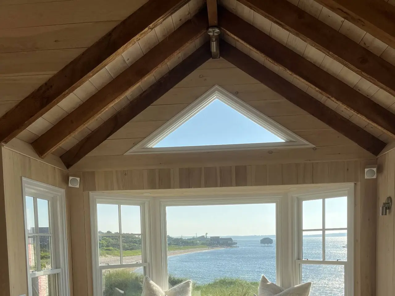 Perched on the water's edge, this recently transformed waterfront house features a timeless design and the luxury of a private beach overlooking the tranquil Gardiners Bay. Imagine leisurely lunches with your feet in the sand, swimming just steps away and watching wide open sunsets day after day. This unique offering includes the .22 acre adjacent lot providing space for a pool and guest house. The main level blends antique wooden beams with sleek Venetian plaster complemented by an abundance of natural light. Every detail, inside and out, is state of the art and has been incorporated to contribute to a feeling of quiet luxury and complete comfort. Natural landscaping from the dunes to the entrance ensures your privacy. A comprehensive list of systems and fittings, as well as a recent survey and certificate of occupancy are available. The home has deservedly garnered attention in multiple design publications. Private showing by appointment.
