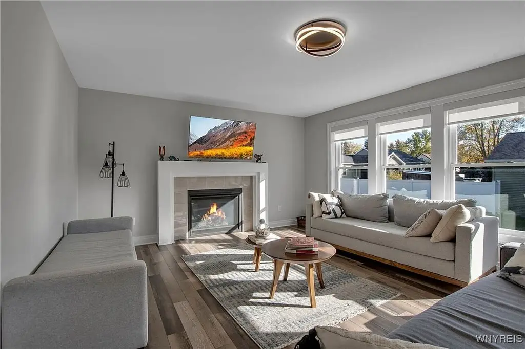 Built in 2022 by Forbes Capretto Homes, this move-in ready residence blends modern design with timeless elegance. Enjoy beautiful wood flooring throughout, upgraded light fixtures, and custom blind shades that elevate every room. The inviting living room features a cozy gas fireplace - for relaxing or gathering with family and friends. The gourmet kitchen offers a spacious walk-in pantry and a stylish dry bar/coffee bar area. A fully finished basement adds versatile living space, and the painted garage includes an EV charging connection. Every detail reflects quality and comfort, making this home truly exceptional. A home you'll fall in love with!