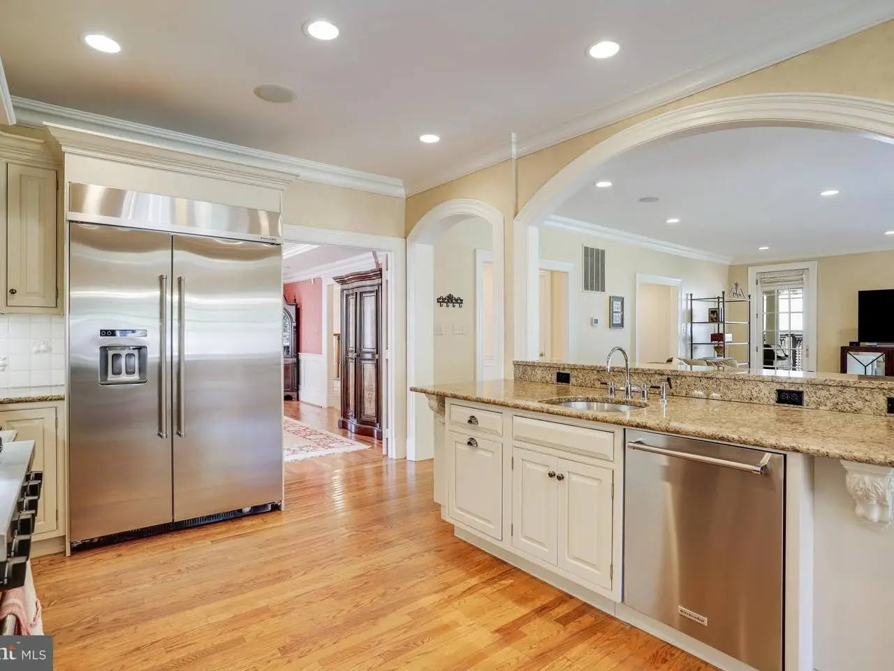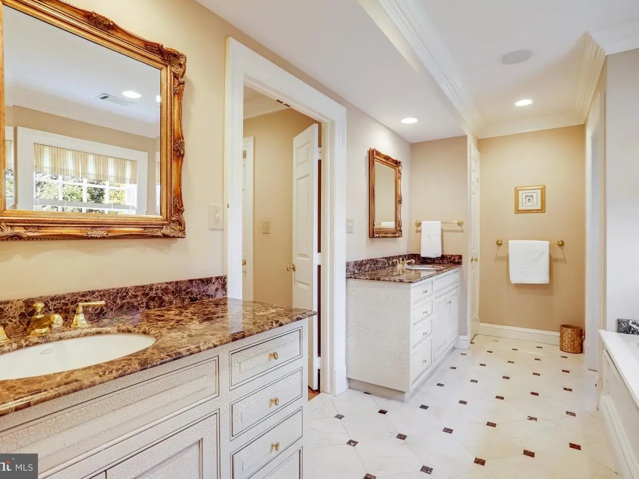 Stunning Colonial on a quiet and peaceful tree lined street in the heart of the Springfield subdivision. Springfield is a friendly neighborhood with well manicured lawns and a strong sense of community.  It sits in the sweet spot of commutes to downtown Washington DC and work points in Virginia and Maryland off nearby 495 and 270. The Ride on Bus and Metro bus are a short walk away and the metro is about 2 miles. This beautiful home was built by Meade Bell and reimagined and expanded by his son, the renowned Frank Bell. With it's classically executed exterior and charm infused interior, it offers nearly 6000 square feet of space. Upon entering the large foyer, you will notice beautiful millwork throughout. The main level features a sprawling open kitchen/family room/breakfast room with nine foot ceilings and a fireplace. French doors take you from this space to a large flat fully fenced grassy yard with flagstone patio and a covered eating portico. Also on this level is a grand entertaining sized dining room and an elegant living room with fireplace. On the upper level, there are 5 bedrooms, 3 full baths and a laundry room, accessed by wide and gracious halls. In the Primary bedroom there is a third fireplace and a spa like bath with a soaking tub, separate shower and double vanity. The lower level has three very large rooms - a home office, a game room and a recreation or media room, as well as ample storage in a separate storage room and utility room. Other amenities include a garage, a new roof, a multi zoned HVAC, and built-in speakers in the ceilings of the kitchen/family room, dining room, and primary bedroom. This property is served by the highly rated school district of Woodacres/Pyle/Whitman. Both the Woodacres Elementary school and playground, and the Little Flower School are a very short walk away. You can also walk to Whole Foods, Kenwood CC and the new Westbard square with its restaurants and shops. This is a rare find in an amazing location!