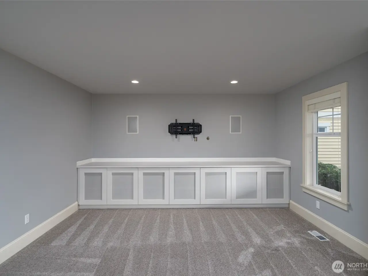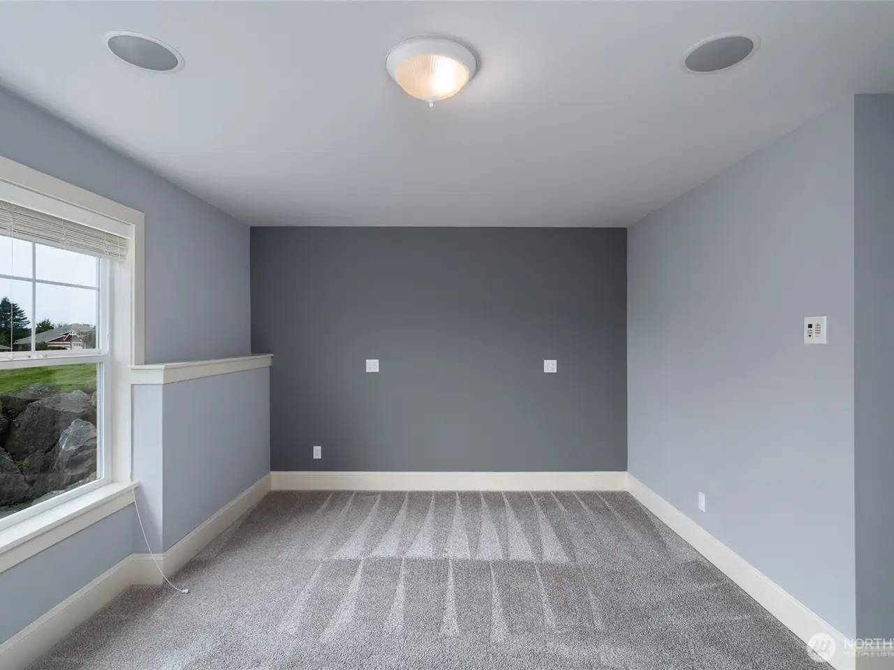 Quality Ron Paulk built Home, a beautifully home w/ solid wood doors, detailed ceiling and baseboard trim. Main level living offers Primary & second bed rm and bonus office/flex rm with French doors, all main level. The kitchen with long quartz bar, living rm stone fireplace, and seamless flow to French doors view deck ideal for entertaining. Primary suite showcases sweeping channel views of San Juan Islands, plus spa like bath and lg walk-in closet. Lower level/ w guest suite, and potential cool/wine room, and patio with hot tub wiring. Whole-home with built-in speaker in every room including sound system completes this retreat. Enjoy care free maintenance with landscaping, exterior painting and roof replacement included in HOA fee.