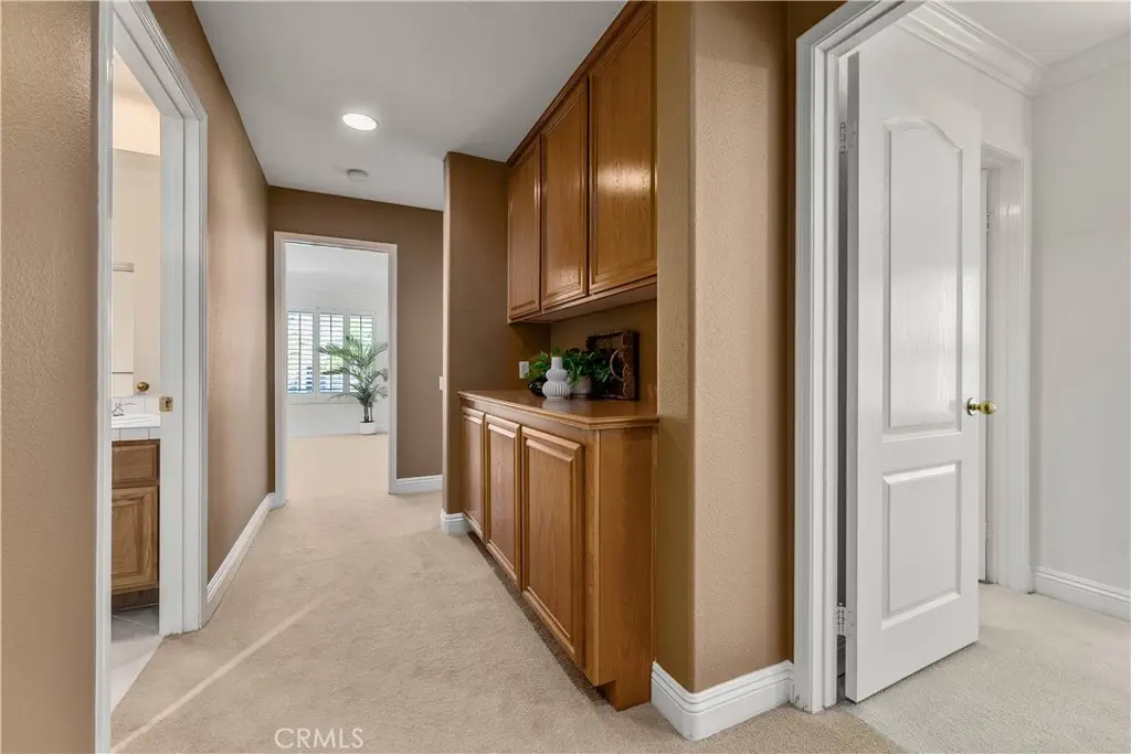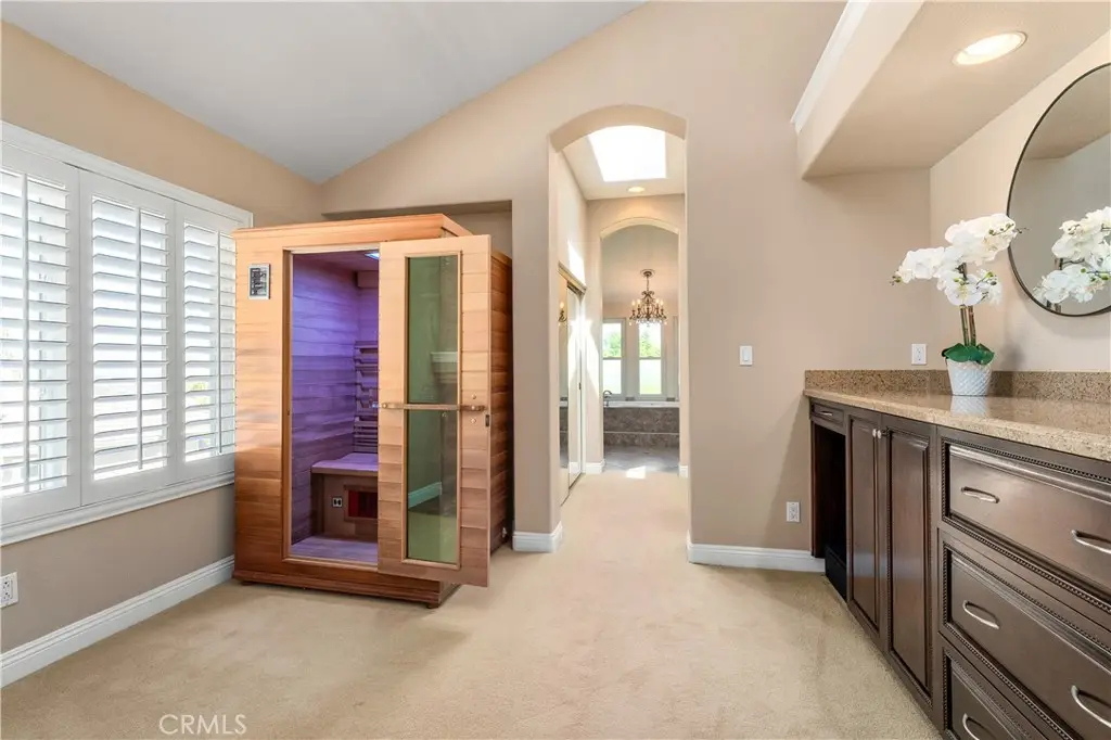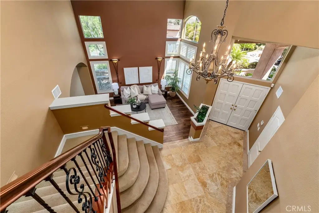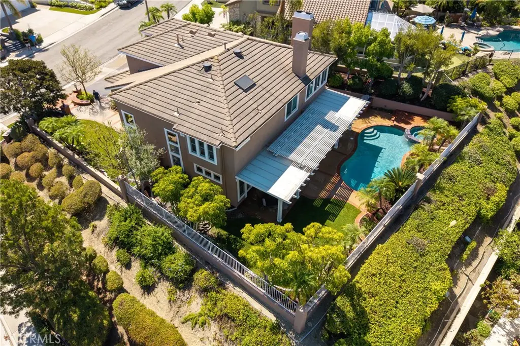 Step into a world of elegance and comfort at this stunning 5-bedroom, 4.5-bathroom pool home with partial views, perfectly located in the heart of Anaheim Hills. From the moment you enter through the double doors into the grand foyer beneath a sparkling chandelier, this home makes a lasting impression. To your right, the formal living room sets the tone with rich wood floors that flow seamlessly into the dining room, where French doors invite you to step outside and enjoy the beauty of the backyard. Wood shutters, crown moldings, and timeless design details add warmth and sophistication throughout. At the heart of the home, the expansive kitchen is designed for both daily living and entertaining. Granite countertops, stainless steel appliances, built-in refrigerator, 5-burner cooktop, and walk-in pantry provide everything a chef could want. The oversized bay window floods the space with natural light while overlooking the sparkling pool. Just beyond, the inviting family room with fireplace offers the perfect place to gather, with sliding glass doors leading to the backyard oasis. A main floor bedroom with en-suite bath offers flexibility for guests or a home office, while a separate powder room adds convenience. Upstairs, the primary suite is a private retreat all its own. Double doors open to a spacious sanctuary with fireplace, sitting area, infrared sauna, dual walk-in closets, and spa-inspired bath with dual sinks, walk-in shower, and jetted tub. Three additional bedrooms complete the upper level--two connected by a Jack & Jill bath, one with a balcony to enjoy evening breezes, and another with a large walk-in closet and mirrored wardrobe doors. The backyard is truly the soul of this home--a resort-style haven where every detail is designed for entertaining and relaxation. Multiple Alumawood patio covers with ceiling fans and lighting create the perfect setting for outdoor dining. A built-in BBQ makes weekend gatherings effortless, while the pebble tek and salt water pool and spa invite endless hours of fun and tranquility. Additional features include updated stair railings, plantation shutters throughout, water softener and purifier, whole-house fan, crown molding and so much more. This home is more than a place to live--it's a lifestyle. With its perfect blend of luxury and warmth, it's ready to welcome you home.