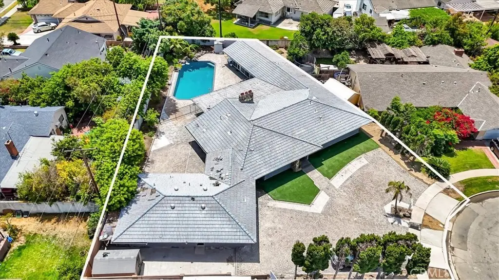 Extraordinary Property Alert! RENT ONE & Live in the other one! or great investment. This expansive single-story pool home is an entertainer's dream! With a generous 3,272 sq ft of living space and a thoughtfully designed wrap-around floor plan, this stunning ranch-style residence offers everything you could wish for. Situated on a tranquil cul-de-sac just minutes from Disneyland, this highly coveted property spans over a third of an acre (15,520 sq ft) and includes 4 bedrooms and 2.5 bathrooms. Upon arrival, you're greeted by a charming paver driveway with ample parking, perfect for hosting gatherings. Step through the elegant double doors into a formal foyer that guides you into two distinct living rooms, each featuring its own cozy fireplace. The dining room flows effortlessly into a kitchen designed for culinary excellence, boasting granite countertops, modern appliances, and a 5-burner gas cooktop ready to inspire your inner chef. The primary suite, nestled at the end of the hall for added privacy, is a true retreat with three closets, a great bathroom featuring a walk-in shower, dual sinks, and a spacious vanity. This suite also connects to a versatile bonus room, ideal as a guest suite, in-law quarters, or a multi-family living space, offering endless possibilities for customization. Multiple sliding doors open up to the serene backyard, where you'll find an inviting gated pool surrounded by pavers. The extended patio cover, complete with a BBQ area, creates the perfect outdoor living space, surrounded by beautifully landscaped grounds. But that's not all! This property also includes an ADU featuring 2 bedrooms and 2 bathrooms. With a new furnace and AC system ensuring year-round comfort, this home is the perfect blend of luxury and convenience. Enjoy the extra space for extended family and guests. This property is truly a must-see, offering endless opportunities for its next lucky owner. Come see it today and make it your own!