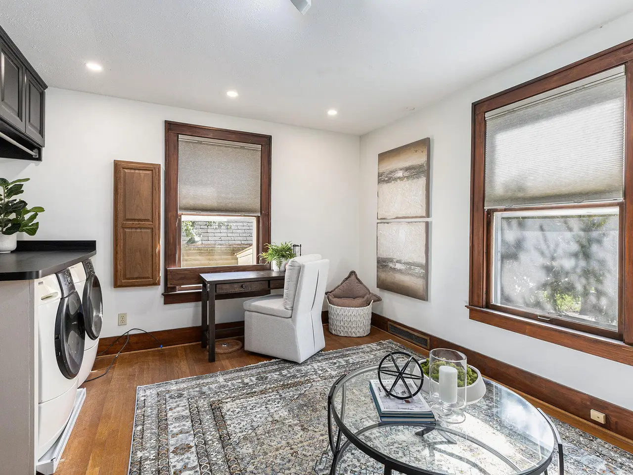 Charming 1920s home on Ann Arbor's historic Old West Side, just steps from the YMCA and downtown shops and dining (Walk Score 99). Set on a corner lot, this well-maintained property boasts a welcoming front porch with swing, an oversized 2.5-car garage with bonus room above, and a peaceful back deck with garden patio. Inside, enjoy original hardwood features, a large updated kitchen, a modern full bath on the main level, and a versatile flex space. The living room with a wood burning stove flows into a spacious dining area. Upstairs you'll find four generous bedrooms and another full bath. A lower-level studio with private entrance adds flexibility. Garage access from Mulholland St. Home Energy Score of 1. Download report at stream.a2gov.org