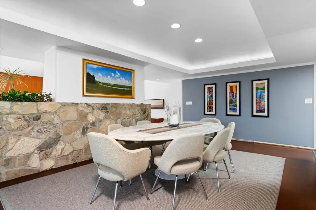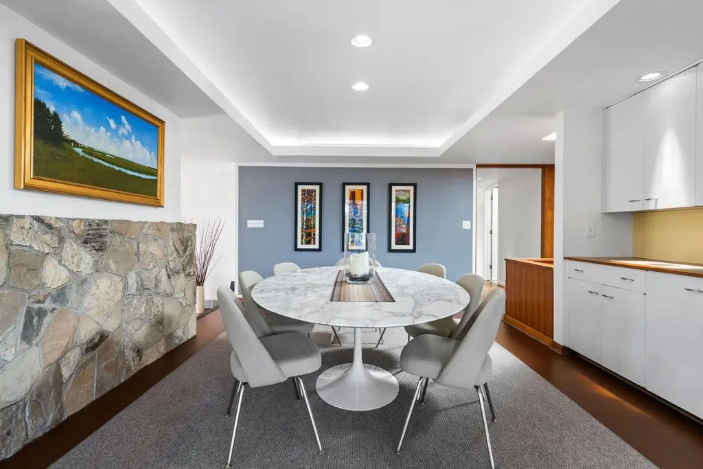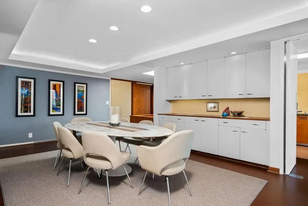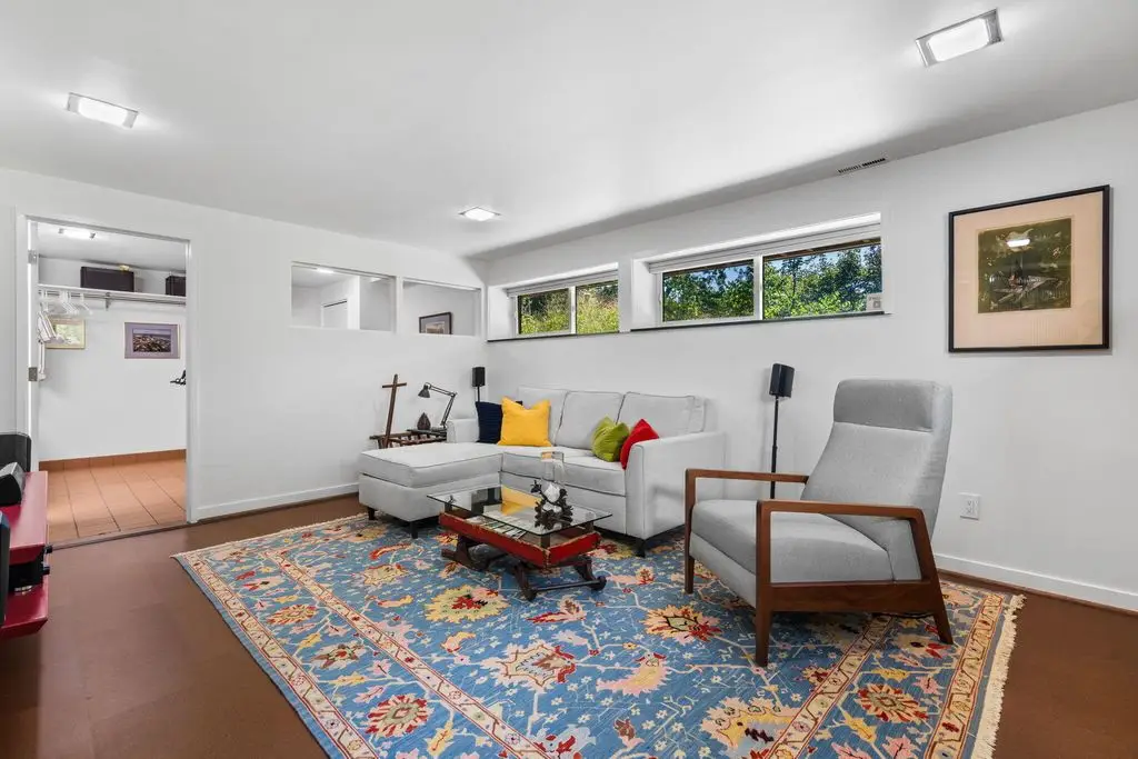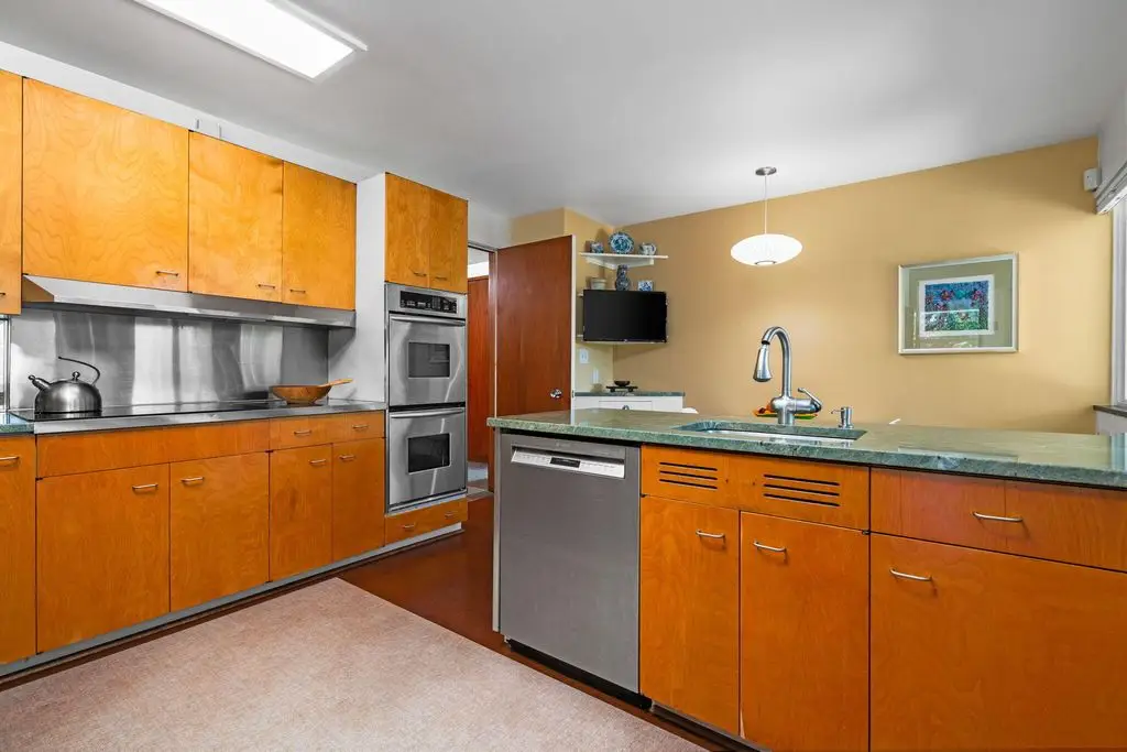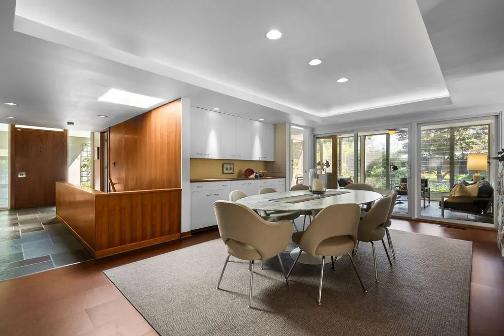 Designated by A2Modern as one of Ann Arbor's most notable Mid-Century Modern residences, this gracious home is a timeless example of the movement's enduring appeal. Its flat roof, cantilevered eaves, and private entry tucked into a breezeway embody the geometric simplicity and strong connection to nature that define the era. Expansive windows and skylights flood the interior with natural light, framing treetop and meadow views. A Florida room with jalousie windows and a full-width balcony create seamless transitions between indoors and out, while landscaped grounds enhance the home's natural hillside setting. In keeping with the owners' commitment to sustainability, the property features a small orchard of fruit trees, raised vegetable gardens and a pollinator garden. The exceptional property was featured in the Ann Arbor Garden Tour. Inside, organic materials including slate tile, cork flooring, and walnut paneling are paired with a dramatic stone wall that divides the living and dining rooms, featuring a built-in planter and cantilevered hearth. Cove lighting accents the tall ceilings, while horizontal flow brings warmth and intimacy to the open floor plan. The eat-in kitchen blends stainless steel finishes and high-end appliances with carefully preserved original cabinetry. On the main level, three bedrooms and two baths include a primary suite with treetop views and a renovated bath featuring a level-entry shower, while the third bedroom has been converted into a paneled study. The lower level offers a cozy sitting area, laundry and exercise space, and well-organized storage. One-level living is easily possible by relocating the laundry to the spacious primary closet.Thoughtful renovations have elevated this residence into a net-zero, all-electric retreat powered by a 15kW solar arraya rare union of architectural heritage and sustainable living. At once a faithful restoration and a forward-looking sanctuary, 505 Burson Place offers the elegance of mid-century design harmoniously reimagined for today's eco-conscious lifestyle.Tucked away on a private cul-de-sac in Ann Arbor Hills, this home provides unparalleled access to the best of Ann Arbor: stroll through Nichols Arboretum, picnic at Gallup Park, bike or jog to the U-M main campus, medical center, or new U-M fitness center. Designed by James Livingston in 1956, it remains one of the city's most admired Mid-Century Modern retreats.