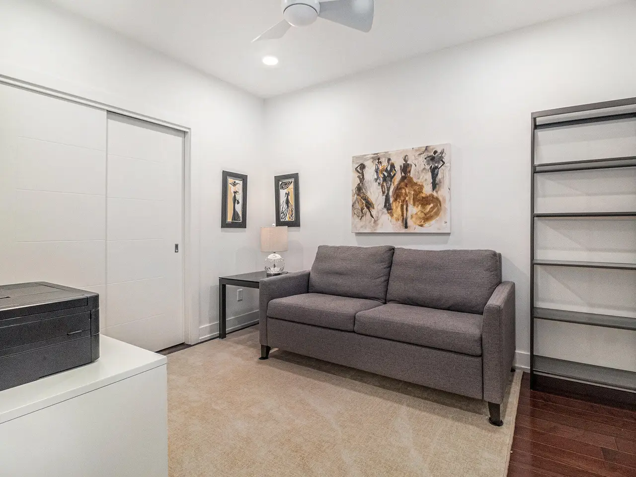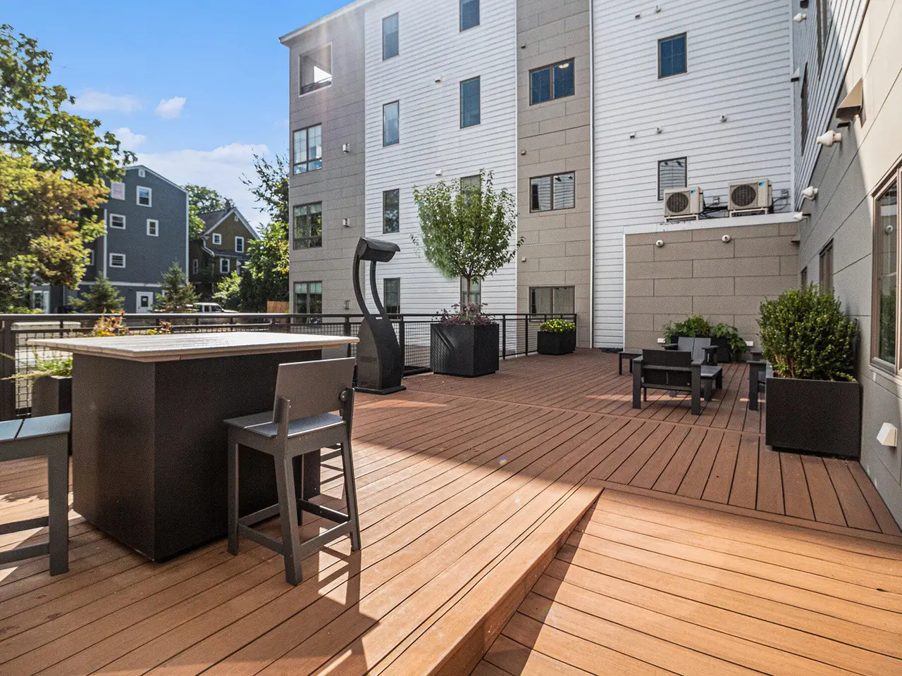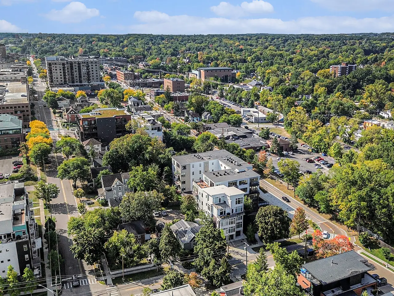 Experience the best of downtown Ann Arbor living in this nearly 2,000 SF ranch-style corner unit condo at 410 N. First. Just steps from Kerrytown's vibrant shops, award-winning dining, the Ann Arbor Farmers Market, and the University of Michigan Central and Medical Campuses, this upscale residence puts you in the heart of it all - yet offers peaceful, unobstructed views of Fish Park right next door. With a Walk Score of 95, this is truly a walker's paradise and a dream for city lovers. Inside, the sun-filled open floor plan is perfect for both everyday living and entertaining. The sleek kitchen features clean white cabinetry, quartz countertops, and premium Wolf and KitchenAid stainless appliances. A central breakfast bar connects seamlessly to the dining and living areas, making it easy to host friends or enjoy a quiet evening at home. The dining room opens to its own balcony, while a spacious deck near the entrance to the unit is ideal for grilling and dining al fresco and provides