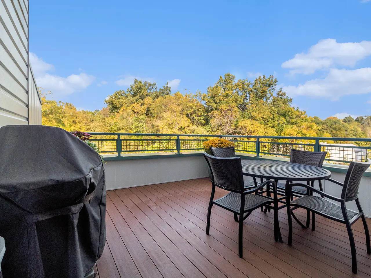 Experience the best of downtown Ann Arbor living in this nearly 2,000 SF ranch-style corner unit condo at 410 N. First. Just steps from Kerrytown's vibrant shops, award-winning dining, the Ann Arbor Farmers Market, and the University of Michigan Central and Medical Campuses, this upscale residence puts you in the heart of it all - yet offers peaceful, unobstructed views of Fish Park right next door. With a Walk Score of 95, this is truly a walker's paradise and a dream for city lovers. Inside, the sun-filled open floor plan is perfect for both everyday living and entertaining. The sleek kitchen features clean white cabinetry, quartz countertops, and premium Wolf and KitchenAid stainless appliances. A central breakfast bar connects seamlessly to the dining and living areas, making it easy to host friends or enjoy a quiet evening at home. The dining room opens to its own balcony, while a spacious deck near the entrance to the unit is ideal for grilling and dining al fresco and provides