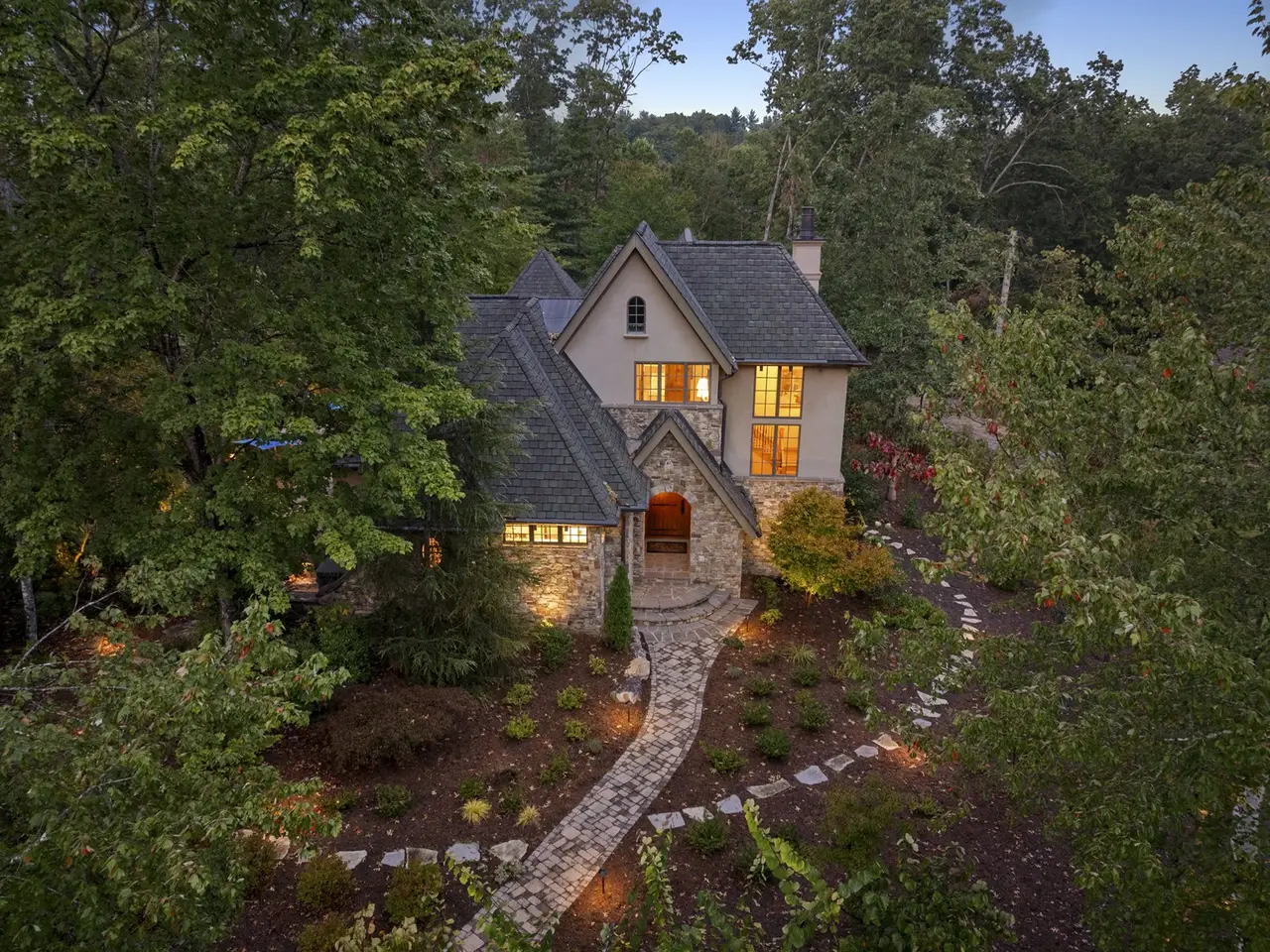 Discover exquisite mountain living in this exceptional home, a superb-quality residence by renowned builder Butch Heatherly. As the original model home for Cove Park, this residence was designed to impress, seamlessly blending sophistication with the tranquility of its natural surroundings. Step inside and be greeted by an open floor plan, where exquisite hardwood floors guide you from a spacious living room with a cozy fireplace to a high-end kitchen. Perfect for entertaining, the gourmet kitchen features a huge island, top-of-the-line appliances (including a 48" Wolf range), and a walk-in pantry. The dining area is bathed in natural light from large Pella windows, providing a lovely space for meals and gatherings. Throughout the home, designer lighting fixtures add a touch of elegance. The residence offers three bedrooms with en-suite bathrooms, including an immense master suite with large walk-in closets, and a powder room on the main level, providing a private and luxurious retreat. Venture outside to a covered porch with a roll-down screen, extending your living space and allowing for comfortable enjoyment of the outdoors. The property's beautifully landscaped courtyard is a true oasis, featuring a stunning multi-tiered water feature with a stone waterfall and a separate, inviting patio area with a stone fireplace and hot tub - perfect for al fresco dining or relaxing on cool evenings. A new landscape lighting system illuminates the grounds, creating a magical ambiance. This home is as functional as it is beautiful, featuring a whole-house water filtration system and an encapsulated crawl space for optimal maintenance. Situated about 500 feet from the community's Wellness Center, residents can take advantage of the indoor and outdoor pools, Har-Tru tennis courts, state-of-the-art workout equipment, and various fitness classes. This home provides the ideal blend of a private sanctuary and access to a vibrant, active community. Club membership is available.