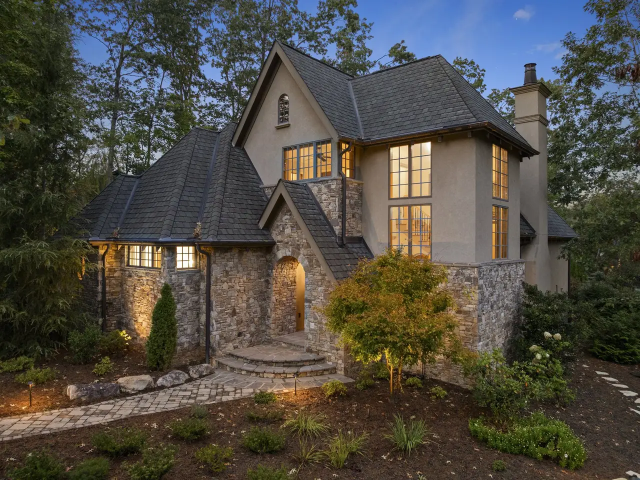 Discover exquisite mountain living in this exceptional home and adjacent vacant lot, a superb-quality residence by renowned builder Butch Heatherly. This offering provides a total of .55 acres for added privacy and the option to expand the current home or build a separate guest cottage. As the original model home for Cove Park, this residence was designed to impress, seamlessly blending sophistication with the tranquility of its natural surroundings. Step inside and be greeted by an open floor plan, where exquisite hardwood floors guide you from a spacious living room with a cozy fireplace to a high-end kitchen. Perfect for entertaining, the gourmet kitchen features a huge island, top-of-the-line appliances (including a 48" Wolf range), and a walk-in pantry. The dining area is bathed in natural light from large Pella windows, providing a lovely space for meals and gatherings. Throughout the home, designer lighting fixtures add a touch of elegance. The residence offers three bedrooms with en-suite bathrooms, including an immense master suite with large walk-in closets, and a powder room on the main level, providing a private and luxurious retreat. Venture outside to a covered porch with a roll-down screen, extending your living space and allowing for comfortable enjoyment of the outdoors. The property's beautifully landscaped courtyard is a true oasis, featuring a stunning multi-tiered water feature with a stone waterfall and a separate, inviting patio area with a stone fireplace and hot tub - perfect for al fresco dining or relaxing on cool evenings. A new landscape lighting system illuminates the grounds, creating a magical ambiance. This home is as functional as it is beautiful, featuring a whole-house water filtration system and an encapsulated crawl space for optimal maintenance. Situated about 500 feet from the community's Wellness Center, residents can take advantage of the indoor and outdoor pools, Har-Tru tennis courts, state-of-the-art workout equipment, and various fitness classes. This home provides the ideal blend of a private sanctuary and access to a vibrant, active community. Club membership is available.