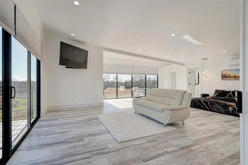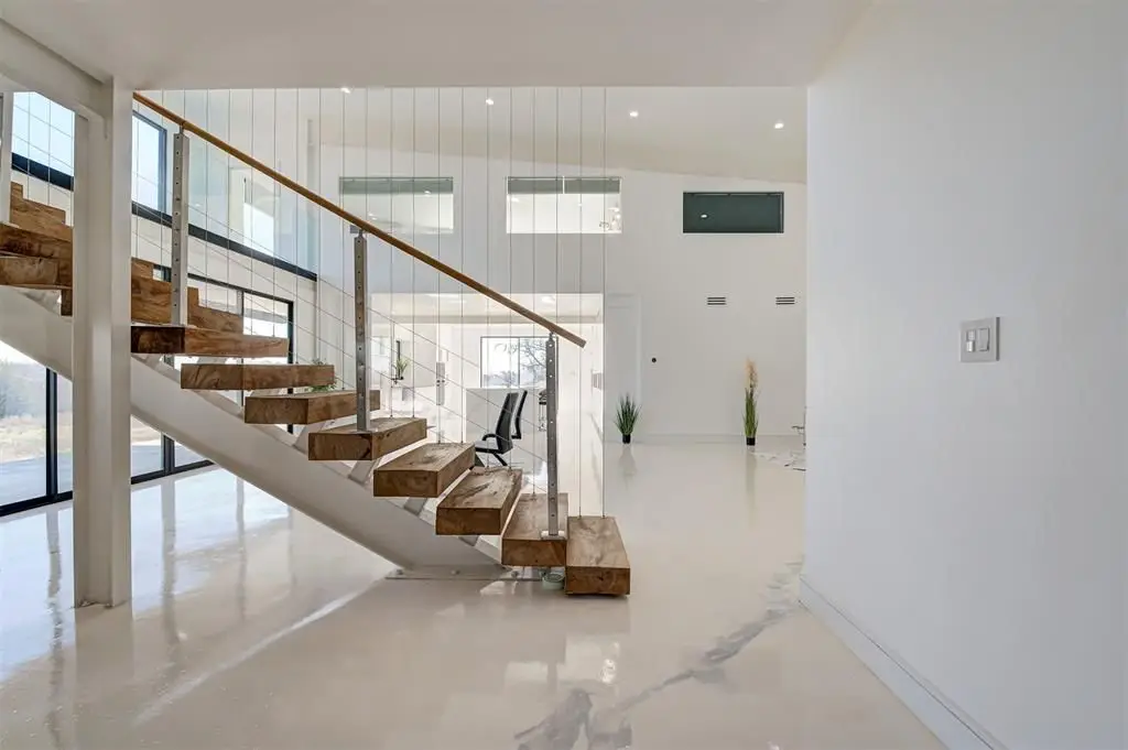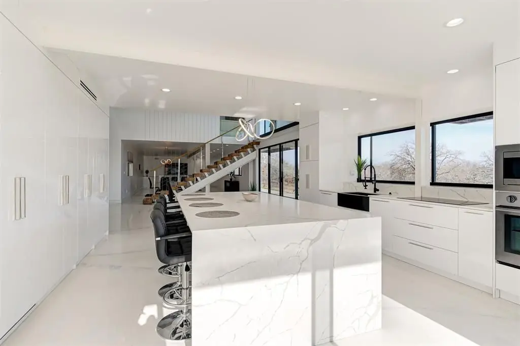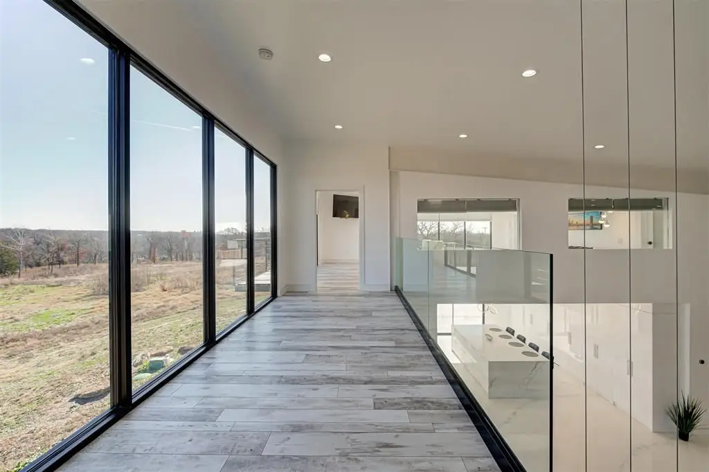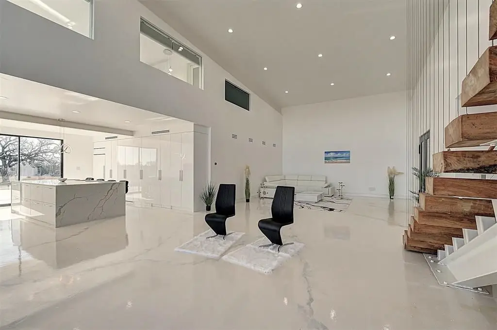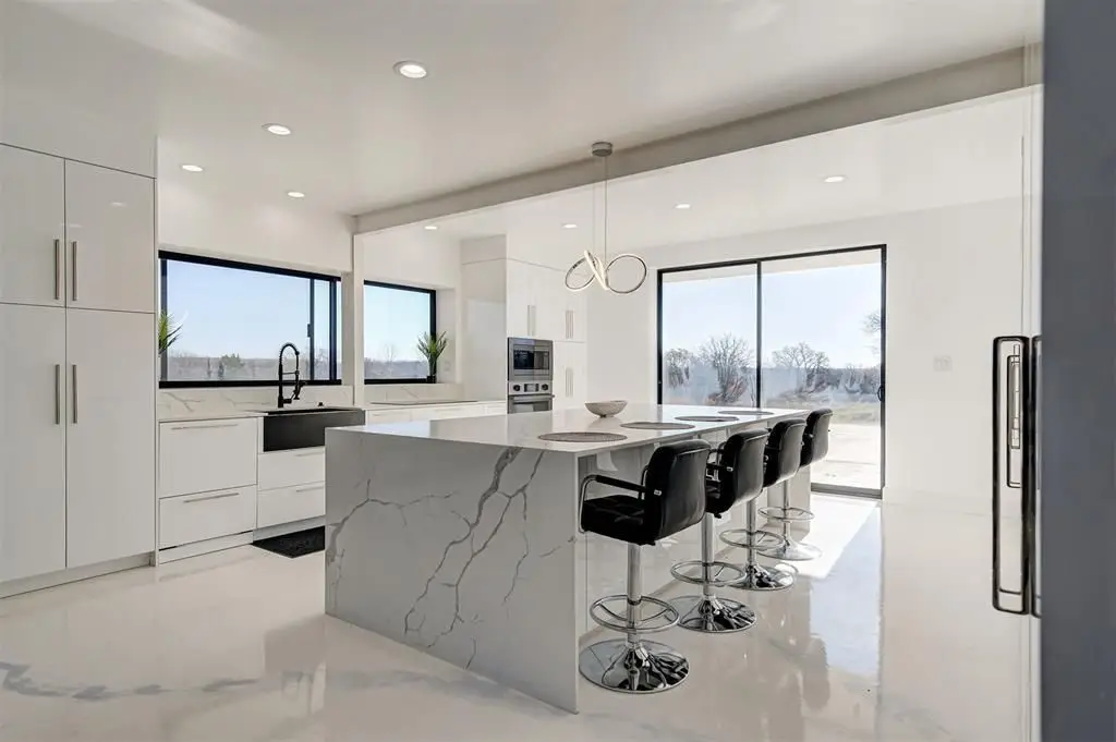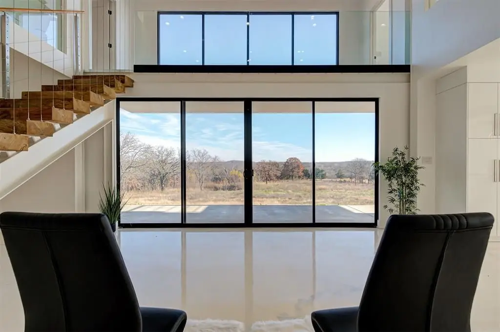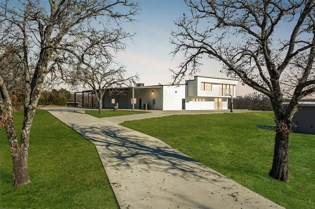 Immerse yourself in this extraordinary contemporary estate, gracefully set on 5 acres. The open-concept design features a grand living area, highlighted by soaring 20-foot windows that flood the space with natural light, creating a sense of airy expansiveness. The dining area seamlessly transitions into an elegant bar, equipped with a jumbo screen and abundant storage beneath sleek quartz countertops. The chef's kitchen is nothing short of spectacular, boasting top-tier appliances, including dualSub-Zero refrigerators, a vast quartz-topped island, and a generous walk-in pantry for ultimate convenience. A striking floating maple staircase leads to two palatial master suites, each an oasis of luxury, featuring indulgent master baths & enormous walk-in closets with custom islands and in-suite laundry. A secondary staircase directs you to a private guest suite, complete with its own luxurious bath, a state-of-the-art movie theater, and additional sleeping accommodations for ultimate comfort & privacy. Every suite is appointed with large-screen televisions & high-speed internet, ensuring both relaxation and connectivity. Expansive balconies off each suite offer breathtaking views of the serene countryside, bringing the beauty of the outdoors in. The home is outfitted with luxurious finishes, including full bidet toilets throughout, & all furnishings are included. Outside, enjoy the convenience of open and covered parking, complemented by a basketball court forrecreational pursuits. Minutes away, Lake Murray invites you to explore its serene waters, offering a water park, swimming and kayaking beaches. Exceptional dining & entertainment await at the nearby Bovada Casino, while the world-renowned Winstar World Casino & Resort is a mere 35 minutes away, adding an extra layer of excitement to this remarkable home. Seller Offering to add large beach pond on the property while under contract with a qualified buyer. Welcome Home to 546 Mockingbird Lane in Ardmore, Oklahoma.