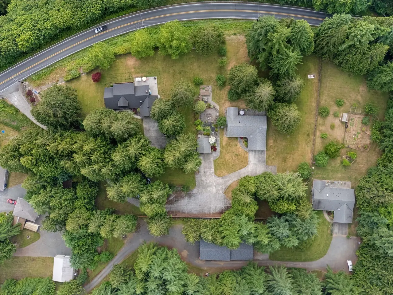Perfect Multi-Generational living with 2 homes on nearly 3 acres of meticulously landscaped grounds, remarkable old growth cedars, & lush green lawns. Main Home: 3,445sqft, 4+ bedrooms, 3 bathrooms, 2 living rooms, formal dining, huge bonus room, 2 car garage. Primary Bedroom has an incredible walk-in closet and sliding doors to the balcony. Storage shed and playhouse stay. The ADU Home: 1,504sqft, 3 bedrooms, 1.5 bathrooms, 2 car garage, open concept living/dining/kitchen. Slider off Primary bedroom to patio. French doors to covered patio for year-round enjoyment. Greenhouse, raised garden beds, koi pond with beautiful ornamental trees and flowers. Detached Shop! Each home w/separate well, septic, internet, & power.