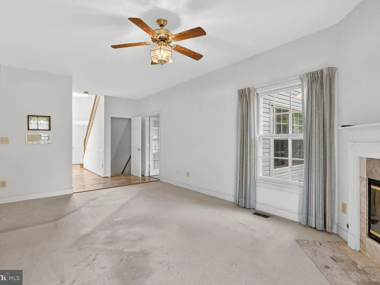 Marble fireplace with wood mantel