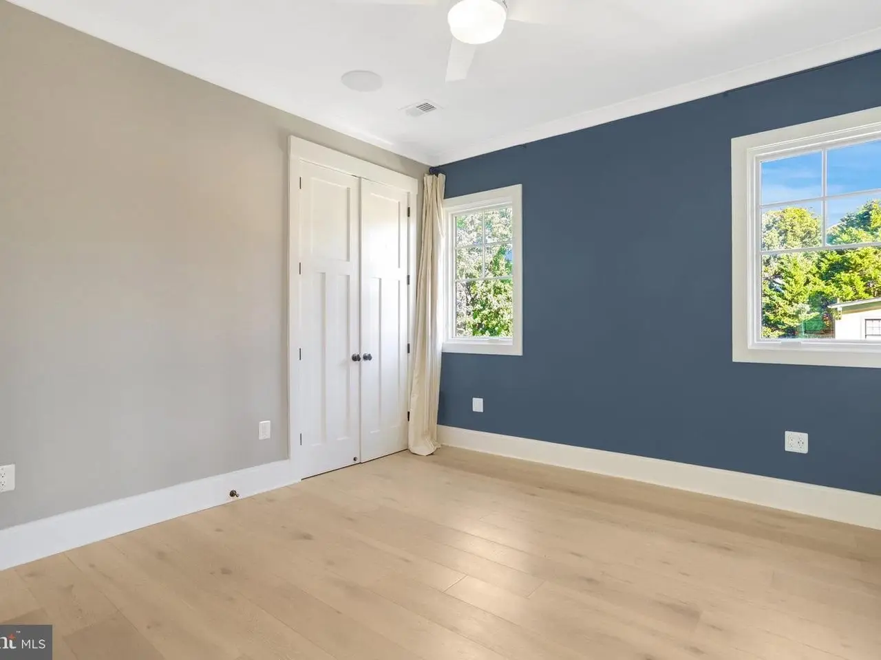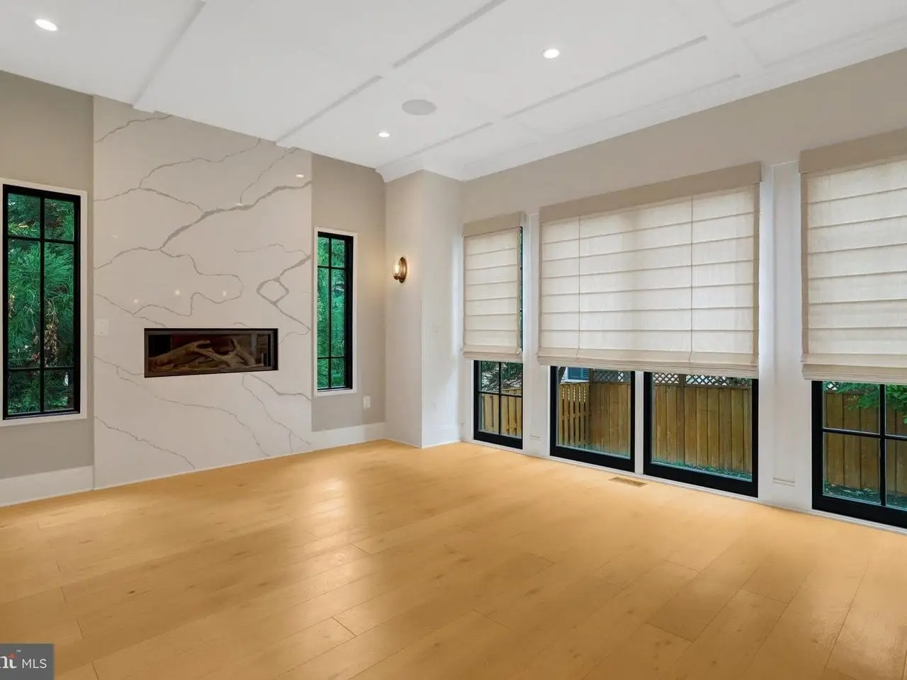Located just 3 blocks from the Metro and across from Zitkala-Sa Park, this custom-built home offers over 5,000 square feet of beautifully designed living space. The open, contemporary floor plan feels inviting and bright, featuring 10-foot ceilings and wide-plank, hand-scraped light hardwood floors throughout the main and upper levels. The gourmet kitchen, finished in timeless white tones, enhances the home's airy feel and flows seamlessly into the eat-in area with a built-in window seat and custom dining table that seats twelve. The family room centers around a striking custom marble fireplace, providing a comfortable space for relaxation and entertaining. A dining alcove, private study, mudroom with custom built-ins, and powder room complete the main level. Upstairs, the luxurious primary suite impresses with a cathedral ceiling, custom walk-in closet, and a stunning ensuite bath featuring a soaking tub, glass-enclosed shower, dual vanity, dedicated makeup counter, and private water closet. The upper level also includes two spacious bedrooms with a shared bath, a fourth bedroom with ensuite, and a conveniently located laundry room. The lower level offers a fifth bedroom, full bath, fully outfitted gym with mirrored wall and glass door, and a large recreation room featuring a built-in wine wall and wet bar with microwave and storage. Double doors lead to a walk-up exit and the fenced rear yard. Set on a .15-acre lot, the outdoor space includes a raised composite deck and a step-down to a flat, usable yard-perfect for entertaining or play.