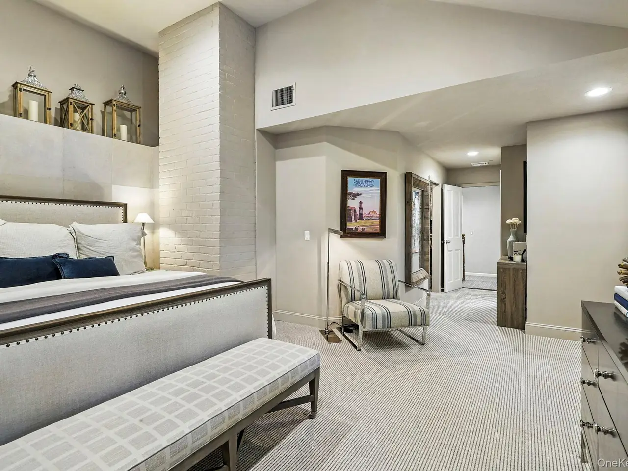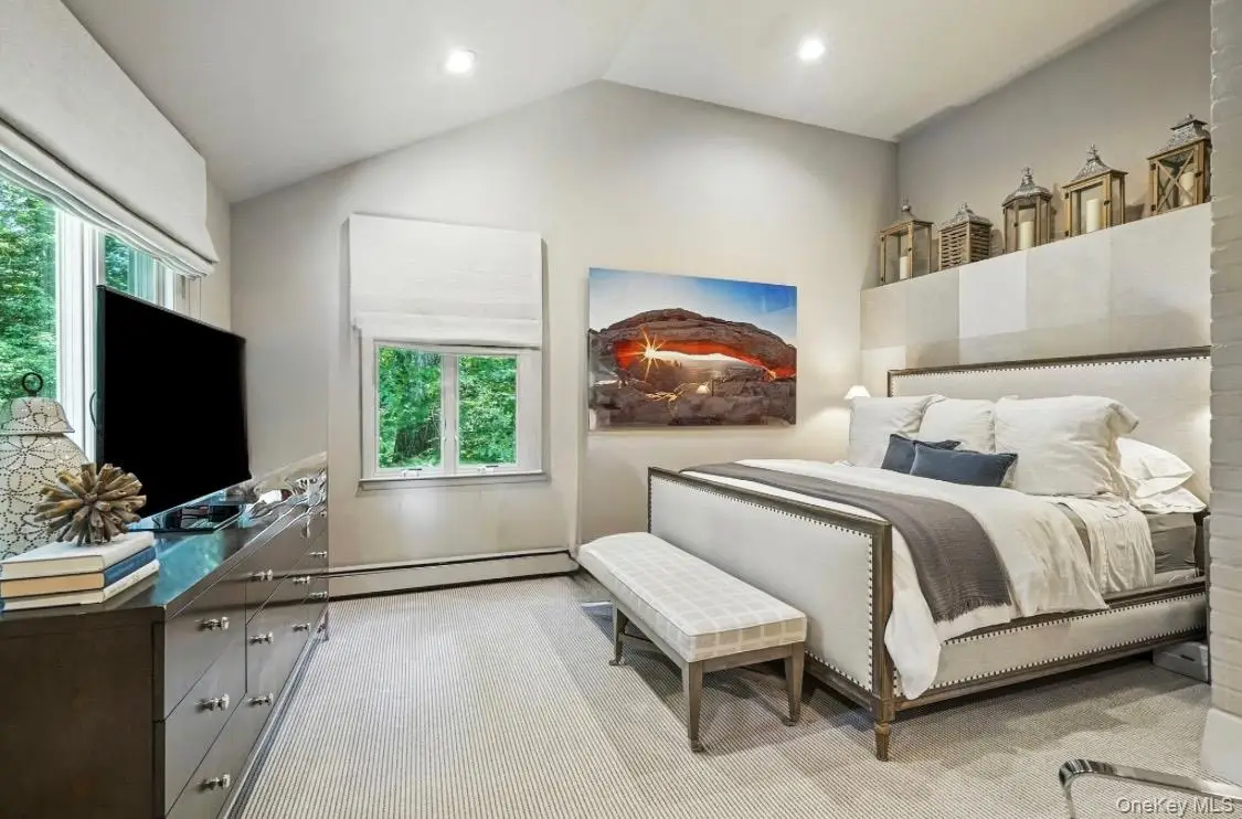 Primary suite with vaulted ceilings and updated bathrooms